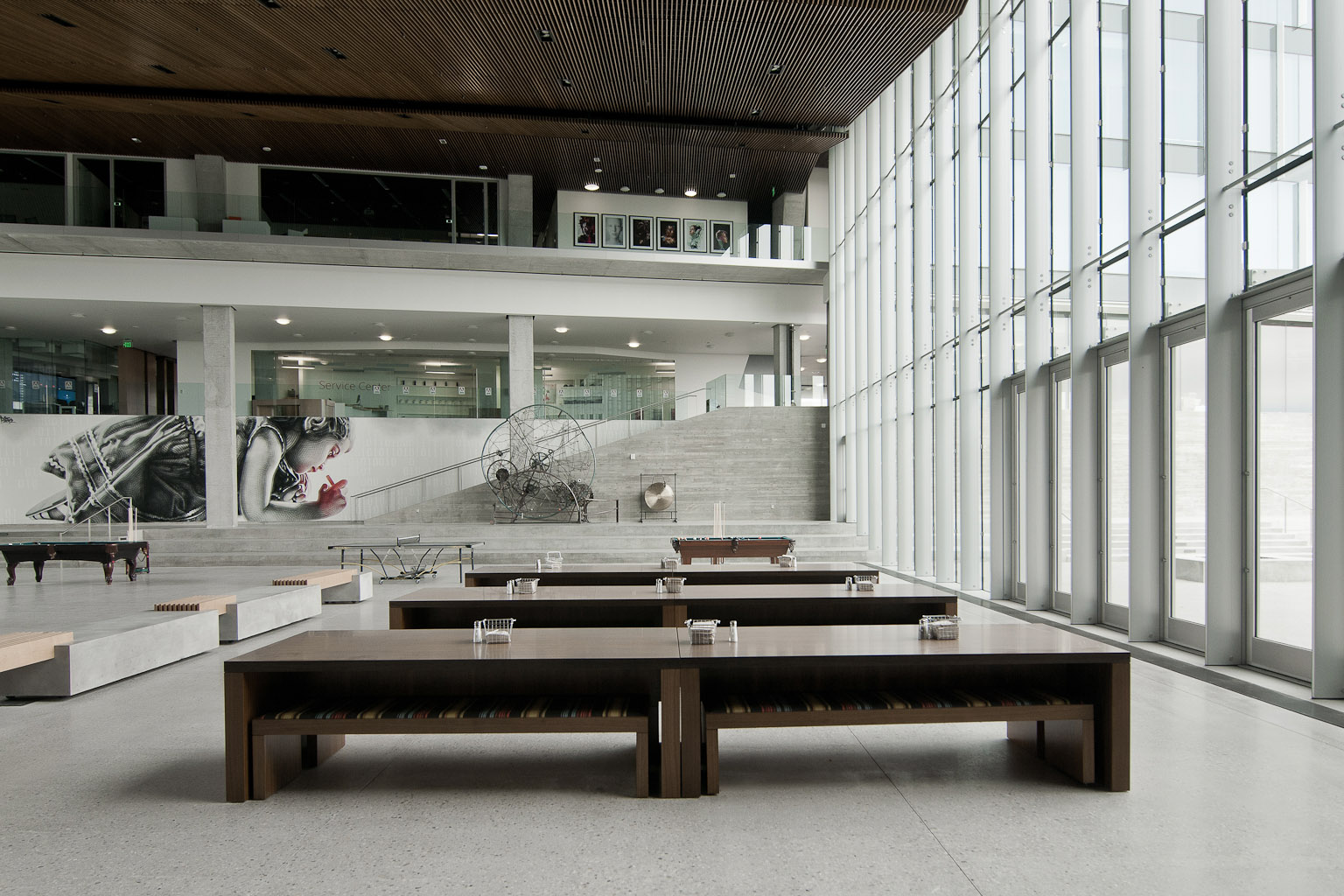 We could go off about a thousand other details, like the computer-laden “Dungeon” downstairs devoted strictly to gamers, or the kinetic art of Andrew Smith, or the room full of bike racks for pedaling employees, but we’ll save it and let the photos do the chatting. There’s clearly too much to cover, anyway. Someone should get us a job in this joint.