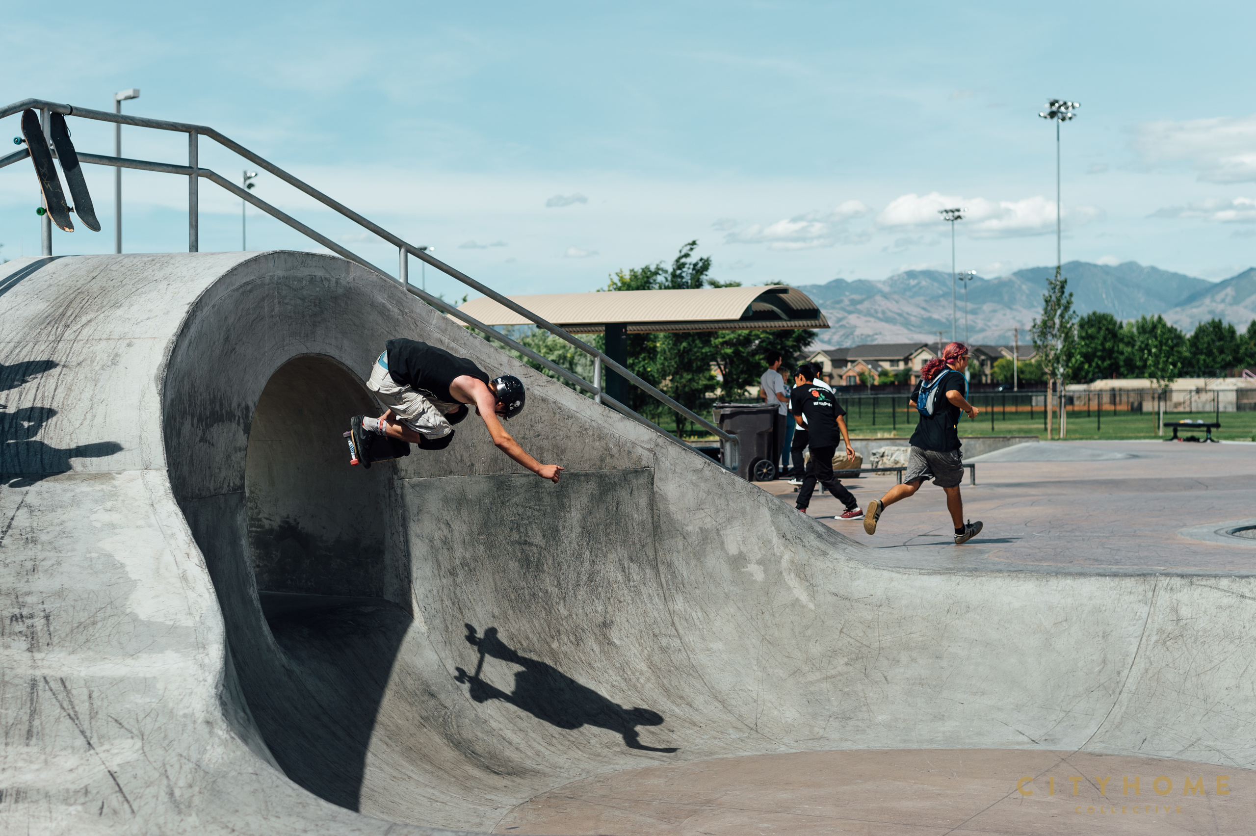 The West Valley Skate Park opened officially in October of 2016. What you may not know, however, is that the park is the fruit of more than 15 years of Josh's persistent efforts (among others). "I started skating in the early 90s, and there was a distinct lack of skate-able spots in West Valley. We were kicked out of parking lots or asked to leave the mall just for having skateboards." Roughly 10 years later--post-college and having worked for SLUG Magazine for a spell--Josh realized that implementing a spot for kids to skate might not be all that far-fetched. A group of local skaters had petitioned to build a park in Taylorsville around the same time, but their efforts fell flat. The Taylorsville park was built, albeit poorly, to the point where it went all but unused by skaters. The park then became a spot for less-savory activity, giving skateparks a bad rap in the eyes of both community members and local elected officials (and consequently decreasing the desire to fund them). While the story of the Taylorsville park is an unfortunate one, it sparked Josh's 15-year crusade to ensure that a younger generation of skaters would have the park he never did. Clean, well built, and complete with all the trappings necessary to throw down.