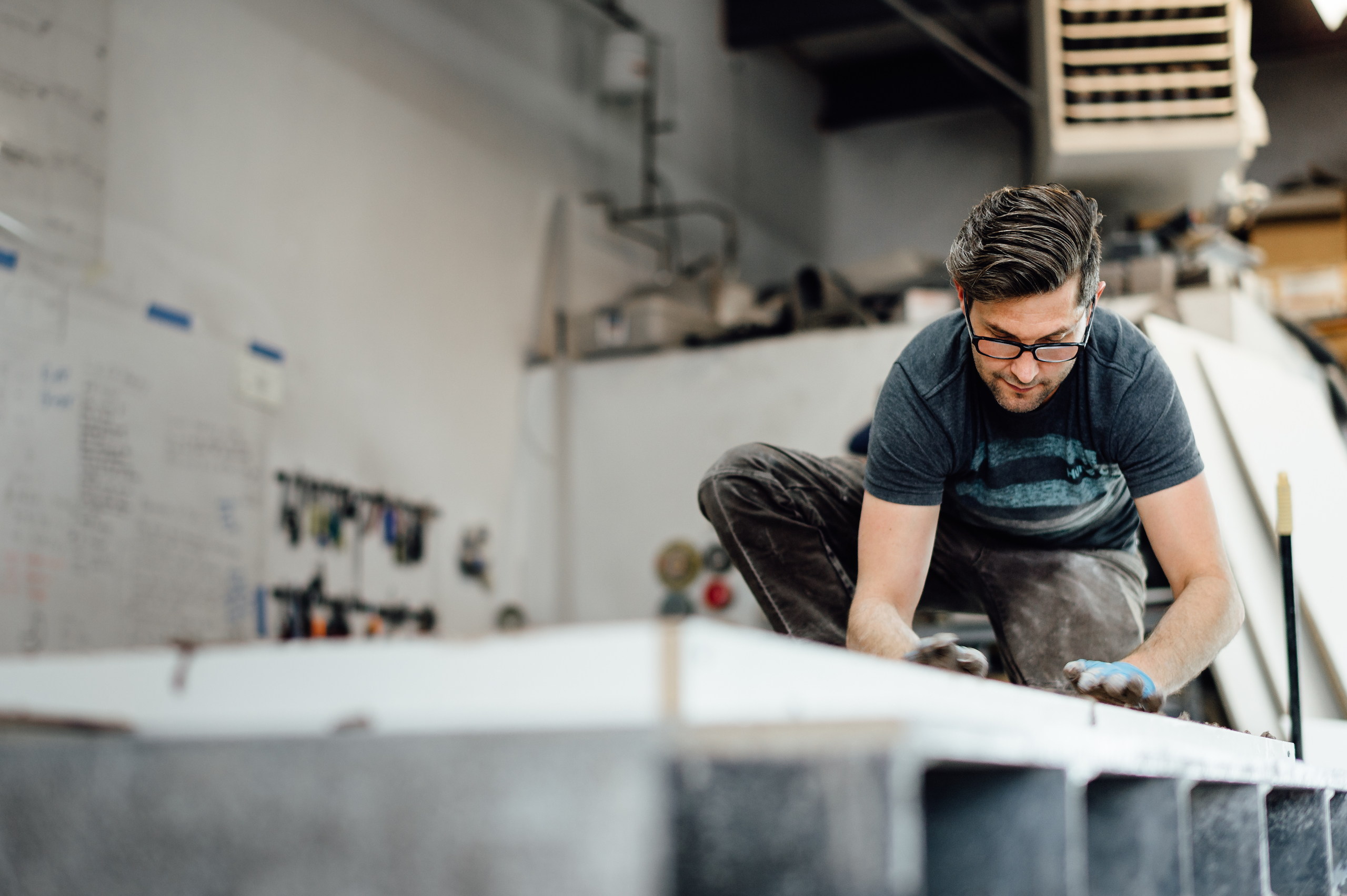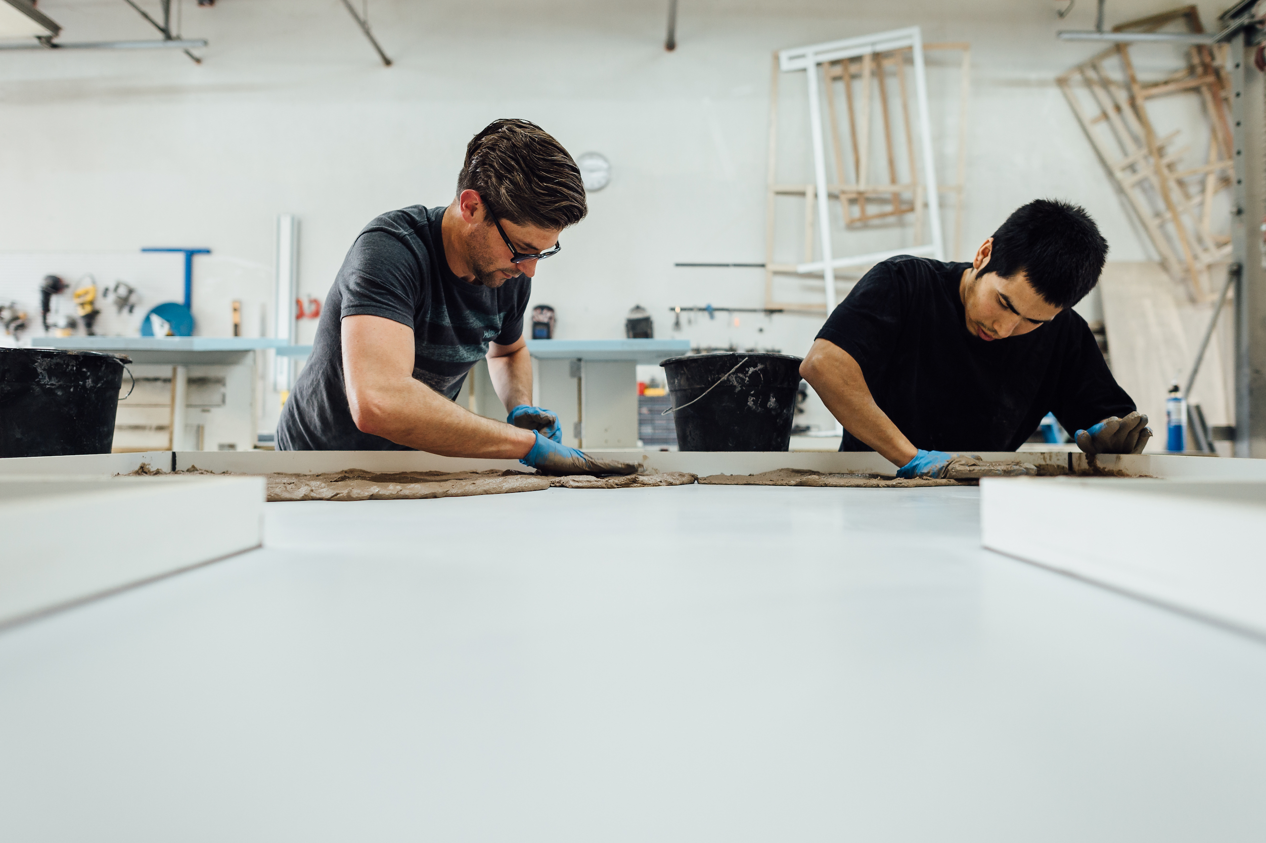 This process of bringing out concrete’s innate attractiveness largely revolves around the patina that forms on the surface of each finished piece. And, while every dimension and edge up until that point is fastidiously measured, Brian’s crew takes a more hands-off approach here. They set the parameters for where the finished look will fall on a scale of rustic to minimal...aside from that, the formation of a finished surface is entirely organic. Translation: every project strikes a solid balance between the appeal of precision and the delicacy of contingency.