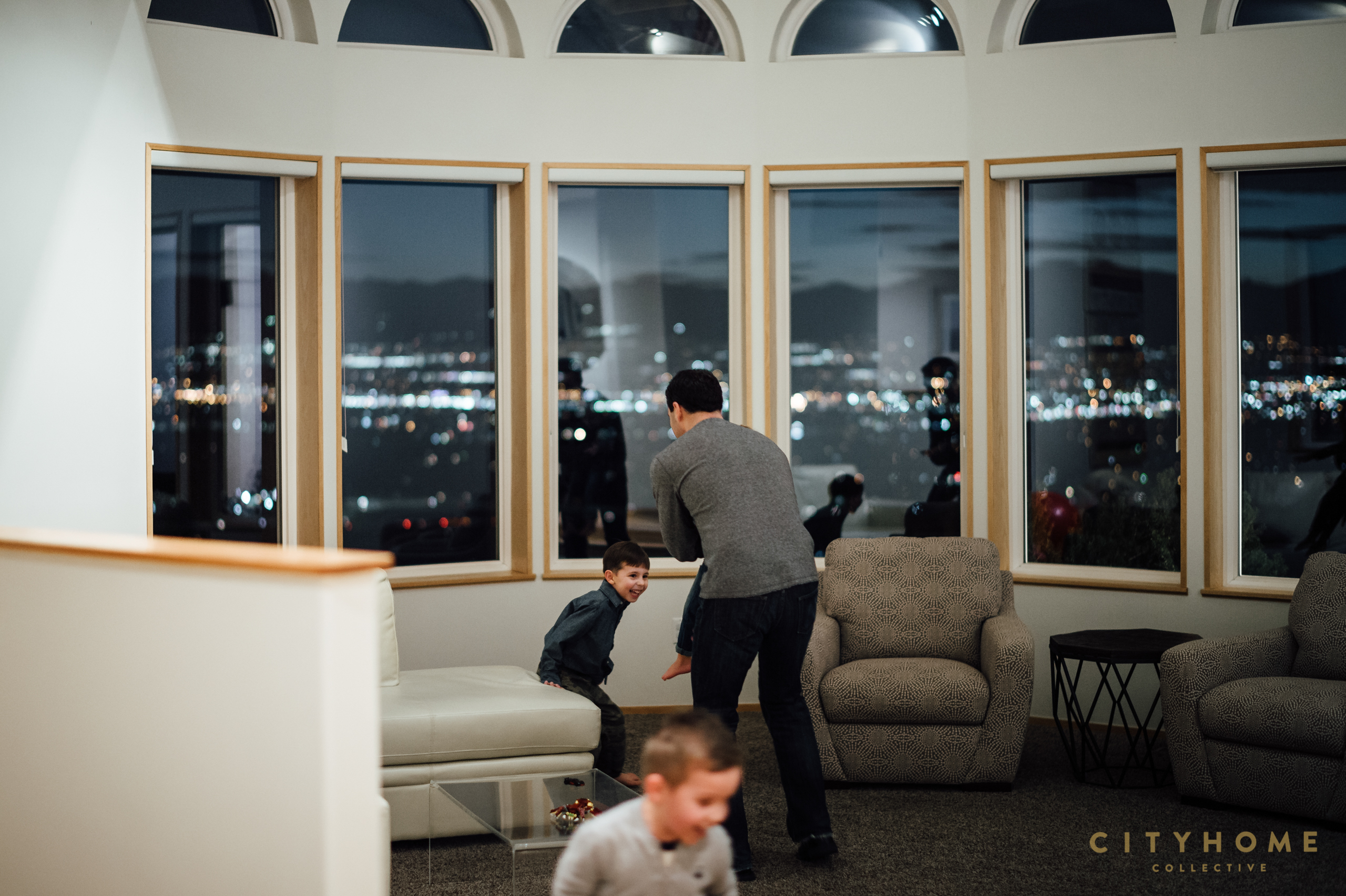 Inside, we’re smitten with the clean lines, asymmetrical massings, and oversized windows (and, subsequently, the copious amount of natural light). There’s a sense of airiness in this interior—courtesy of tall ceilings, skylights, and a neutral palette—and we recently took full advantage of the space, those views, good company, and one of SLC’s dreamy sunsets.