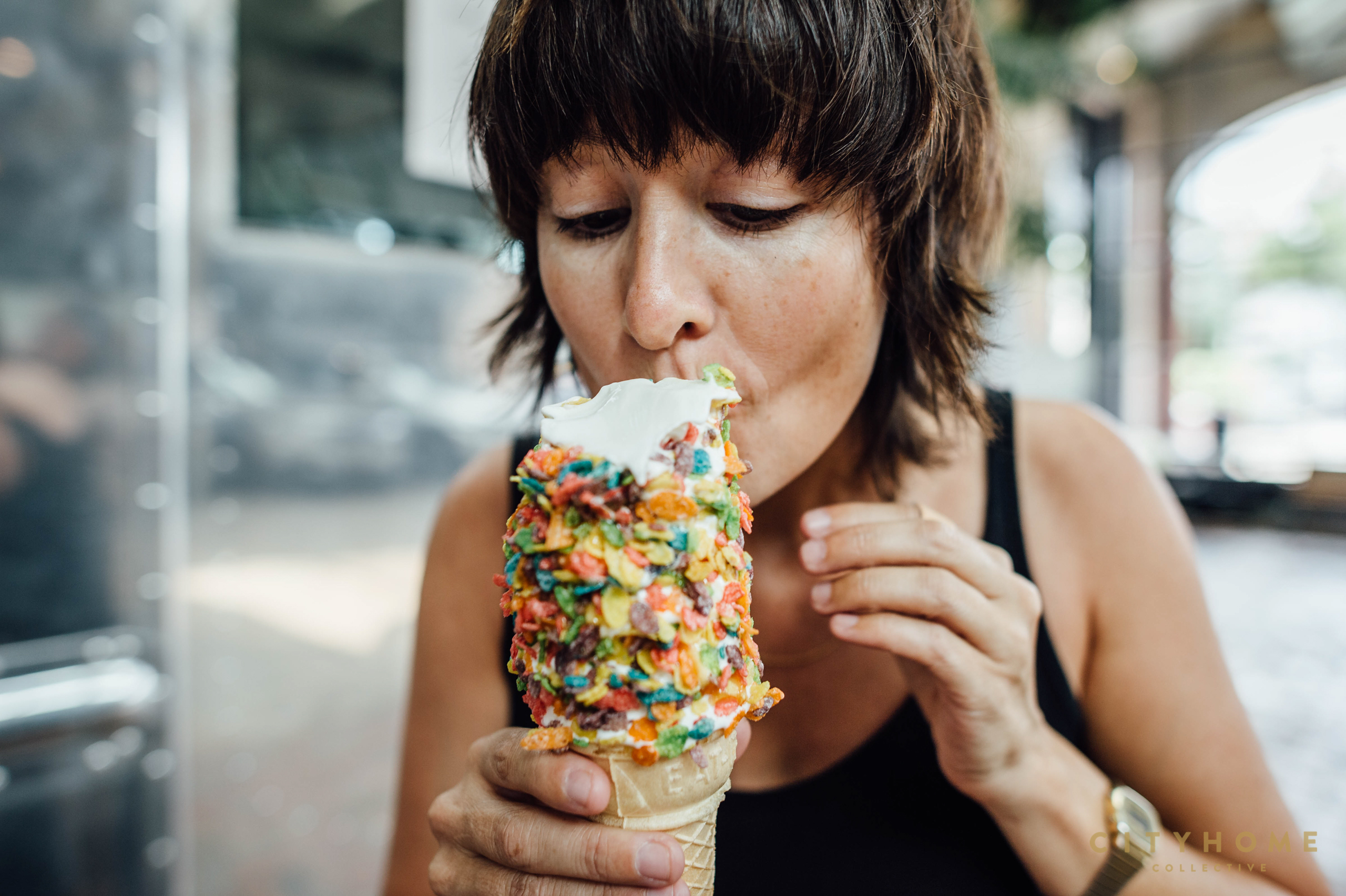 In true Alexa fashion, she’s upping the ante beyond the typical vanilla-choco swirl with Jimmies if you’re feeling fancy. Nope. She changes out the four base flavors every month, with results that induce heart-eyes and repeat visits. This month, you can get your greedy paws on traditional vanilla bean (because, duh), black sesame, decadent cream cheese, and apple cider sorbet. Have it unadorned as Alexa does, or add some glam with hard-shell dips like dark chocolate or dulcey, fruity syrups or savory jams, or as we did recently, dipped in passionfruit caramel and coated in Fruity Pebbles. For the indecisive (guilty, as charged) there are plenty of swirled up options, to boot. And for the truly adventurous, check out Normal’s composed cone menu, featuring gravity defying, Wonka-worthy variations glorious with syrups, candy chunks, dips, cookie crumbles, and swoops of cotton candy.