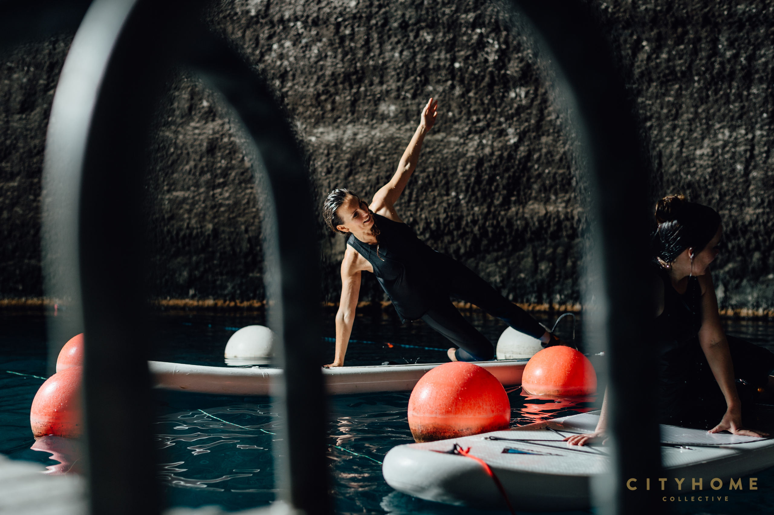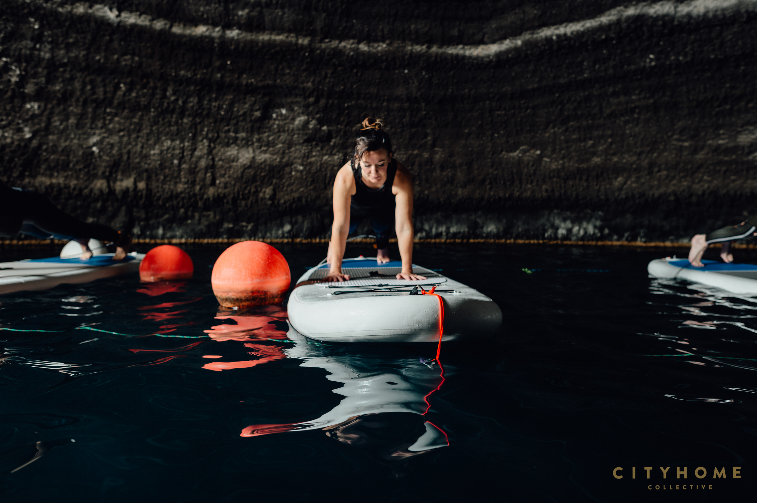 What seems relatively doable on solid ground, such as standing on one foot, becomes infinitely more difficult when perched atop a shaky piece of styrofoam. But that’s also what is so inherently valuable about the class. It’s an activity where ego is best left behind and a prescient reminder that winning and losing are often one in the same (falling off the board only means taking a dip in the aforementioned hot spring).