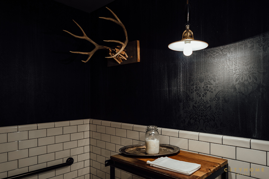 9. The large, metal doorway that leads to the hallway and restrooms was one of the original loading docks. The right side (covered in corrugated metal) doesn’t lead anywhere, as the kitchen wall is just behind, but we wanted to maintain the complete facade, nevertheless.