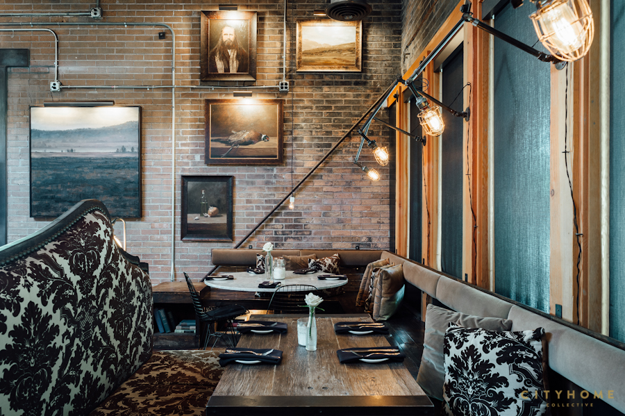 3. Every painting in Pallet was commissioned specifically for the restaurant. Cody enlisted his uber-talented sister-in-law, Courtney Derrick, and the two curated a set of works that would underscore the moody vibe of the space. Courtney painted every last piece, from the landscapes to Porter Rockwell.