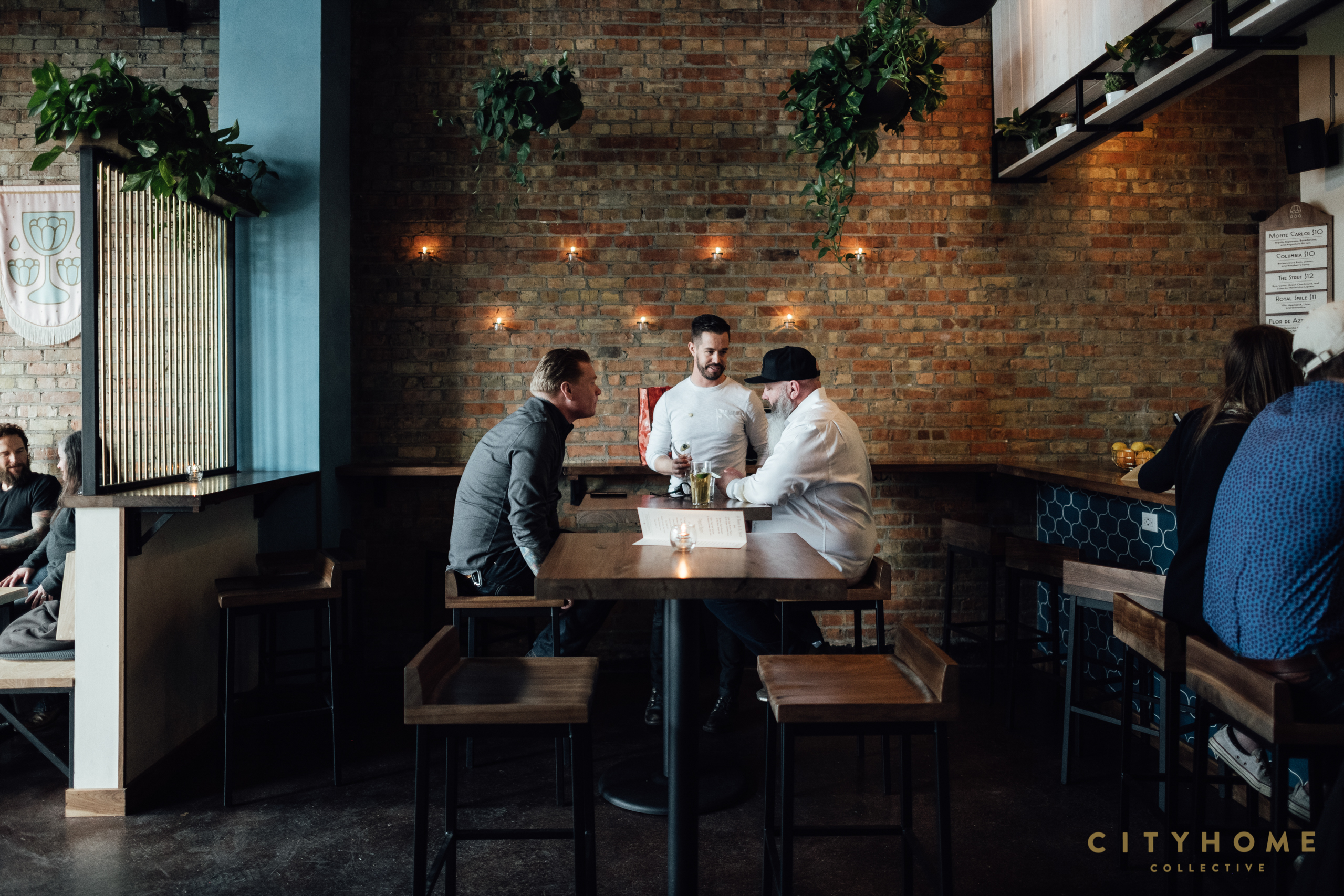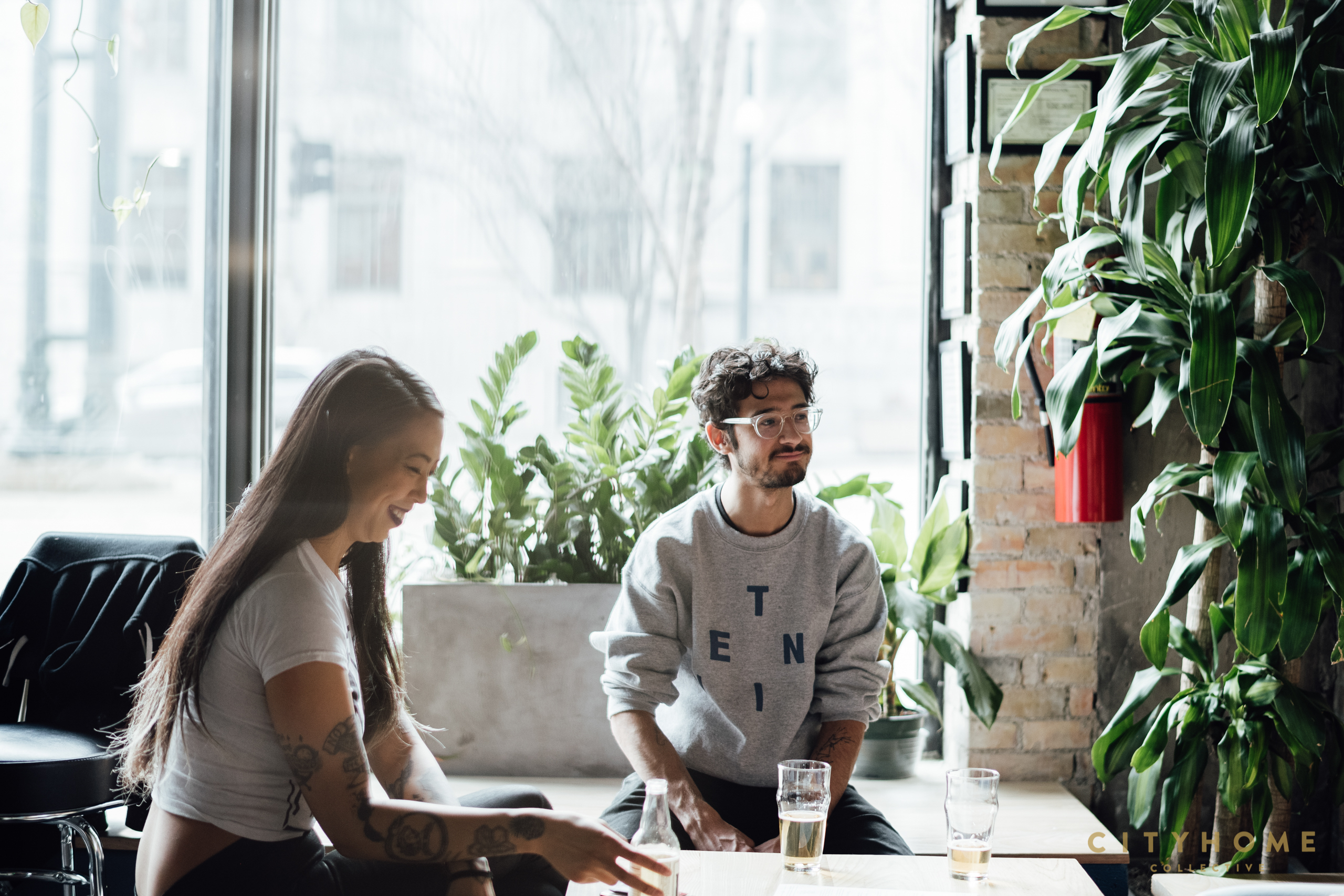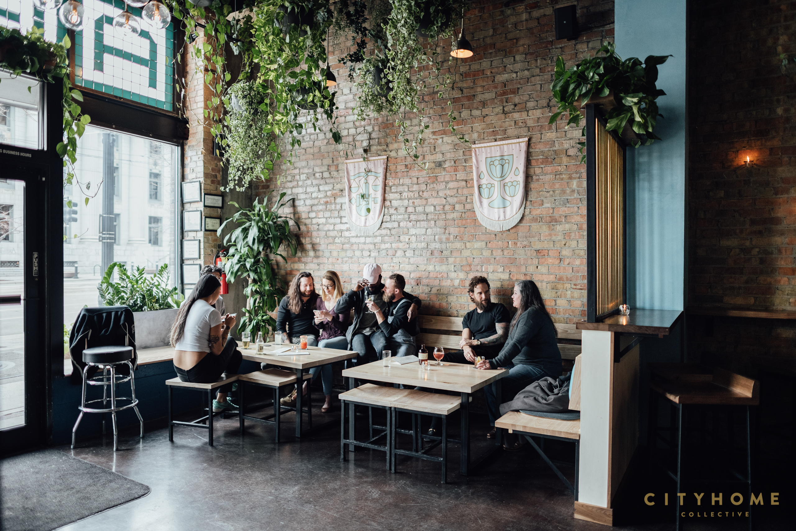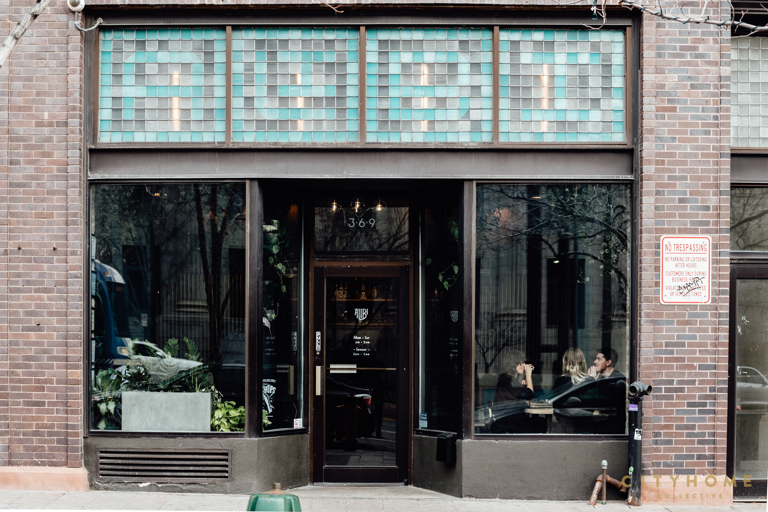 It doesn’t take much of an airtight excuse to get us in to Alibi. It’s the ideal trifecta of amazing cocktails, engaging design, and primo location that are a solid bet in our books. Lots of natural light if you want it, or cozy corners for snuggling equally abound. Clean lines mellowed and enhanced by the stellar mural by Dan Christofferson (a COLLECTIVE fav), who along with finish carpenter Oliver Lewis was given free reign with the bar design and aesthetic. The finished product reads as layered, urban, comfortable, and funky.