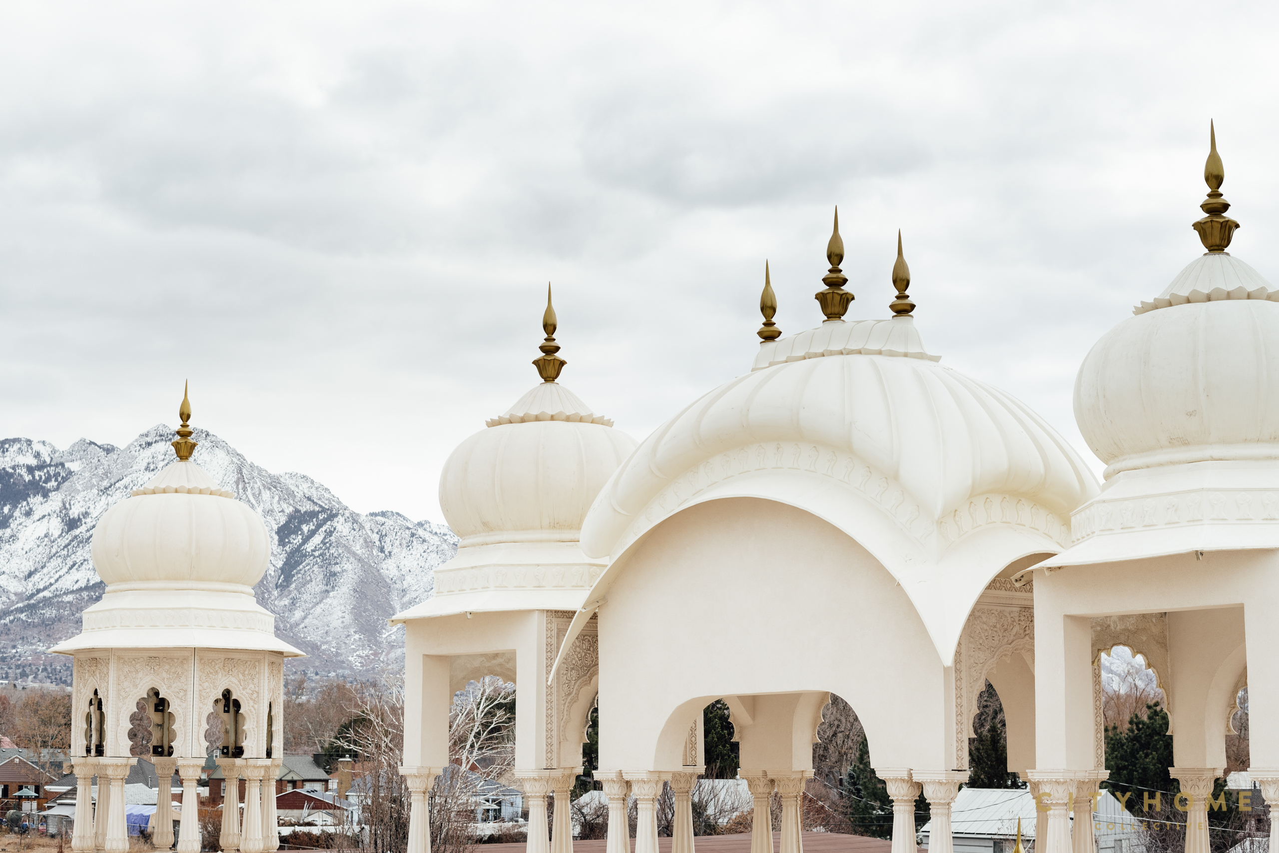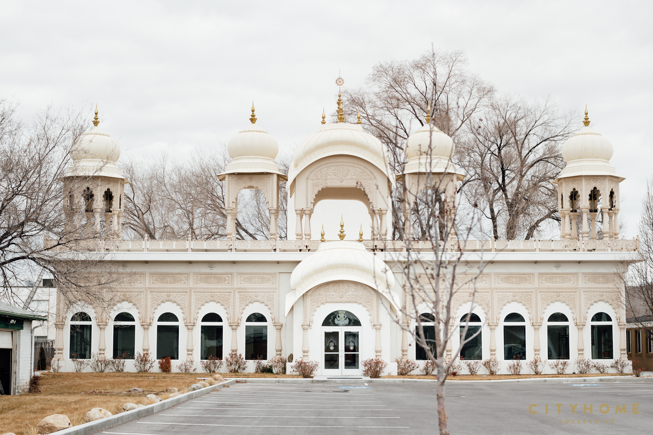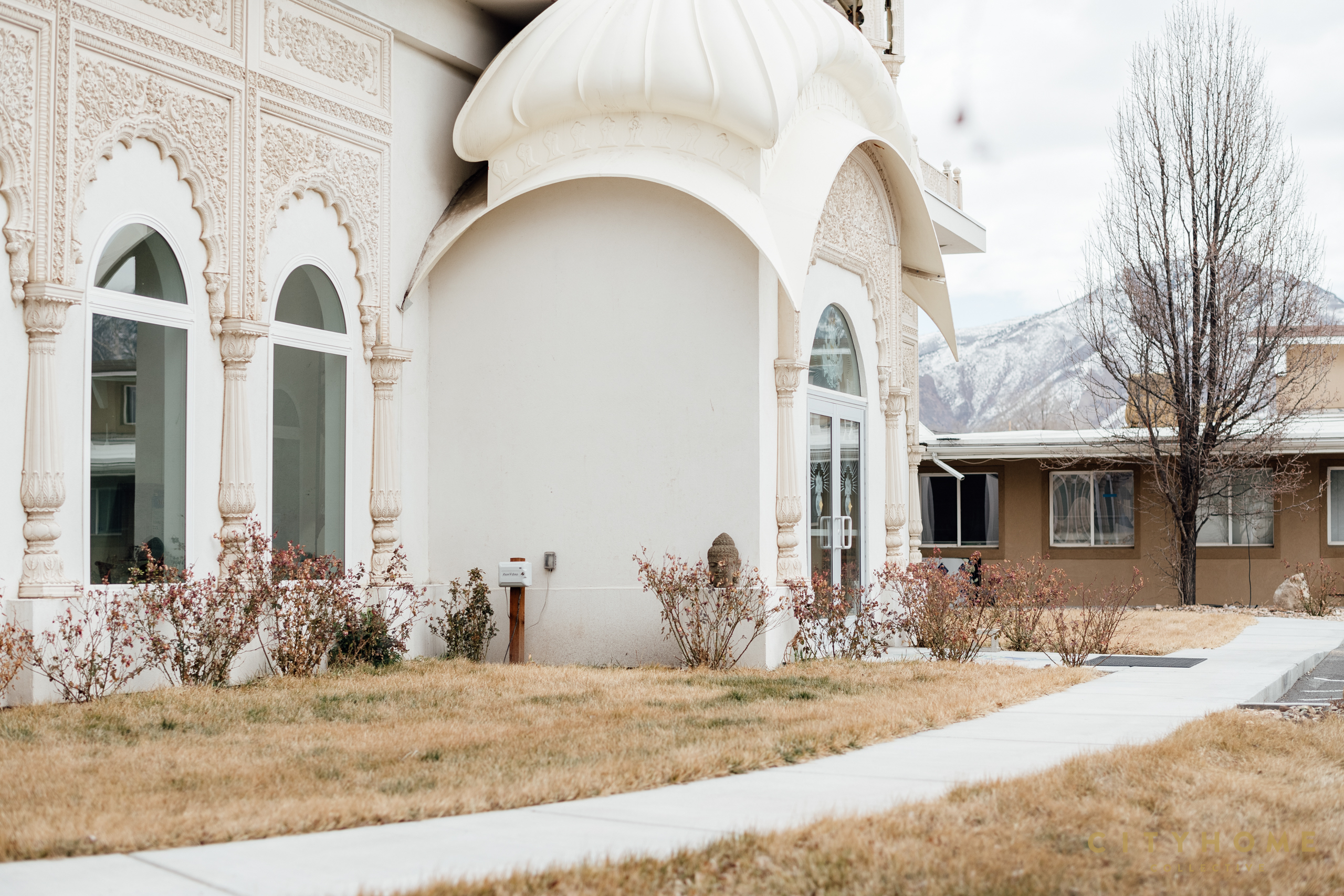 In acknowledgment of these countless architectural contributions, we discovered the development of a most prized four-acre lot in lower Millcreek. The property has been under ownership since 2011 by the very same Krishna devotees that brought to us the stunning Lotus Temple in Spanish Fork (completed in 1996). Though at the time of its purchase, existing structures on the land in Millcreek were already operational, a proper place of worship was still underway. Today, atypical white bulbous domes adorned with golden ornaments protruding above the canopy of the trees might catch your eye as you make your way down 9th east through this sleepy segment of town.