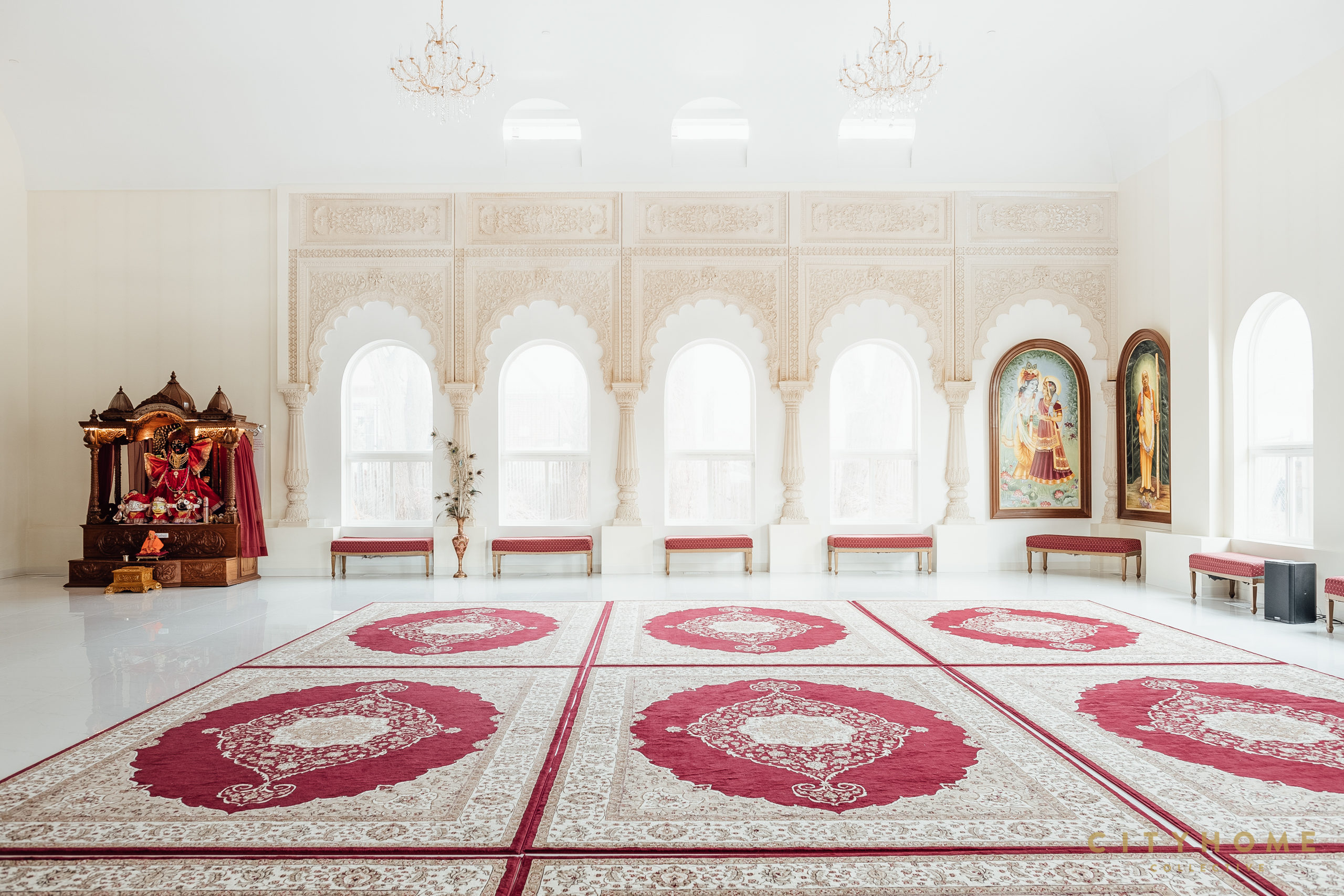 7,000 sq. ft. of pristine white marble tile lines the temple floor in its entirety.