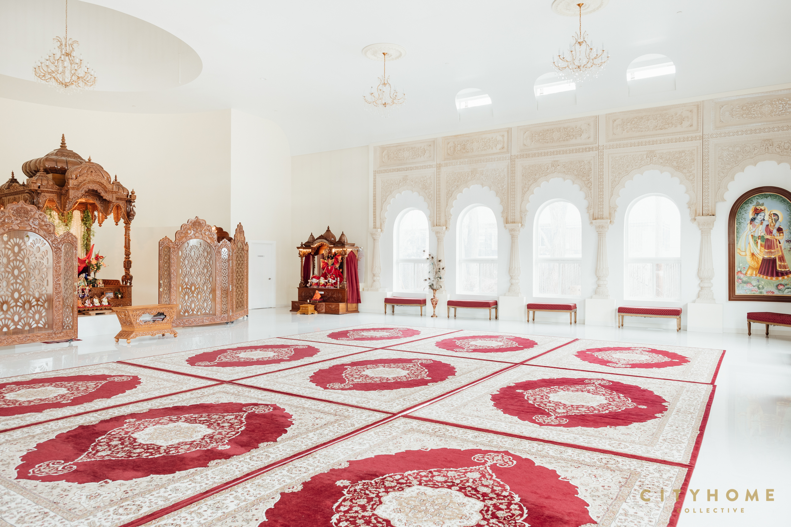 Confessedly, her primary architectural inspiration was the Kusum Sarovar (Lotus on the Lake) in Vrindavan, Rajasthan (Krishna’s birthplace). For this reason, the domes of her designs are reminiscent of lotus petals. “As we decorate Millcreek you will see more paintings and lotus images,” she assures us.