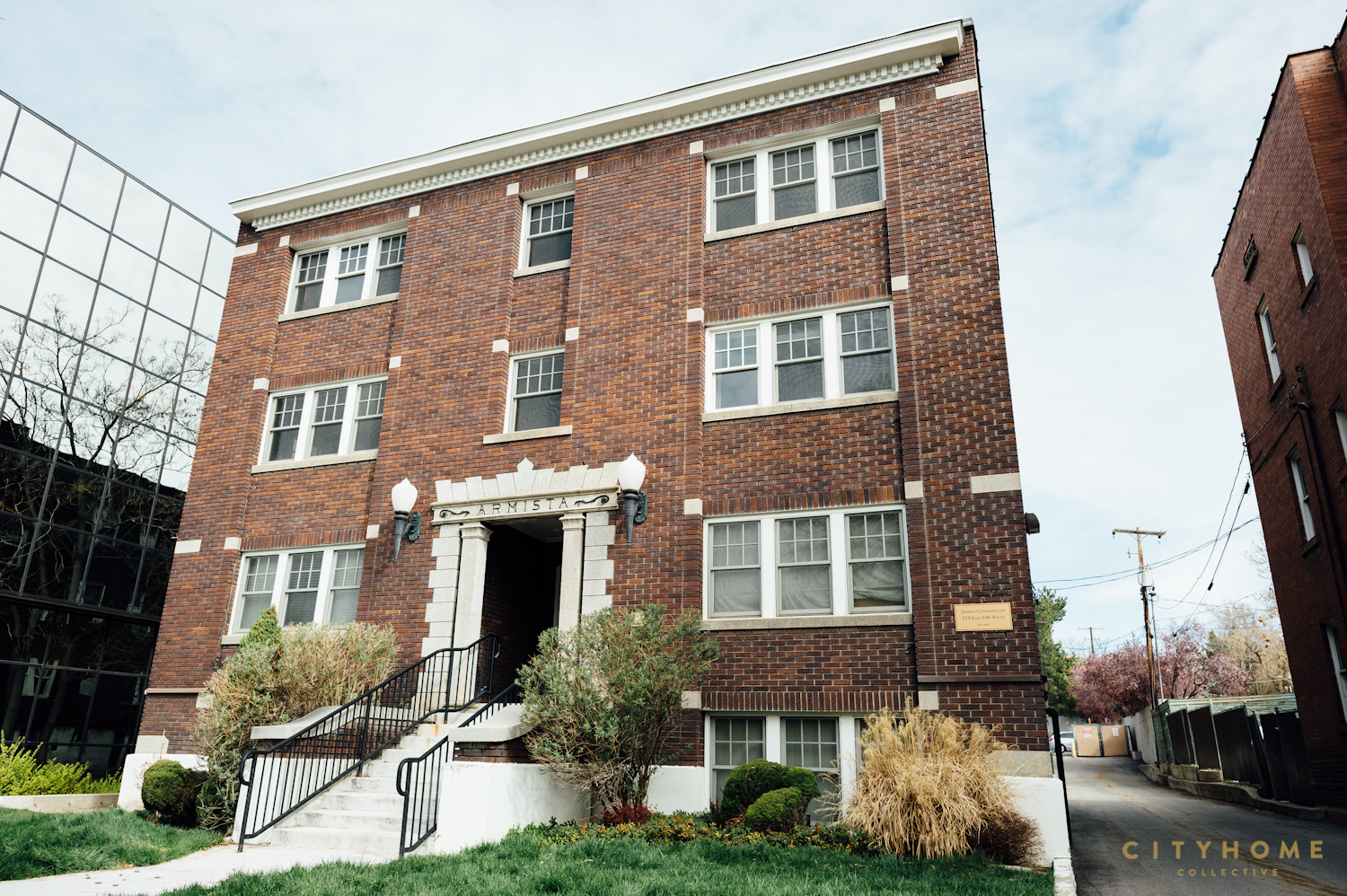 This sturdy little mid-city situation is absolutely packed with classic architectural goodness. Built in 1927, and listed on the National Register of Historic Places in 1989, the time-honored charm is palpable, here. With neat brickwork, intricate molding, and lamps flanking each side of the entrance, the exterior is elegant, to say the least. Inside, each unit has been immaculately restored, in what we call "the best o' both worlds". Original, exposed brick and hardwood floors meet new cabinetry and stainless steel appliances, and the bathrooms have been restored with honeycomb tiles, full tubs, and pedestal sinks. With a location in between the University and downtown, this place is ace.