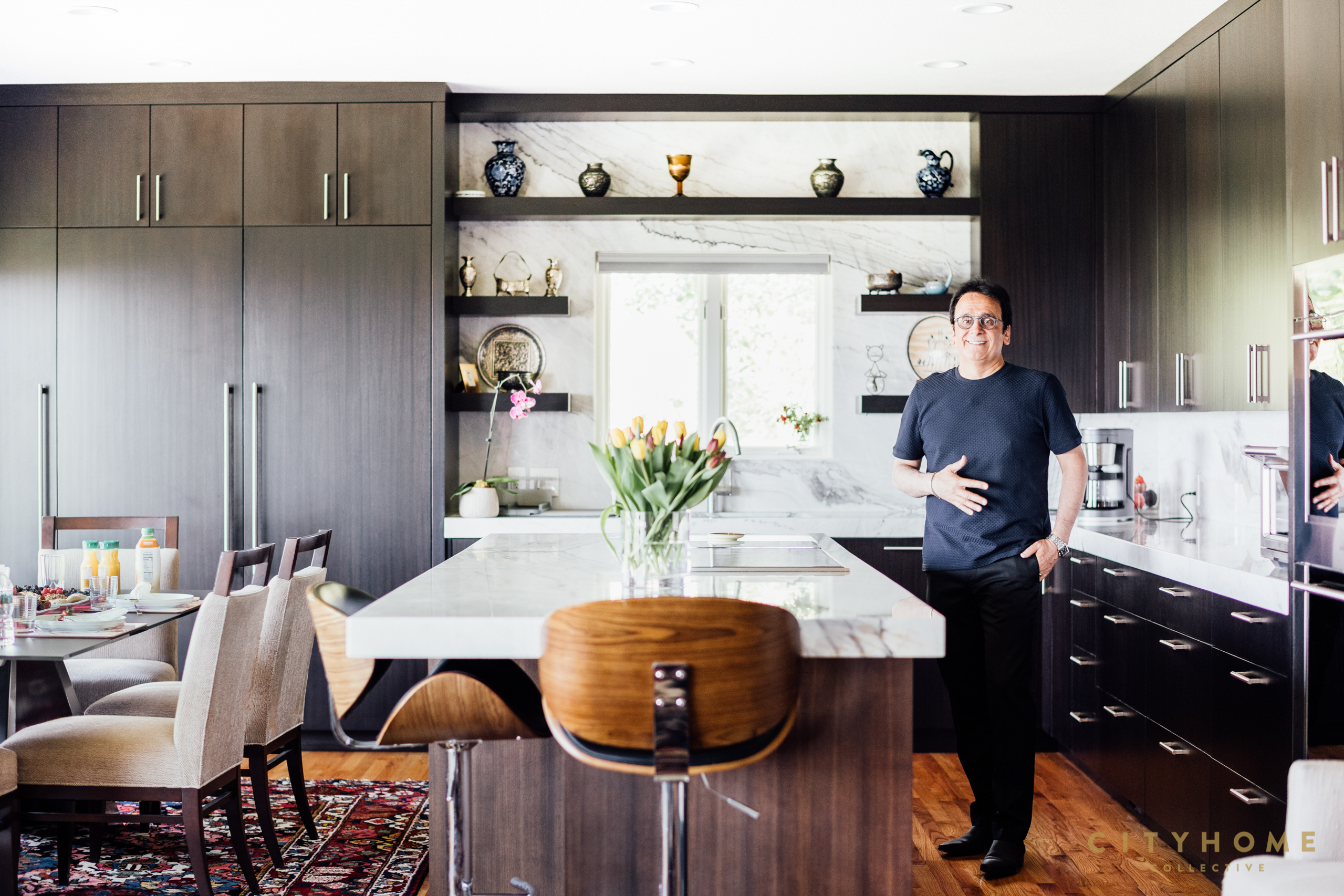 Dr. Hamid Adib: Being Persian, the kitchen tends to be the most used part of the whole house. Our kitchen and family room are modern style but decorated with a mixture of traditional, transitional, and contemporary components to make them more cozy, eclectic, and warm. It is attached to our balcony that faces the valley. This part of the house is where we spend most of our time as a family.