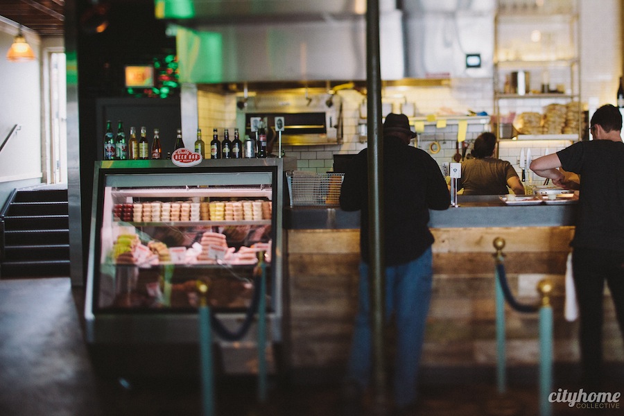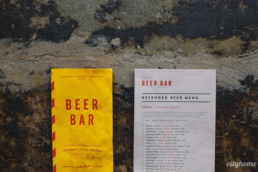It doesn’t hurt that this casually-knocking-shoulders, laid-back, community-driven concept of BEER BAR was intentionally branded and developed to be that way. “We envisioned a place where people felt comfortable sitting together. Sharing great beer and food,” said one of the four owners, Jeff Barnard, when we met with him recently. He’s joined by a veritable Who’s Who of food and beverage royalty in the 801, along with co-owners Richard Noel, Duncan Burrell, and Ty Burrell [yes, Modern Family fans, Phil Dunphy]. They kicked through the wall of their next-door cocktail nirvana, Bar X, to combine the two spaces, both in liquor license ownership and in quality-driven principle, and in doing so added more than double the square footage. What Bar X represents in a superlative cocktail experience, BEER BAR does for hoppy beverages and casual food. Add to the mix award-winning chef Viet Pham [more with this talented and dapper gent and his fine dining plans in our Salty City, on the COLLECTIVE blog soon], who developed the bar’s signature approachable food emphasis and consulted on the menu and hiring. On-site, full-time chef, Brandon Kawakami, is keeping all this delightful shit tight on the daily. And, they’ve hired Kyle Trammell, the bar’s own cicerone –that’d be the sommelier of the beer world—as the totes legit brew genius supervising 30 beers on tap and over 150 bottled offerings on a constantly-revolving menu. Kyle’s keeping the hops geeks happy with such engineering wonders as an English-style hand pumped Beer Engine and soon-to-be-installed Randall hops infuser. Just ask your certified beer server what’s up with all that shiny steam punk gadgetry. They’ll steer [and serve] you right. There are even a couple of very refreshing beer-based cocktails on the menu.