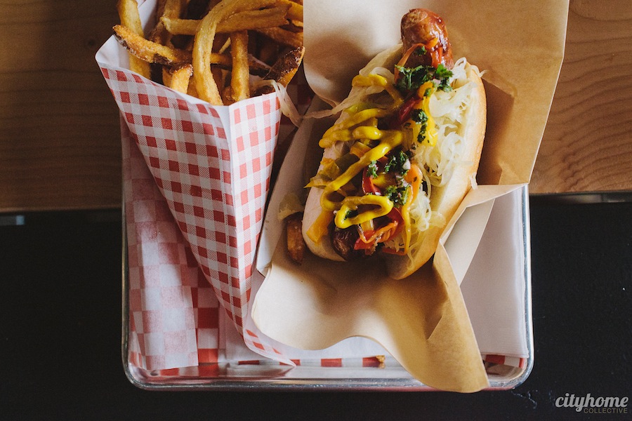 Yes, there’s a tempting and vast variety of carefully selected brews, as there should be at any joint proclaiming what it is in ALL CAPS. Oh, but it’s beer served at the precise temperature, poured correctly into a perfectly selected and freshly-cleaned glass, just as the brewer and your benevolent deity of choice intended it. Check. Big screen projections of sporting events? Double-check. Savory meat in tube form with lots o’ fresh fixin’s to go with? Hells YES. And that’s where the more typical barroom comparisons end, and the delicious diversion begins. If you like your comestible atmosphere more reminiscent of the boisterous camaraderie of a Bavarian village beer hall or après ski tavern than the soul-sucking isolation of a fast-food drive thru—and we COLLECTIVELY and decidedly do—then this is your new favorite place. Don’t be shy, now. Pocket your phone, sit at a long table next to someone who’s digging into something interesting, make eye contact, and say “hey.” You’ve got a love of beer and brats in common already, right? Maybe you’ll make a new friend. Awww. Warm fuzzies.
