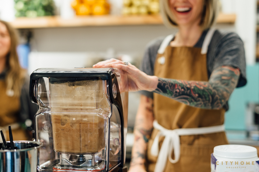 Every smoothie is a discovery, each flavor tailor-made to stand in perfect harmony with the rest of the blended sublimity. Mango peaks through your taste buds just after you taste a hint of coconut. Peanut butter melts in your mouth, then boom…there’s banana. Hints of cinnamon, dashes of turmeric, the zing of ginger…it’s a well-timed symphony in this place. “We don’t sweeten our smoothies with anything other than the sweetness of the fruit, and we aren’t putting a tiny handful of greens in–we are putting a serious amount of nutrition in every single one.” Erin says proudly. Every ingredient sourced locally or from a whole-food supplier, they’re serving up drinks that are “yummy, diverse and healthy as possible.” Their process is unique to them. And their business? Blended to ripe perfection.