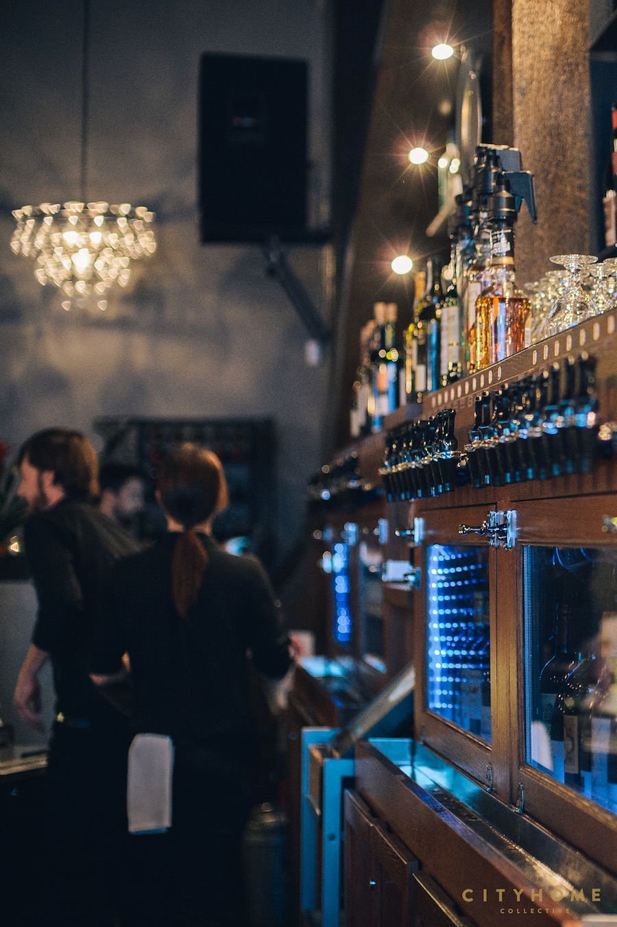Tell us about the space conversion. Was there anything about its previous incarnation that made the transition particularly easy or difficult? The physical bar was in place and a lot of the “guts” of the space were there. We did quite a bit of work behind the bar and had to modify things a bit to accommodate the wine cabinets that allow us the large, by-the-glass selection. We had to source fixtures and when we couldn’t find the particular look we were going for, we had to make some of the stuff ourselves. The booths were in place, but the upholstery was pretty tired, so we had those repaired and changed up the color. Painting of course. We replaced all of the lighting. I’m sure there’s more.