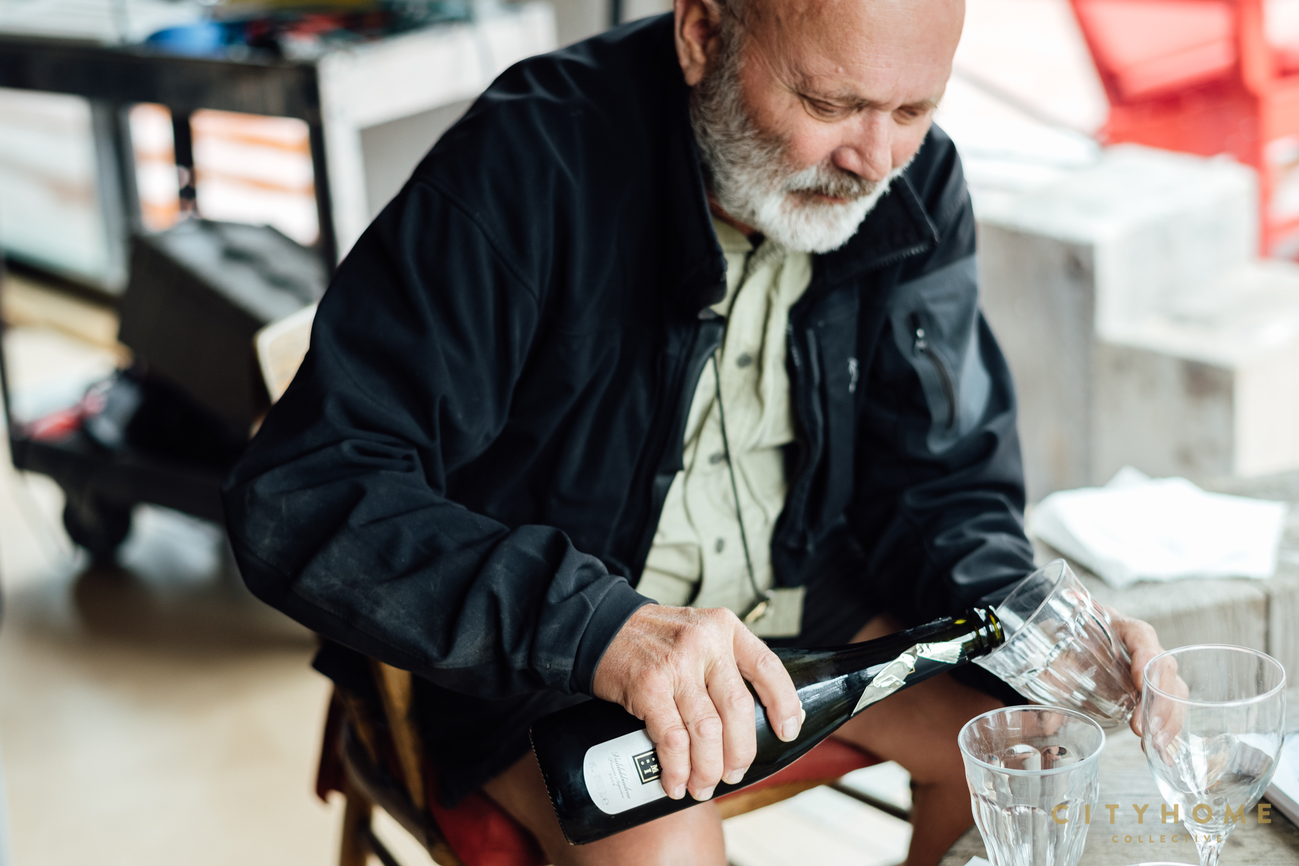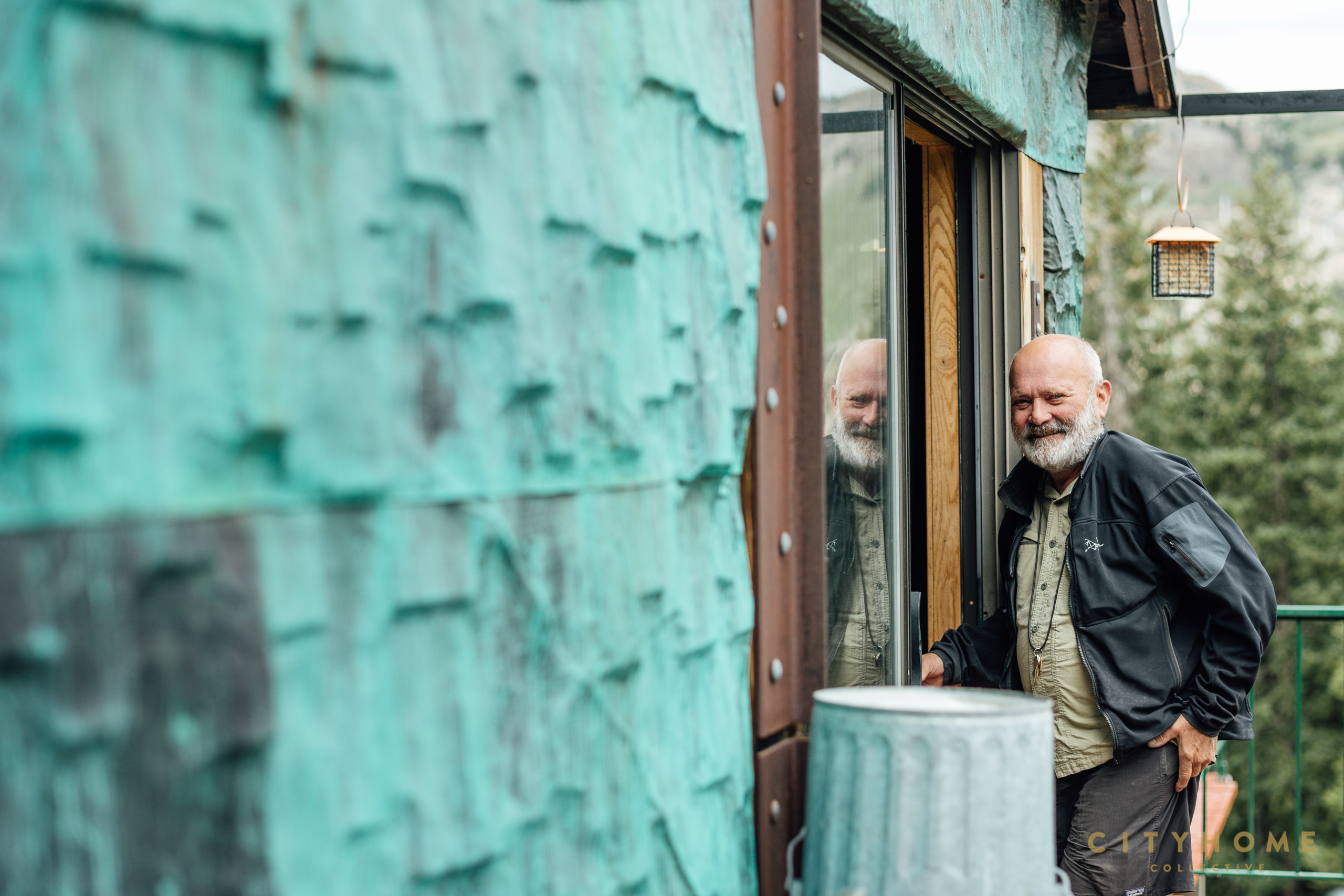 Wood shingles are covered in hand-pounded copper, and doors appear as though they were removed from the hinges of the Keebler Treehouse. Hawks are ever swirling overhead here, and views from every side of the property command a sense of reverence, yielding an unimpeded look at peaks in all directions. Our visit saw the property surrounded by summer green grass and wild flowers, but there were tales, too, of snow-cat woes ("all the way snowed-in") and being awakened by avalanche control explosives, as well as a references to hot-tub parties that we can only dream of. It's a life of balance here.