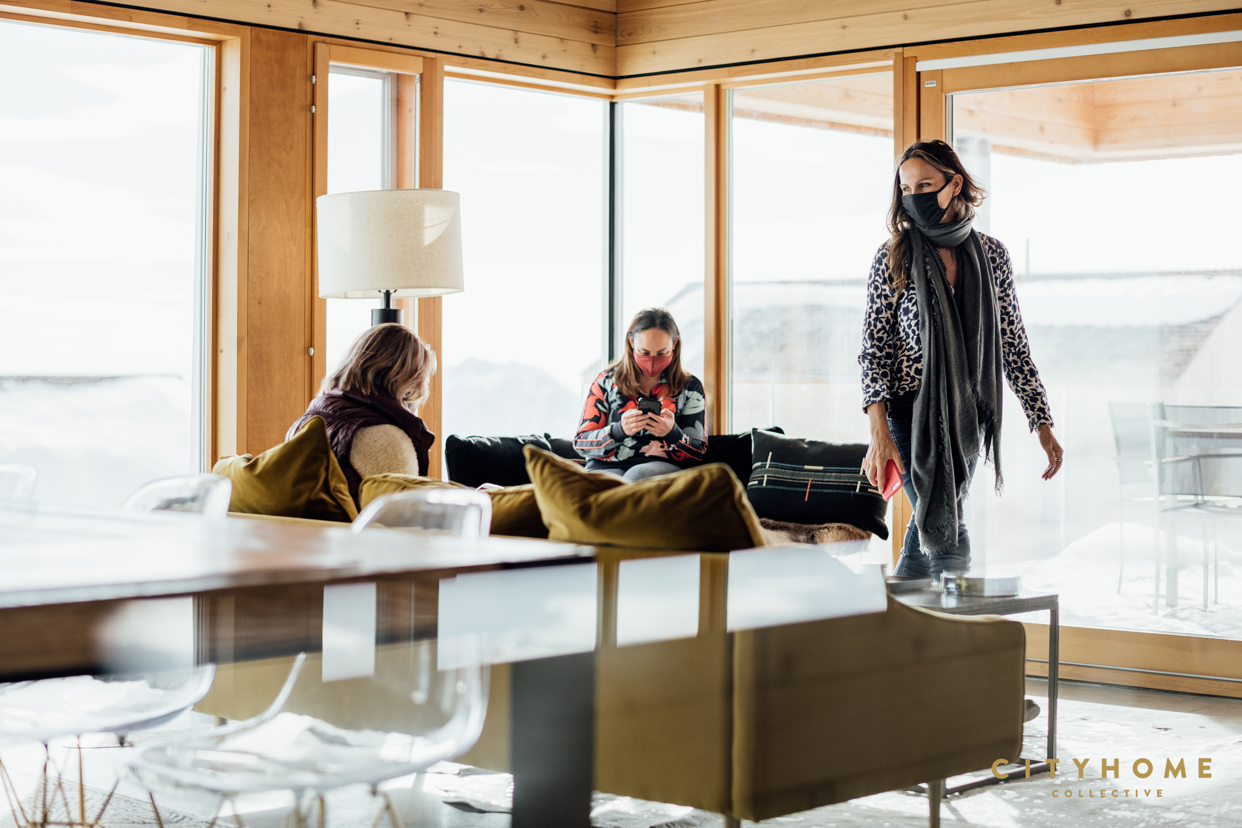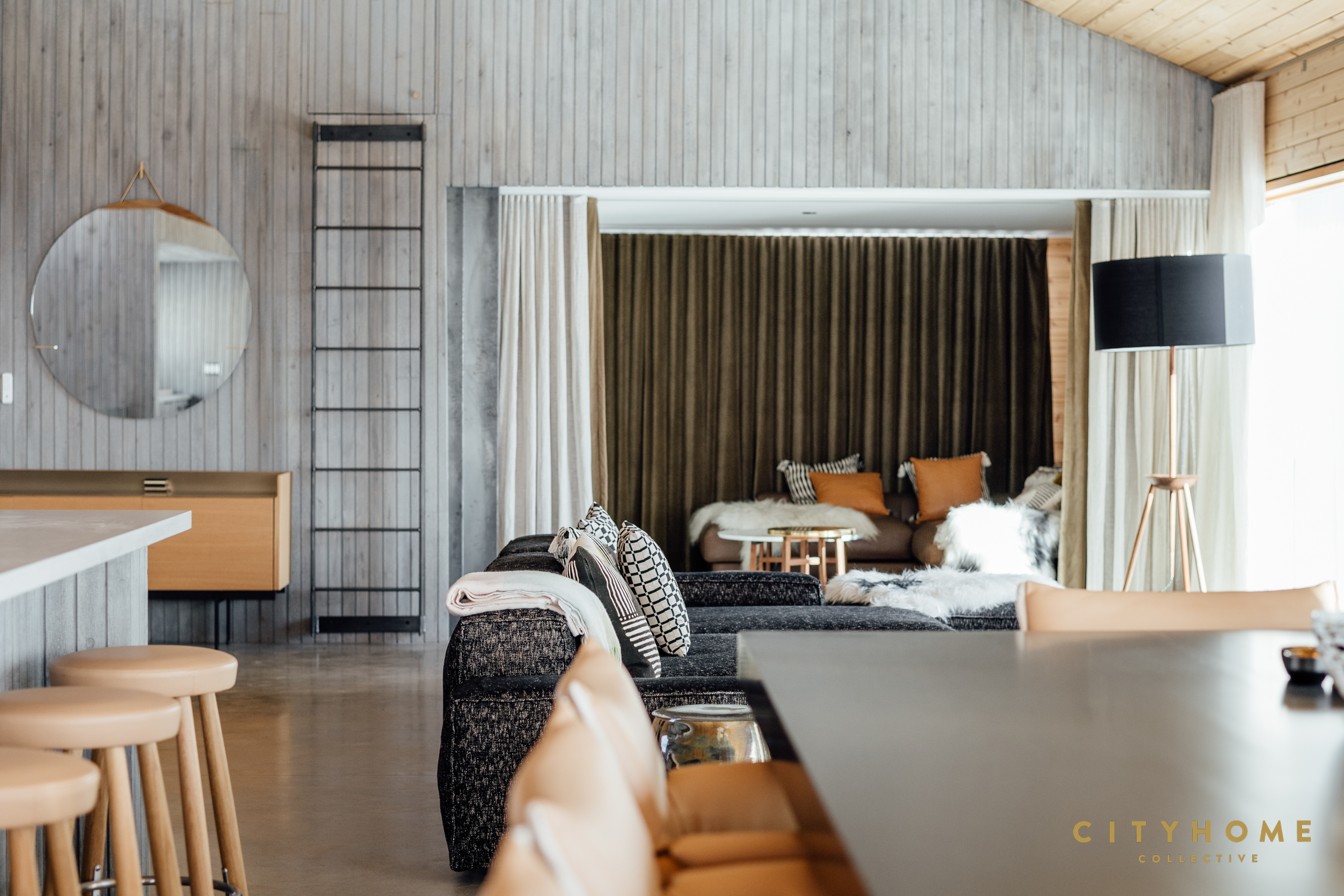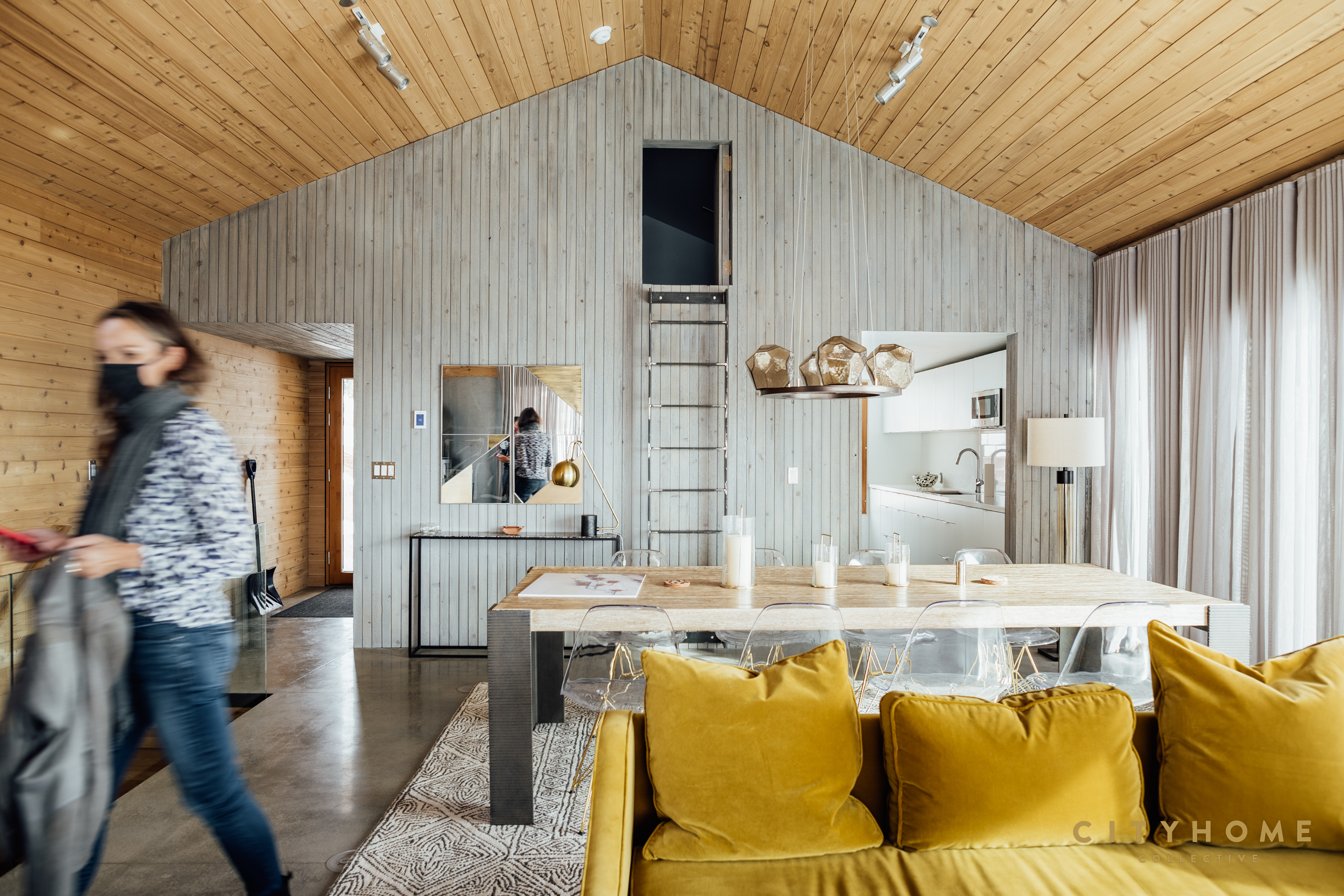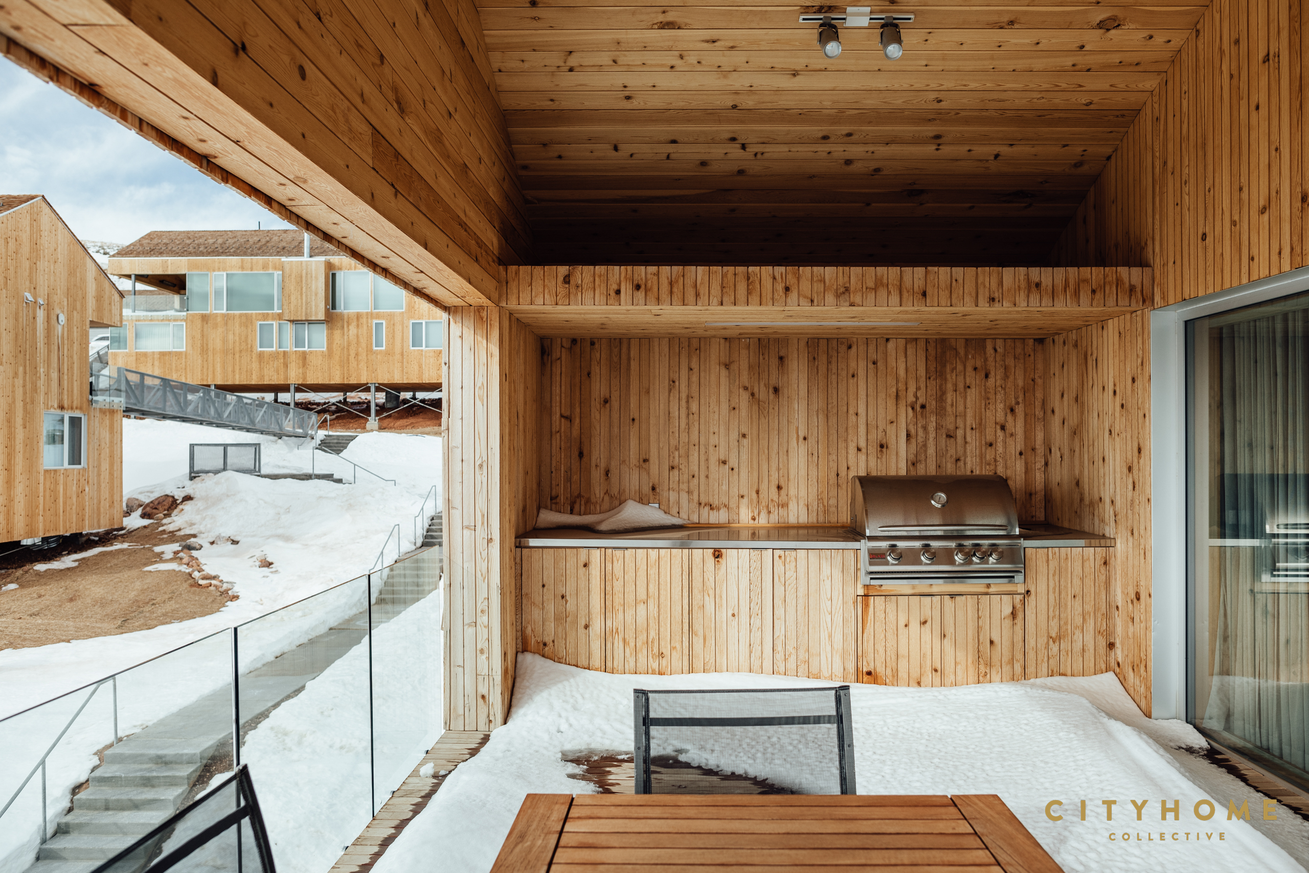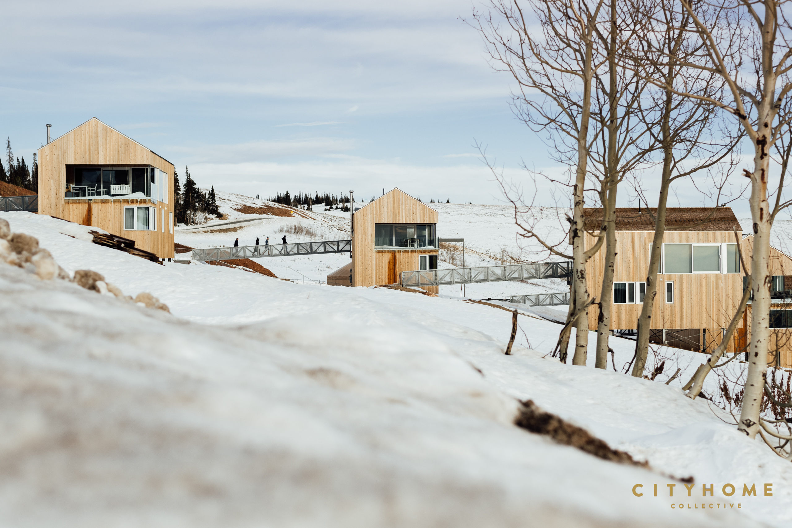 From the jump, the Horizon Neighborhood presented a challenging-but-intriguing landscape. Namely, the award-winning architecture firm tapped for the project—Mackay-Lyons Sweetapple—needed to find a way to build unique cabins (9,000 feet above sea level) that would take full advantage of the site’s magnificent views while withstanding whipping winds and 500 inches of snowfall each year. Because of the lack of roads or services when construction began, the firm got creative, using conscientious materials like cedar-shingled roofs, shiplap cedar walls, aluminum-clad wood windows, and limiting the amount of concrete needed to support the structures.