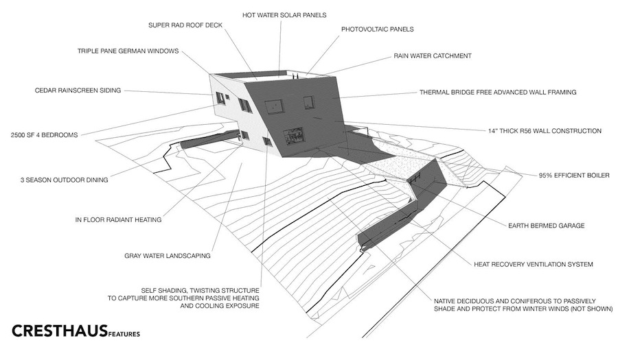 As it so happens, the new owners are a couple of talented film makers who are every bit as passionate about their new home--and what Passive Solar design can do for this planet--as we are. So, in the interest of keeping your eyes and hearts filled with all things good and green, we're here to show you a video they created about said, wonderfully-green home. If it makes you feel a twinge or two of jealousy, not to worry: we've not seen the last of Mr. Chris Price by any stretch. We have it on good authority (his, actually) that Chris is currently posted up in his live/work space (a rad little Airstream in the mountains of Summit Park) dreaming, drawing, and drooling over his next Passive Solar works of art. You can have a wee taste each below...CrestHaus and TreeHaus are in the early stages, but our minds are already blown. Our suggestion?