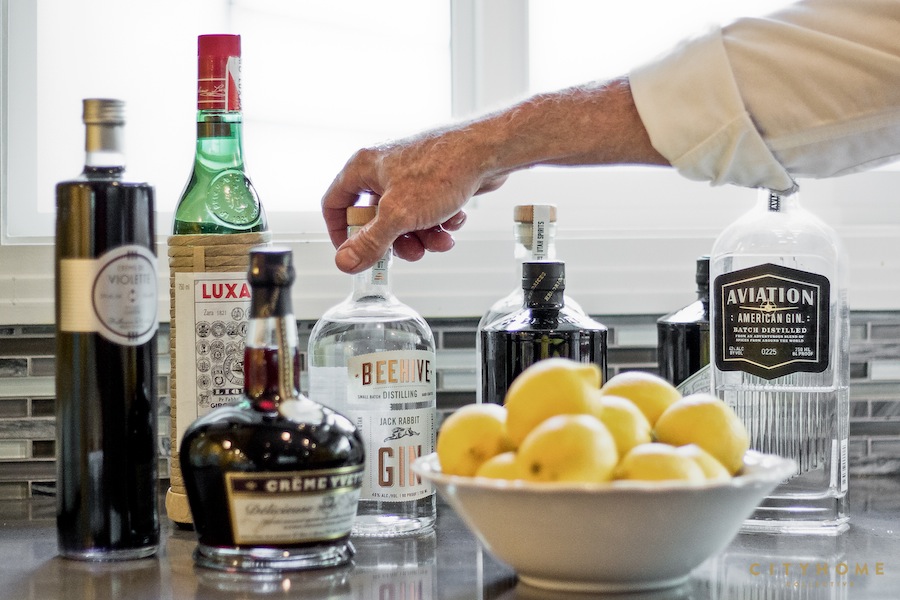 THE HUE: If you’re going to round up some Crème de Violette for that distinctive purple haze and floral nose, try to get yer paws on some Rothman & Winter from Austria. Crème Yvette is also a violet-infused liqueur with additional spices found at a scattered few state booze stores in Utah; it’ll do juuuust fine.