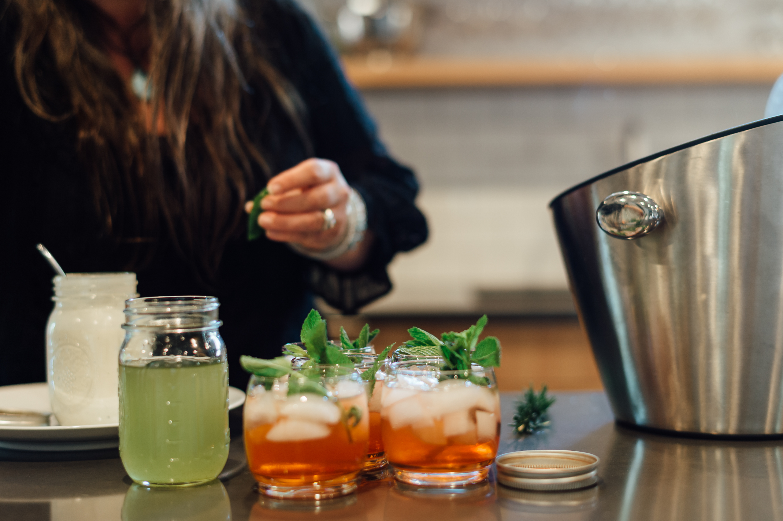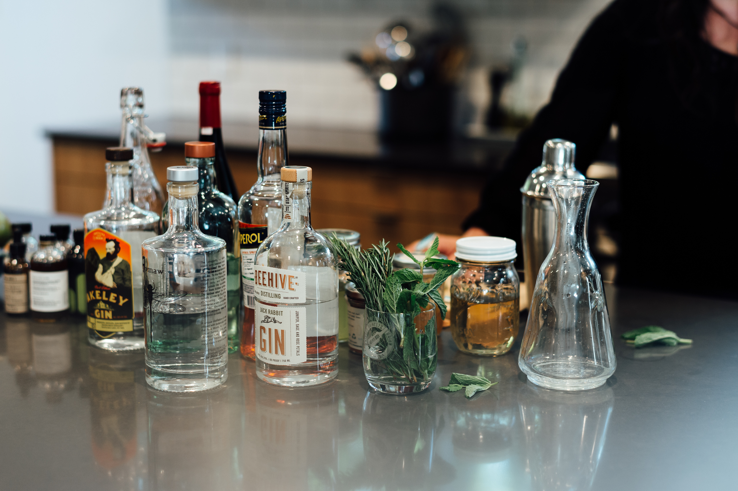 THE CITRUS: A classic G & T is equal parts gin and tonic water poured directly over plenty of fresh ice in a tumbler and garnished with a lime wedge. Lime, people. Ever a rebel, my grandma Audra Belle preferred hers with a generous squeeze of lemon, instead, and credited her long life to cooking in cast iron, long walks and daily G&T’s she made using Beefeater Gin. She lived to be 100. O.P. Rockwell bar manager and our COLLECTIVE hero Chris Panarelli suggests playing around with citrus flavors like blood orange, subbing in seasonal fruits like blackberry or peach and experimenting with few generous dashes of cocktail bitters. Says Beehive Gin distiller Chris Barlow, “The G and T is classic for a reason. It’s an incredibly flexible and refreshing drink, and the sky’s the limit for changing up the flavor profile.”