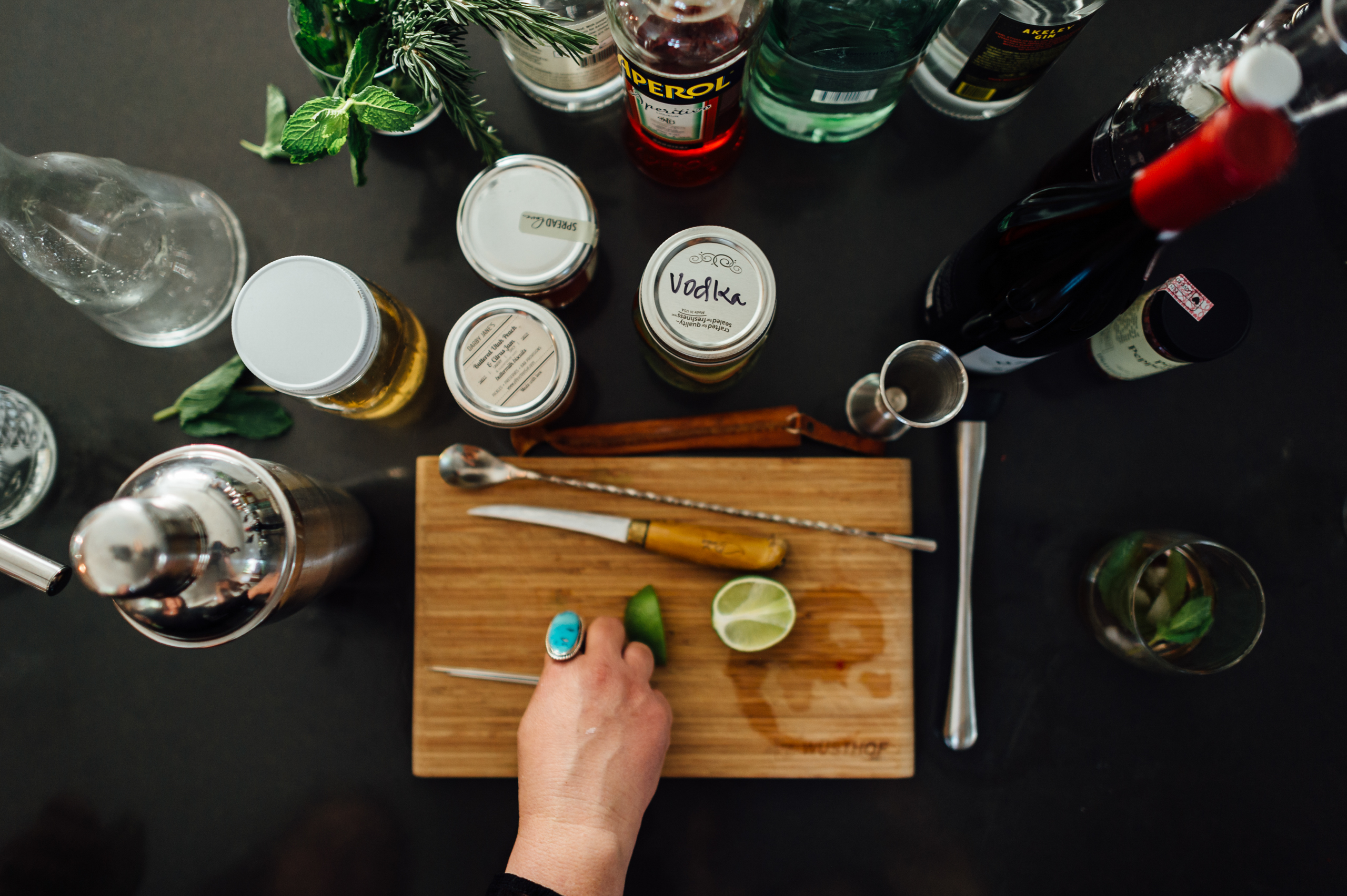 Embracing this international spirit of delectable experimentation on the path to inebriation, we gathered at Darby’s new casa in Holladay for drinks and nibbles with a handful of COLLECTIVE friends and neighbors. Bonus: breaking in the recently-remodeled kitchen she designed with the help of architect Tristan Shepherd (Craft A+D), contractor Mark Haslam (Sausage Space), and Mountainland Design. Cheers to that.