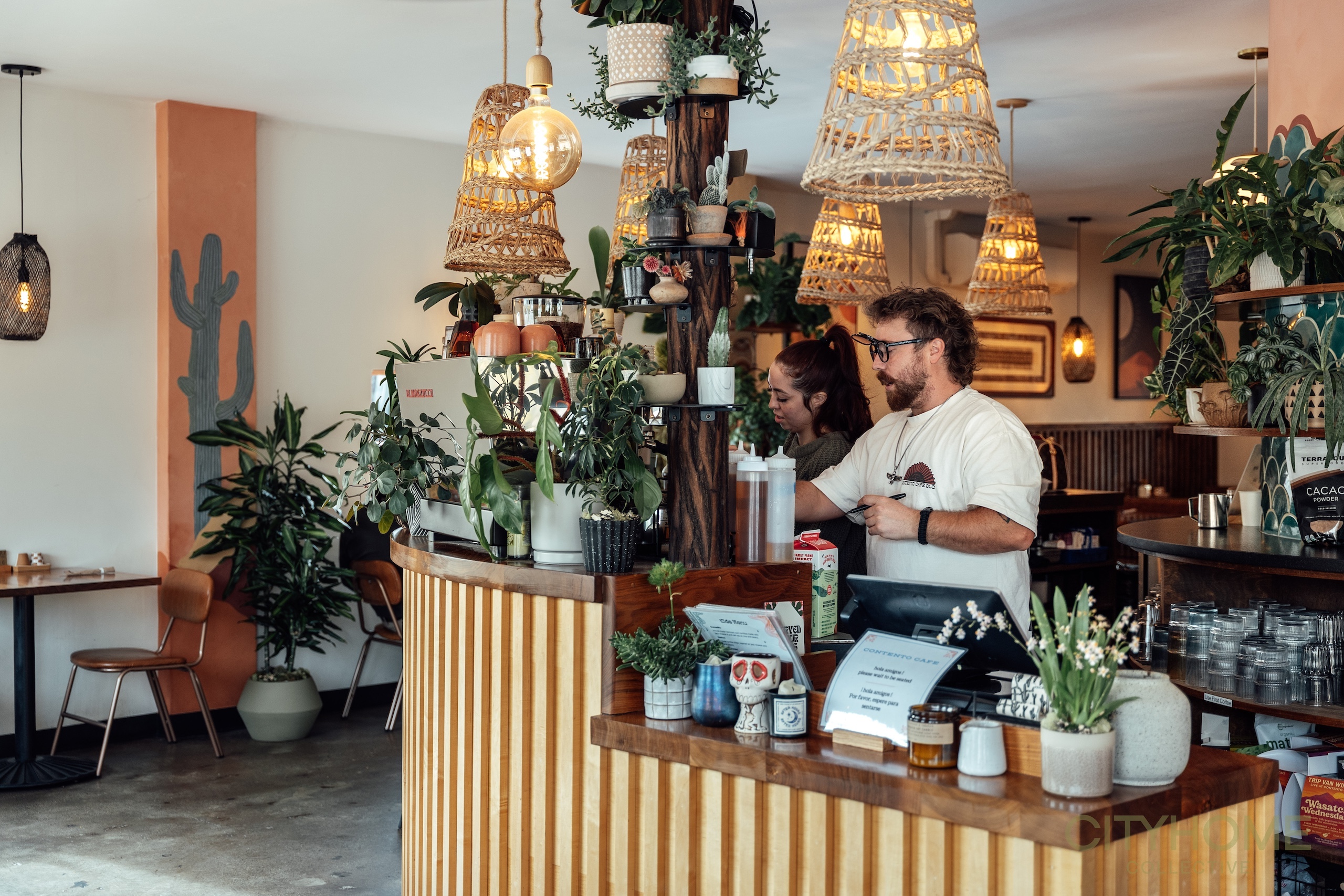 Loren and his team made certain to match the exquisiteness of the cuisine to the beauty of the restaurant's interior design. I can't decide on my favorite element: the limewash textured walls and hand painted murals are in close competition with the plant gallery adorning the espresso bar. From the lighting to the music, each design choice is thoughtfully implemented for an exceptional dining experience.