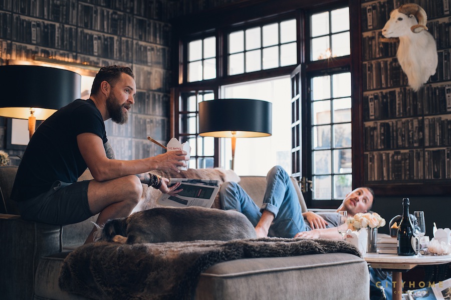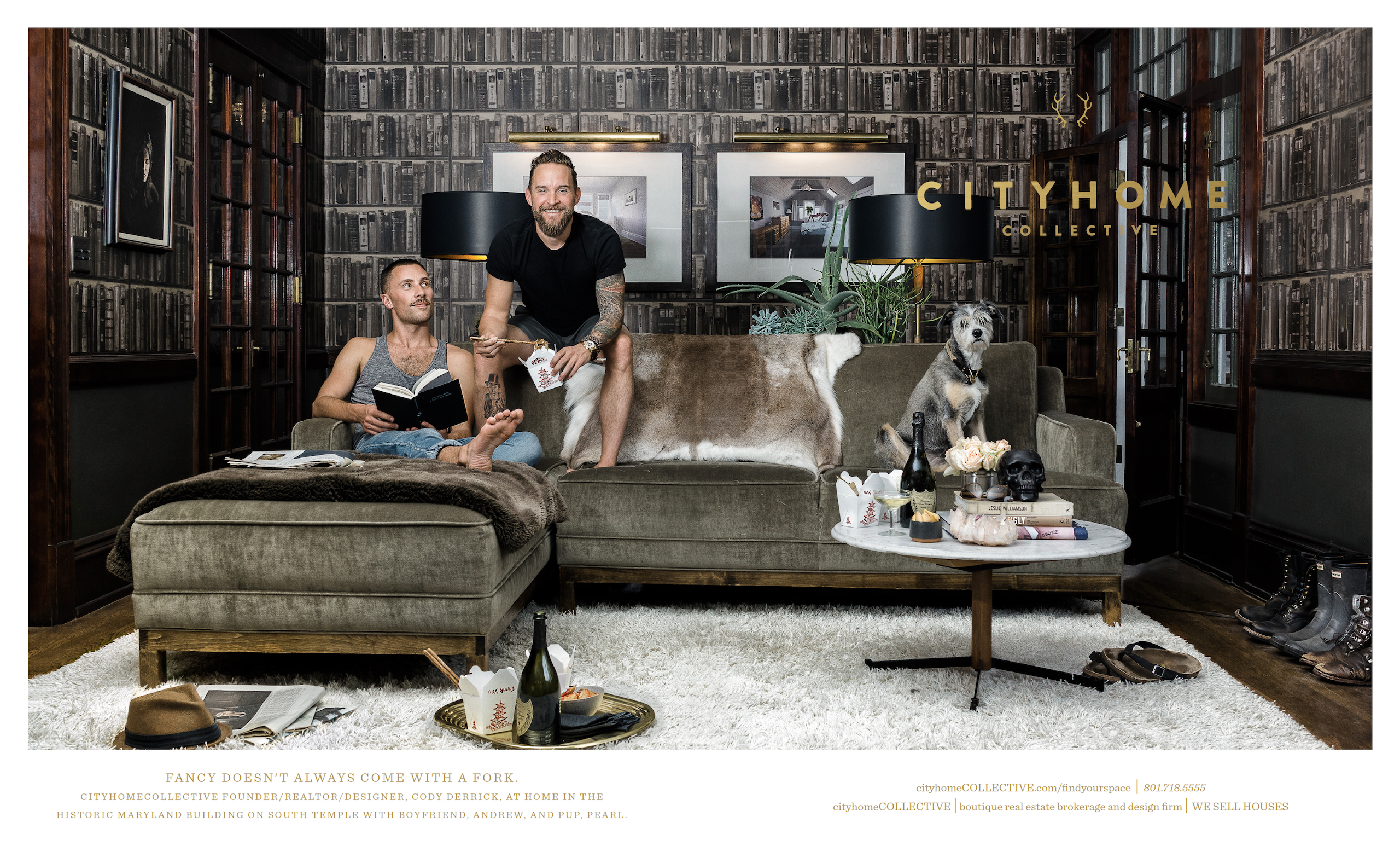 Naturally, Cody's space was a perfect match for our campaign dedicated to celebrating those that celebrate their space (and naturally, the meticulous monsieur wanted a hand in the art direction--even while he was in front of camera). George Oakley, our dedicated/talented/all-out-fantastic ad photographer, managed to snap a few shots of Cody, his mad-talented fella Andrew, and their pup Pearl noshing on some cheap Chinese and sipping some bubbly. Luckily, they're all absurdly photogenic, so the shoot was a relative breeze (gorgeous shots below captured by our very fave, Kerri Fukui). Keep an eye out for the upcoming summer issue of Utah Style & Design, where the delightful threesome will be sprawling two beautiful pages (if you simply can't wait, you can try to get your mitts on the Mother's Day edition of the Salt Lake Tribune or glimpse the wee preview at the bottom of the story). Some will always shake a disapproving head, but we think those happy mugs are simply a testament to having all the folks you love in whatever place you see fit to call home. It doesn't have to be fancy. It just has to be you, living an authentic and purposeful life. Find your people. Find yourself. Find your space. And make it unmistakably yours.