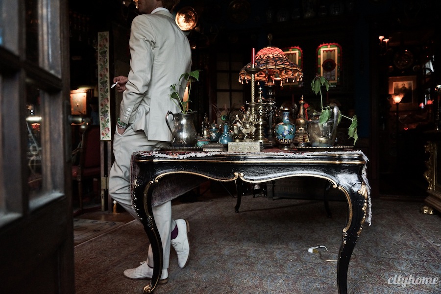 Though Marc Anthony has more travels under his belt than Gulliver, at heart, he’s a fellow pavement pounder for the city of salt. Post globetrotting, he’s found himself nestled snugly into the Maryland, and to that we raise a glass of bubbly. This is a man of many hats [and as many smoking jackets], and his eclectic casa looks equal parts Bond lair and cozy Dubai bazaar. To be perfectly frank, we’re absolutely enamored with each and every [incredibly symmetrical] square inch of it. Every perfectly-placed peculiarity has its reason, every room its "family" of porcelain or specified applied art, and every musical tapestry its rhythmic coupling of objects crafted in the same materials and spirit. For Marc, it's about the dance...a harmony throughout his home that's inspired as much by The Turkish Corner [a term used describe the Victorian practice of expressing their love for eclecticism and the exotic via a room/corner decorated with Eastern motifs] as it is by the courts of Louis XV in their use of Chinoiserie. Says he, "I have always loved the union between East and West as expressed in the arts--and find that the effect of combining the Yin Yang extremes creates an effect of sublime balance within me and my guests." Sigh. You know how we feel about an intentional space. And so we chose him for our ad campaign.