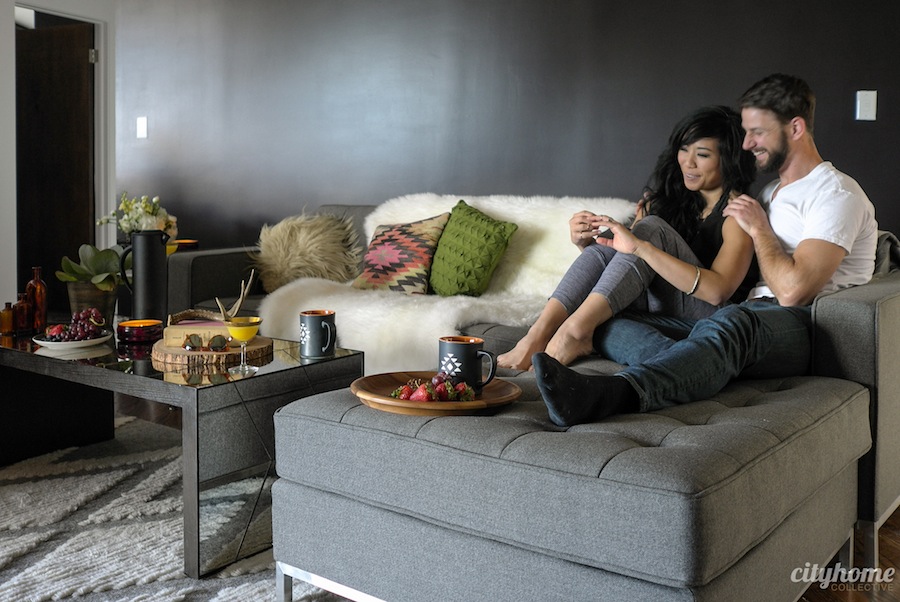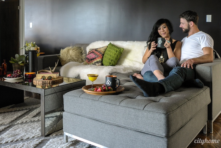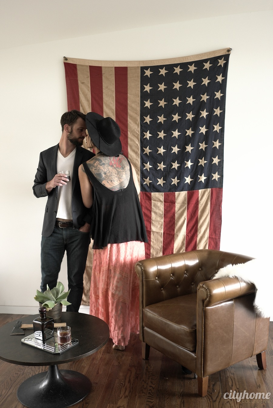 The tasty space you see in the photos below--and on the first few pages of Utah Style & Design's new July issue--is a work in progress and labor of love for these two. It always takes a touch of effort to make a home your own, and they're putting in the time to make it unequivocally theirs. The myriad [adorable] side tables have been sourced at flea markets and shops around the way, for example, and that fan-f*cking-tastic macramé wall piece was fashioned by none other than Nata herself. That sexy black wall, the 48-star flag ['Merica!], the lighting, the color palette...every last touch speaks to the pair living inside, which is precisely why we chose to feature them.