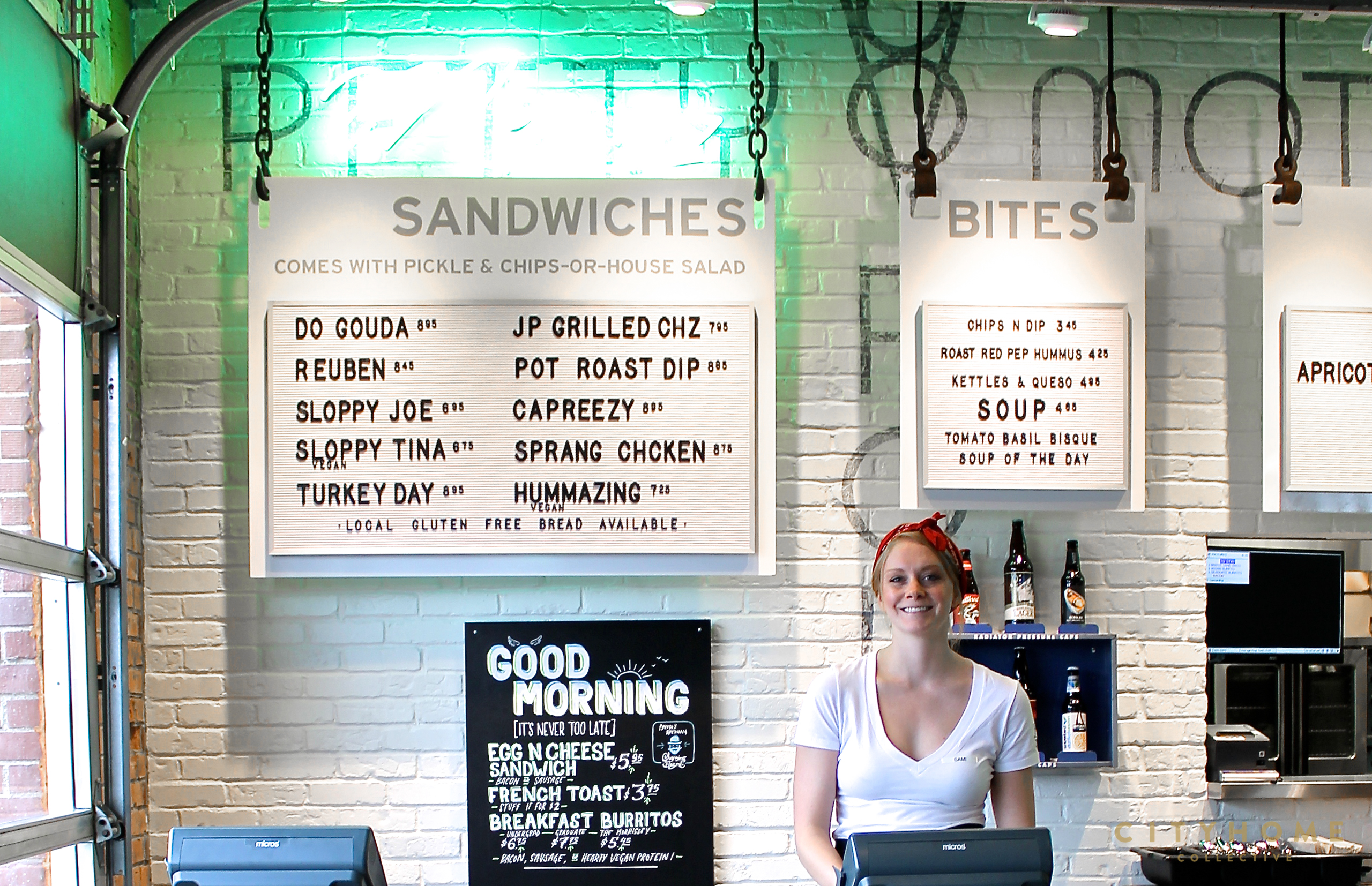 The second round of Even Stevens Sandwiches global expansion for good vibes recently moved into the heart of booming Sugar ‘hood, and we're pretty thrilled about it. Housed in the old Petty Ford Motor Company garage, snug on the northwest corner of 21st south and 9th east, the spot is all about white tile, exposed brick, shiny chrome, and funky reclaimed machine-shop details. We dig it. Our COLLECTIVE heart beats a little faster whenever fellow locals make an effort to preserve our city's rad structures in the name of historical respect [precisely why we adore the Utah Heritage Foundation so]. And those big rolling garage doors? Come spring, those babies are going up for some Sunday brunch or breezy evenings that will spill out onto the shop’s attached patio.