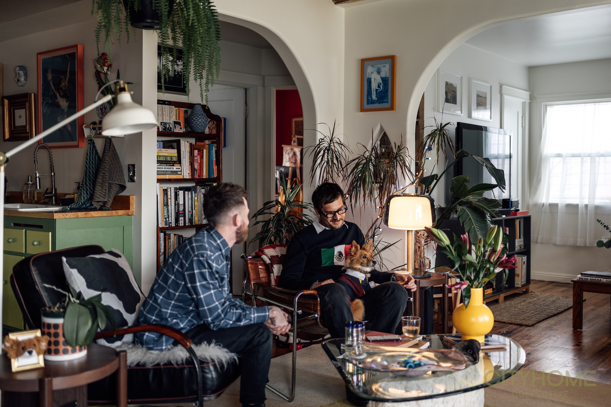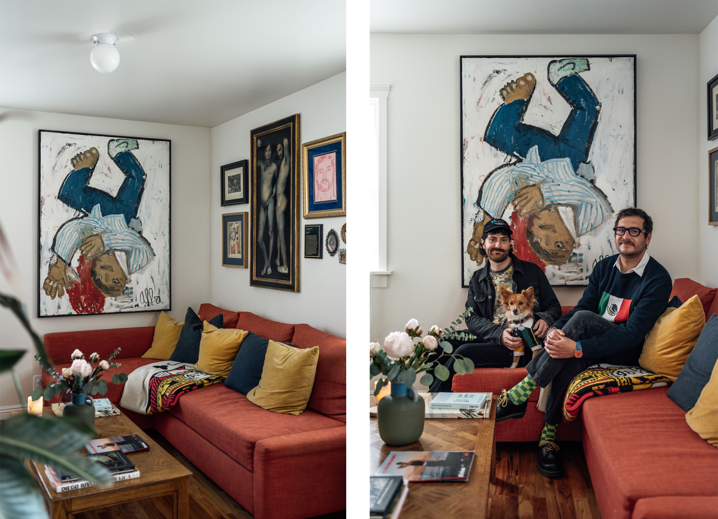Renato: Home, I don't know. The pandemic was hard because we were in so many different places. Nesting is really important to me, Andy will even tell you that. Right when we move in, first thing I do is go crazy, everything has to be up and everything has to have a place. I'm very Type A in that sense. It just needs to feel cozy. That's something that we've been able to achieve in every place we live, but this one feels the most special. Probably 'cause we have so much space to spread out. Also, as an immigrant, it's really hard because home is in two places. So it's like here and also in Mexico. Even though I've been here for over half my life, I just finally got comfortable with the idea of living here and being happy here. It took me a while and it was mostly just about getting comfortable with my life here, like my job. My life with Andy, we're going on five years. Diego (their adorable little dog), wherever Diego is, I am happy to be.