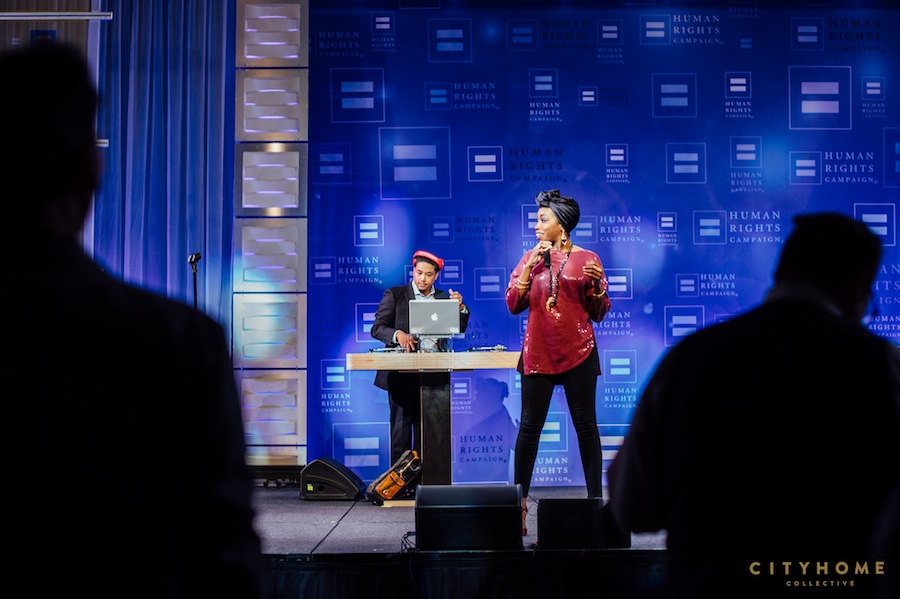The evening was one of bear hugs, cumberbunds, and tears both happy and sad. Yes, 2016 has been one of tragedy and triumph in the LGBT community. In recent weeks, it seems the light that HRC shines is needed now more than ever, and we were happy to slap on the livery in the name of spreading love, unity, and positivity. Always. The organization honored both Volunteers of America and Alex Cooper with well-deserved Equality Awards, and celebrity host Caroline Rhea emceed like the best of them. After plates were cleared and a slew of fantastic items were auctioned off and won, Grammy-award winning Estelle bewitched our ears and dancing feet with a few fabulous tunes. In all, we'd say the evening was a rousing success.