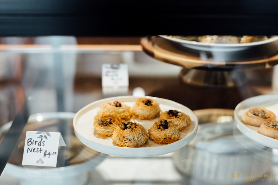 Have a seat with someone at a gorgeous, marble two-top…order at the counter for some grab-and-go…bring your book and cozy up in the Laziz nook with a cup of Arabic coffee.