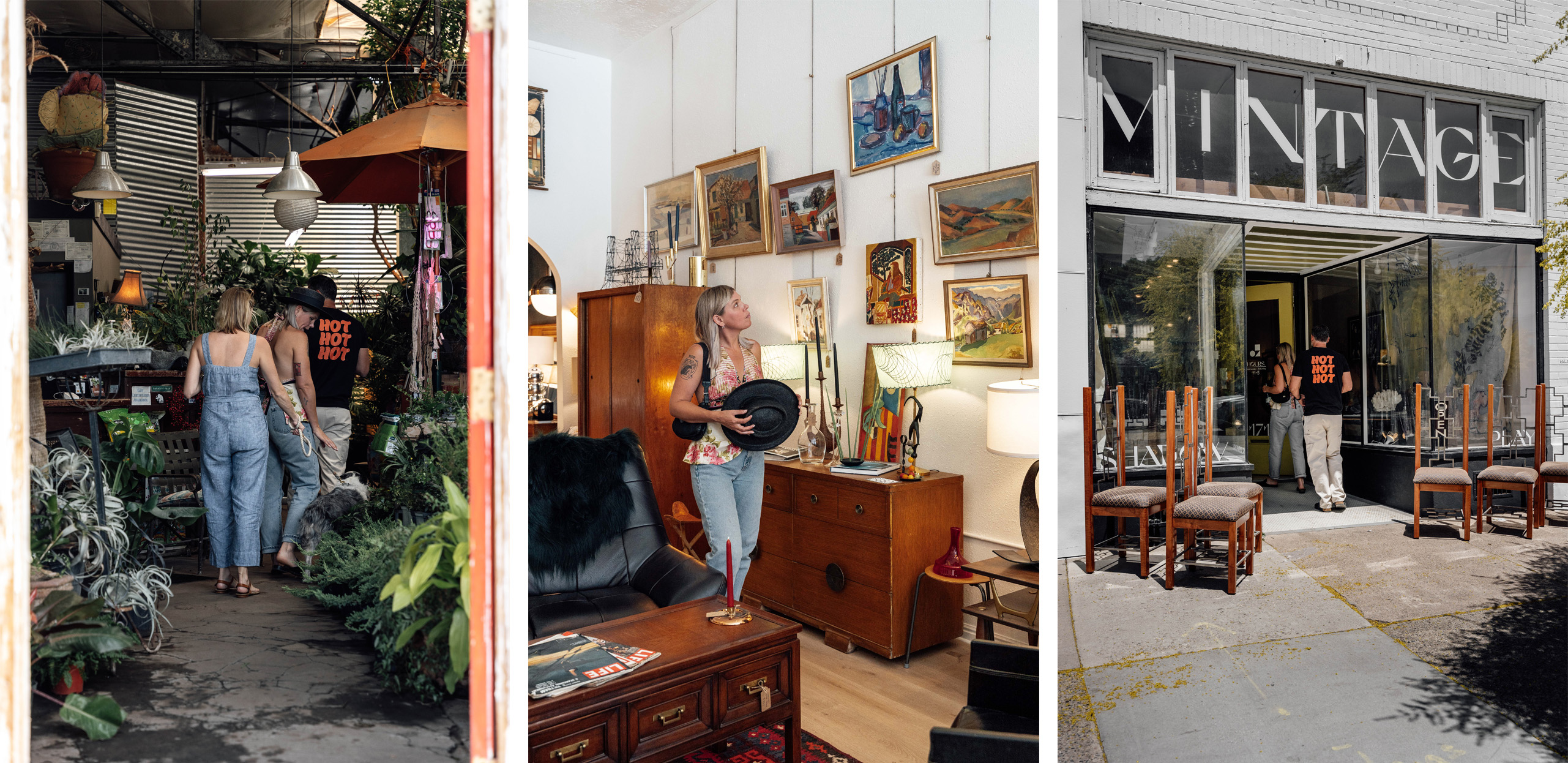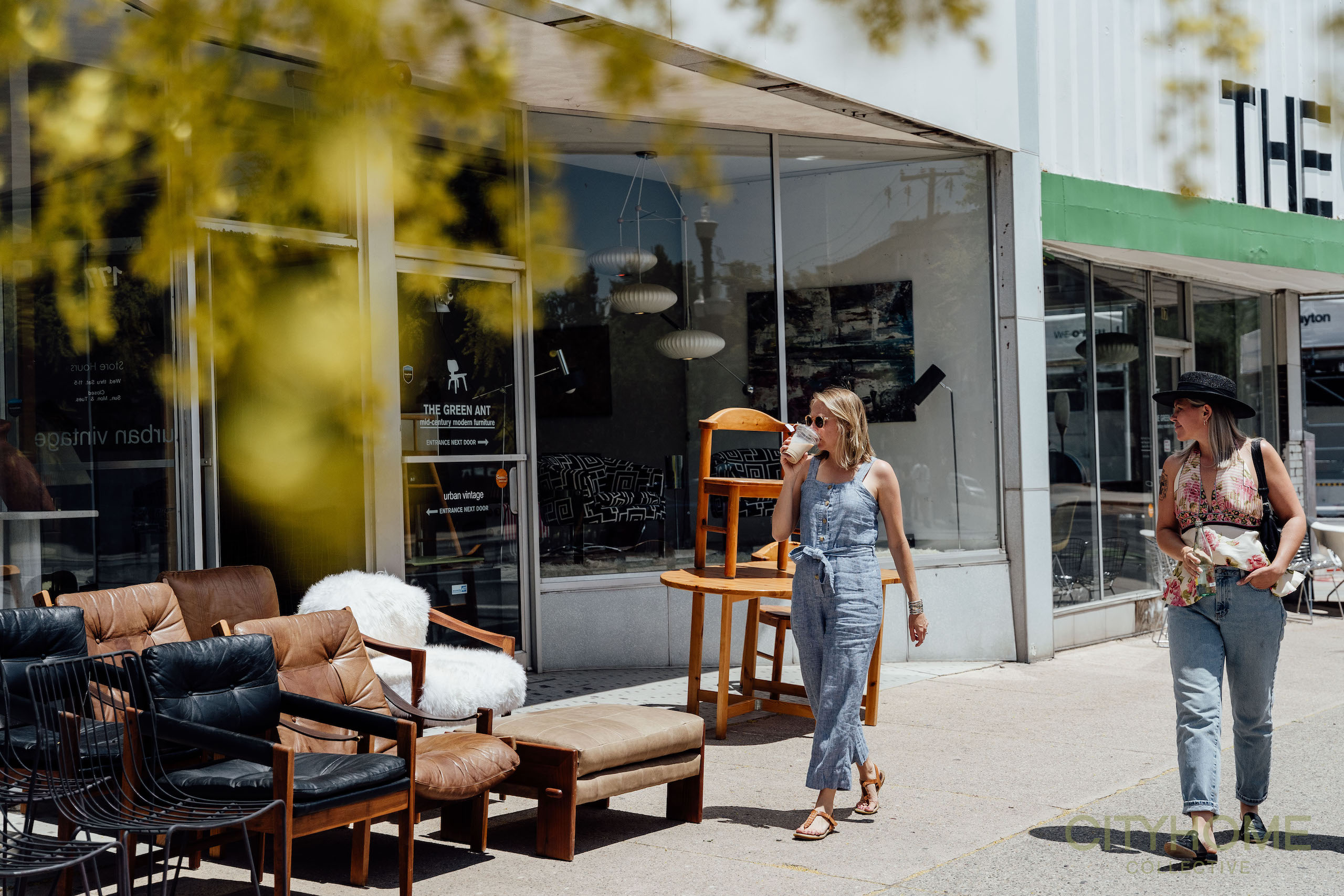 Starting with a lavender latte at Midway Coffee, we strolled the streets and visited friends at Paradise Palm to pick up some house plants before browsing our favorite vintage furniture shops on Broadway. As we meandered through and chatted with the owners of the Green Ant, Shadowplay, Urban Vintage and The Post, I found myself fantasizing about all the ways a buyer could creatively furnish the Sampson space with vintage pieces and artwork – sourced from just a few blocks away.