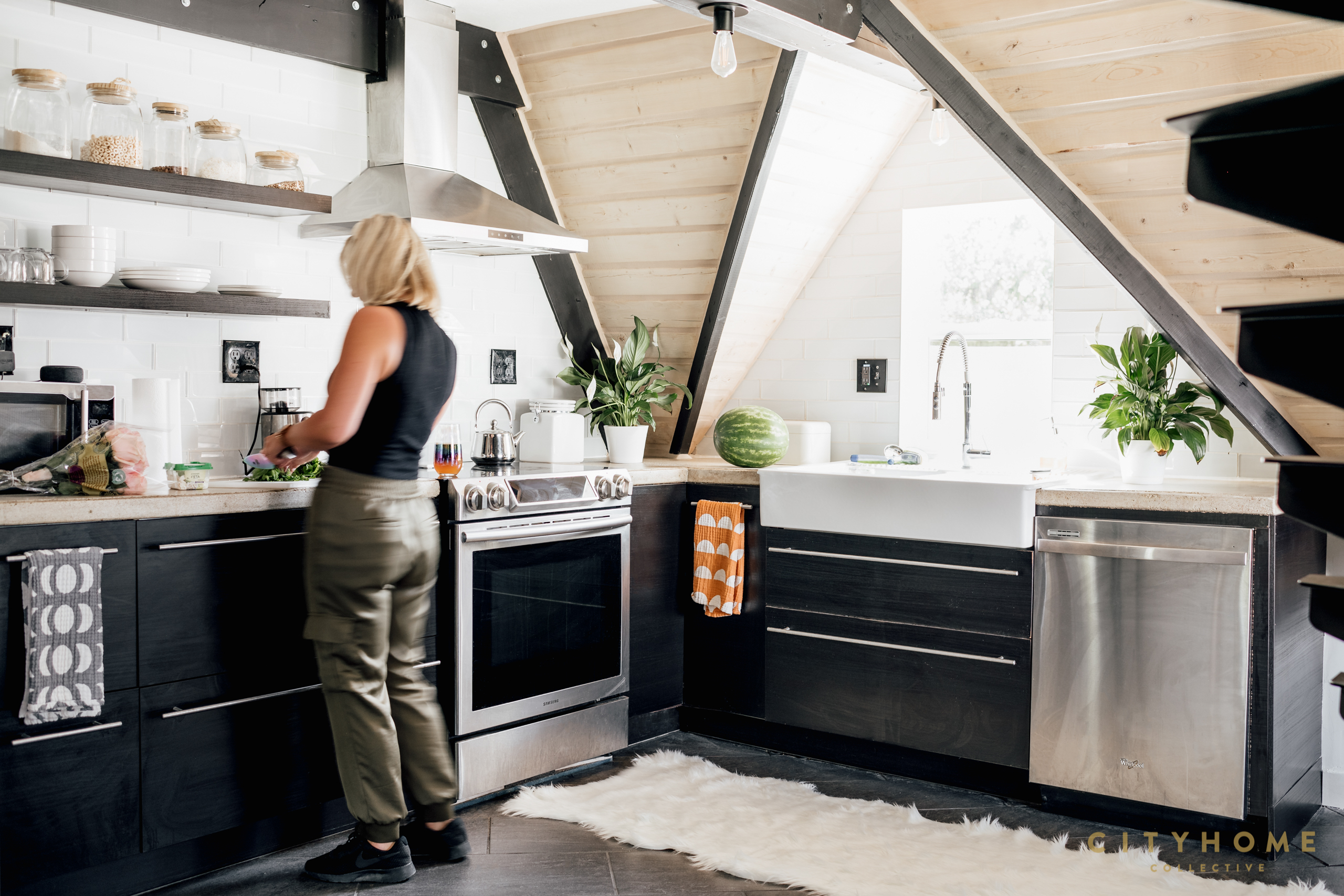 The pair (AKA, Scout Designs, who specialize in home decor) has done an excellent job of both celebrating the traditional A-frame’s design while also breathing into it a fresh, modern vibe (clean lines and contemporary finishes ensure that this space feels lightyears beyond your sleep-away camp cabin of yore.) As always, it’s a delight to take a peek inside the homes of those who’ve taken the steps to create a space that suits them and the lives they hope to lead, and—with paddleboarding, hiking, and mountain biking all right outside this casa’s front door—we think it’s safe to say that these two are living the good life, indeed.