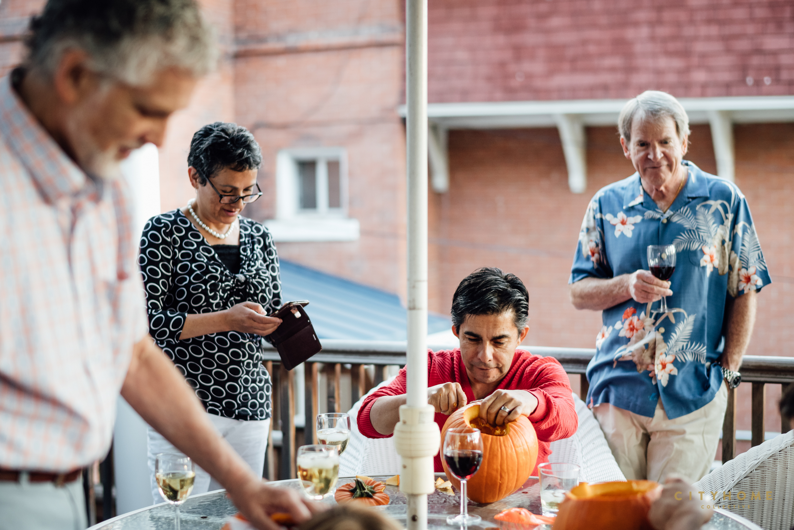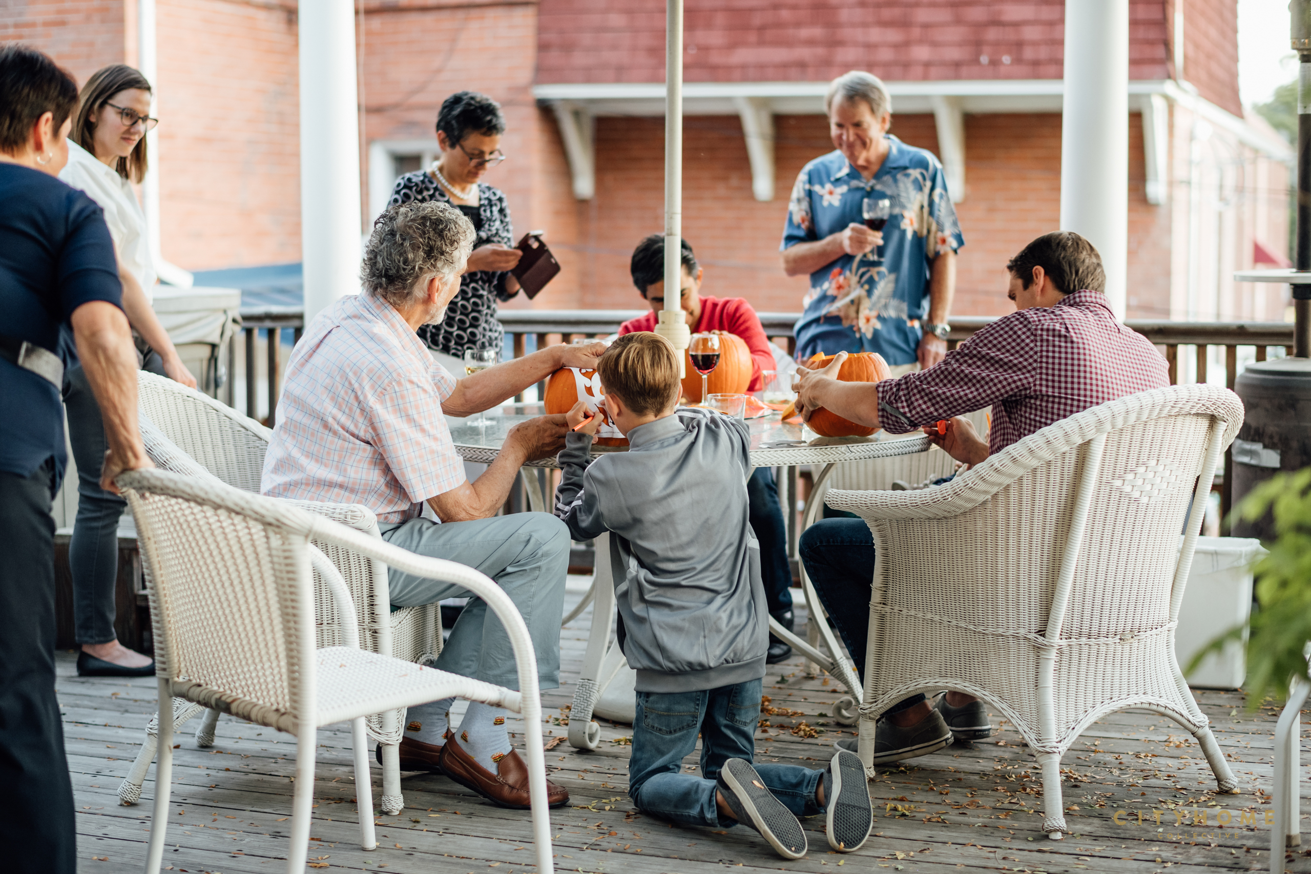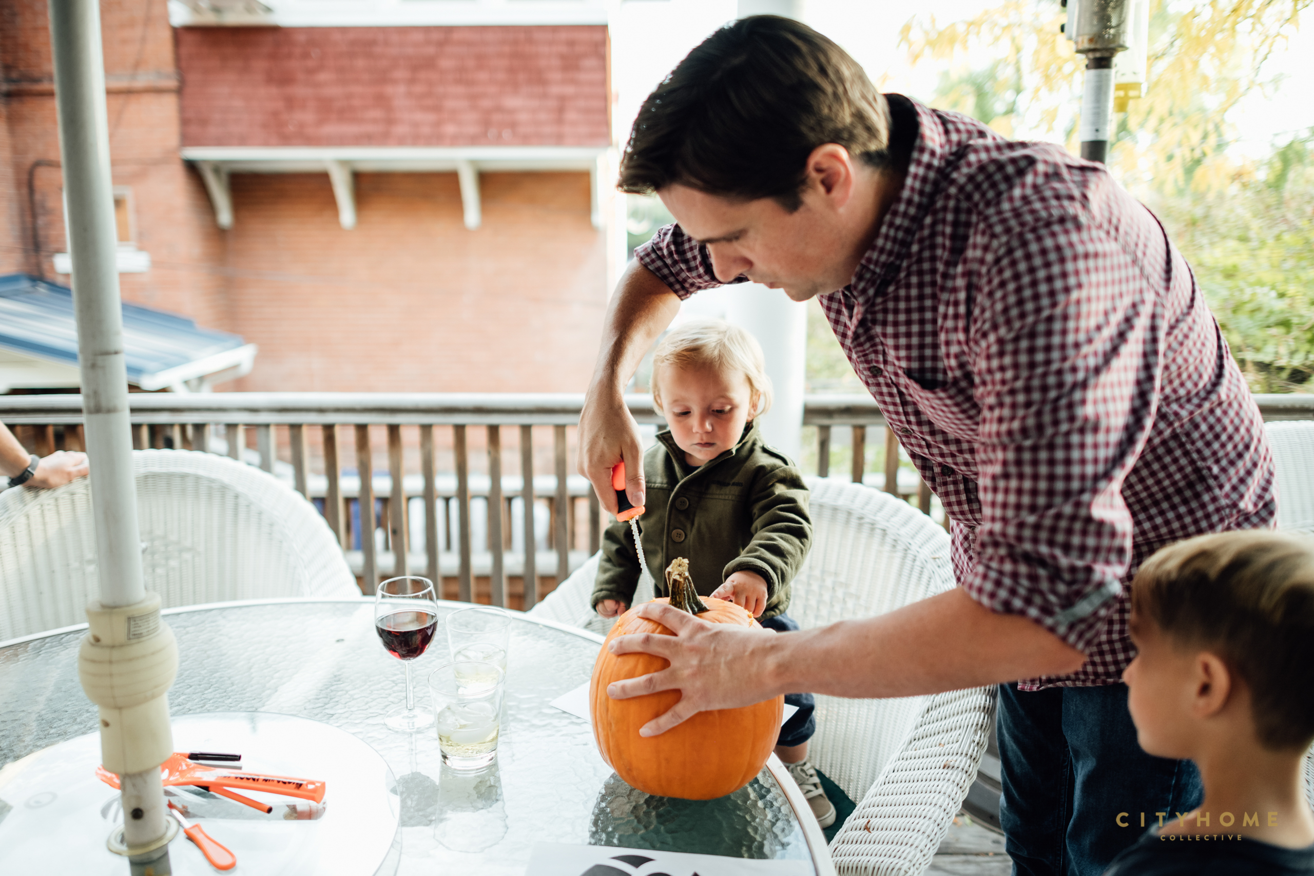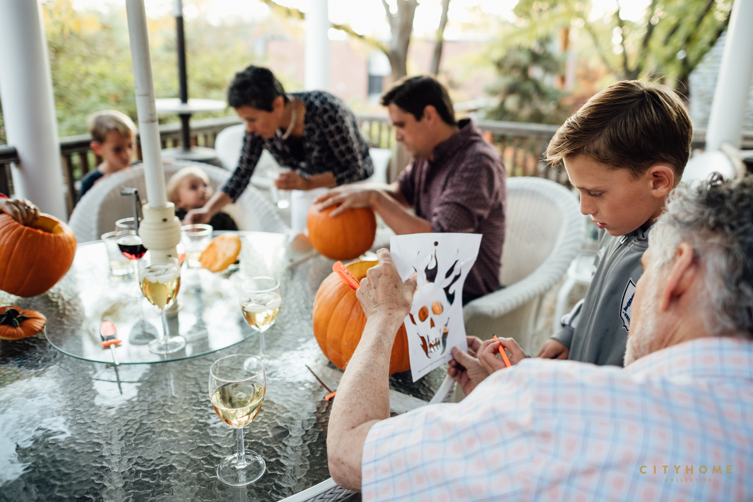 This home has the perfect entertaining spaces (see: backyard deck with ideal gourd-carving station and a chef’s kitchen that makes catching up with old friends over wine and cheese an absolute breeze). And, although this home does boast a few extra apartments above and below, the main level takes center stage; there's plenty of space and light for the gathering of family and friends, alike. In short: it was a picturesque spot to spend an autumnal eve.