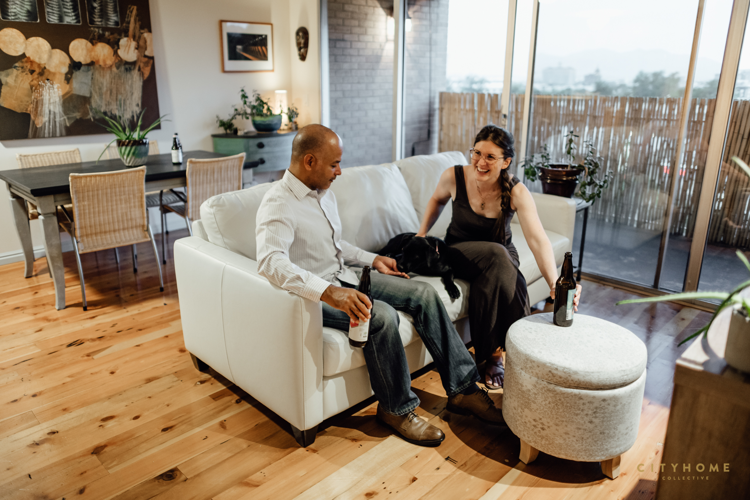 As was so wonderfully demonstrated when we stopped by to visit this spot’s current inhabitants, evenings on the unit’s balcony overlooking the city skyline are nearly unbeatable.