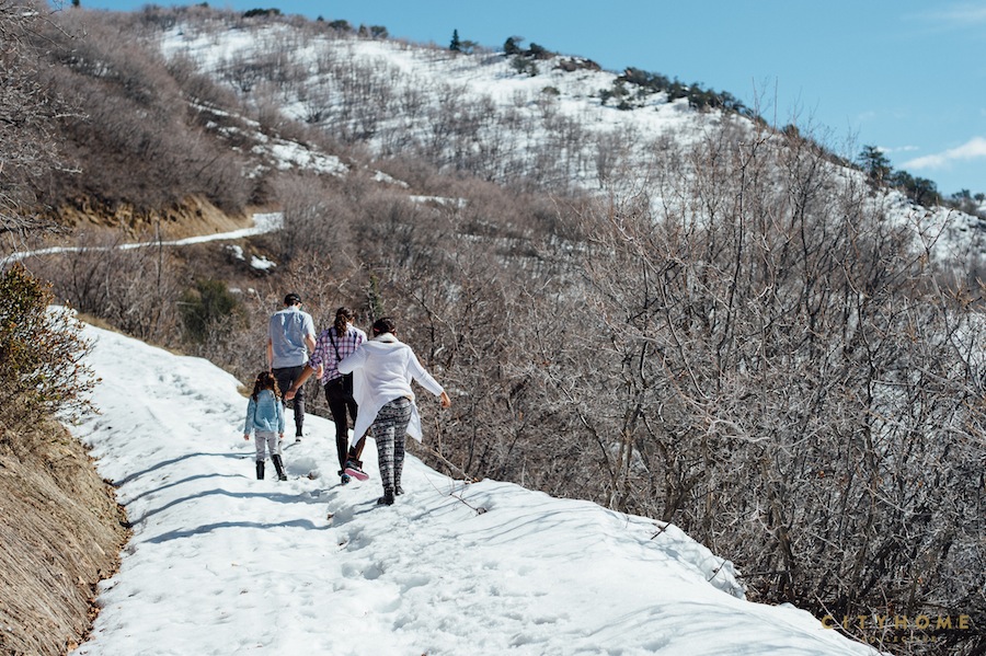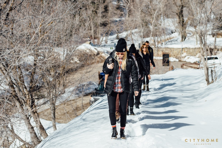 To reach the strikingly-modern canyon home, our crew embarked on a snowy hike. In the summer, the private road is easily driveable, but come snowy months, one is forced to park at the bottom and walk to the top (and, given those vistas, “force” is a term used very loosely, here). “I couldn’t help thinking about how great it would be to have that walk home after a long day of work–to have that meditation time. How incredible to be able to park, pause, walk up, and arrive home refreshed,” says listing agent, Cody Derrick. The current owners lived here for many-a happy year–and even hauled a baby up and down these slopes–all in the name of peace, quiet, and a fall-to-your-knees kind of view. “Being there in the winter, it hit home how beautiful a life it would be, if someone was bold enough to take it,” adds Cody. Our invitation to you: come and get it.