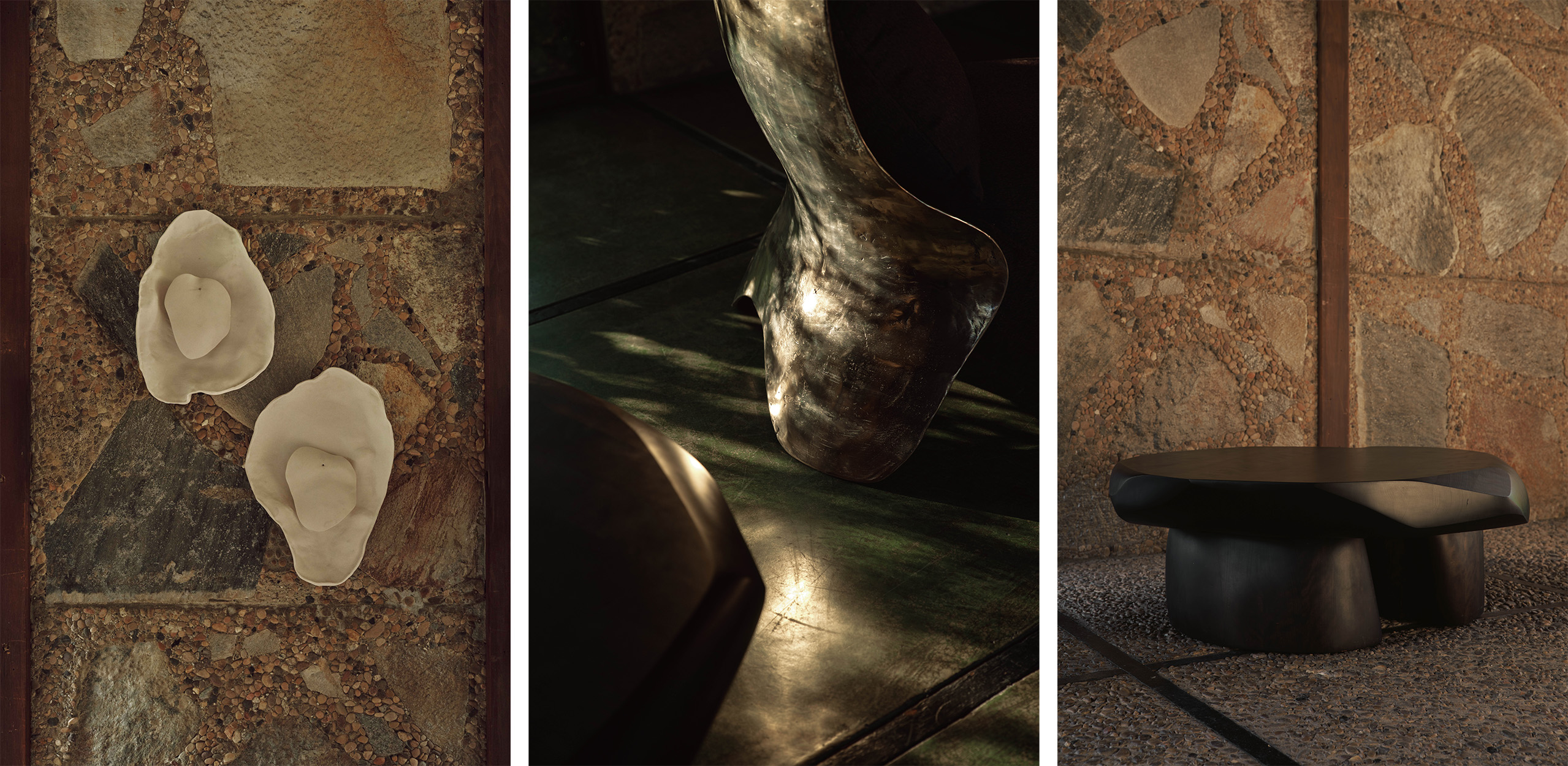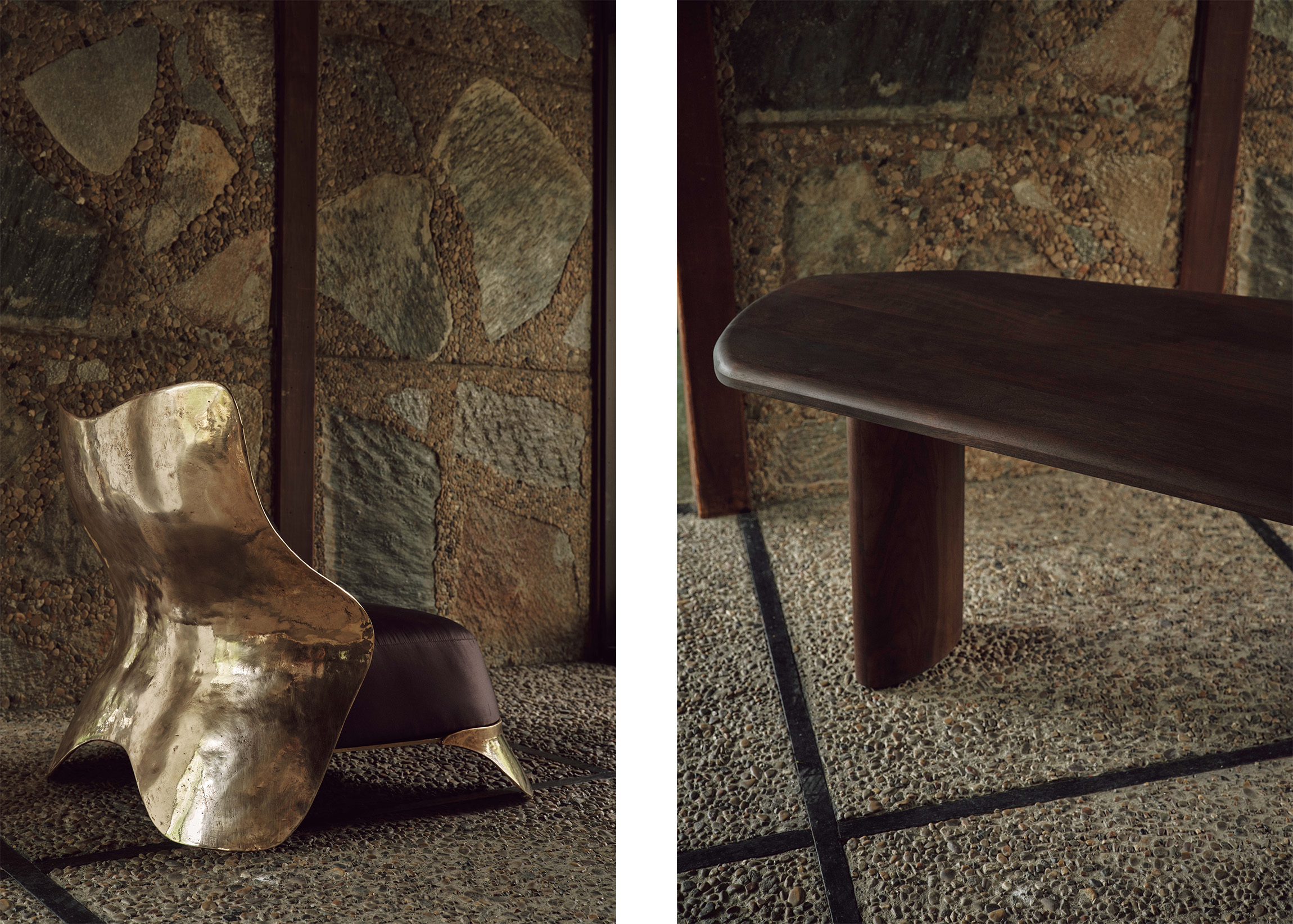 Some of my earliest sensory memories come from my grandmother’s home, touching materials, seeing art, feeling the atmosphere of spaces. That experience shaped how I think about interiors and objects today. Landscape is also a major influence. The American West, deserts, ancient architecture, geological formations.