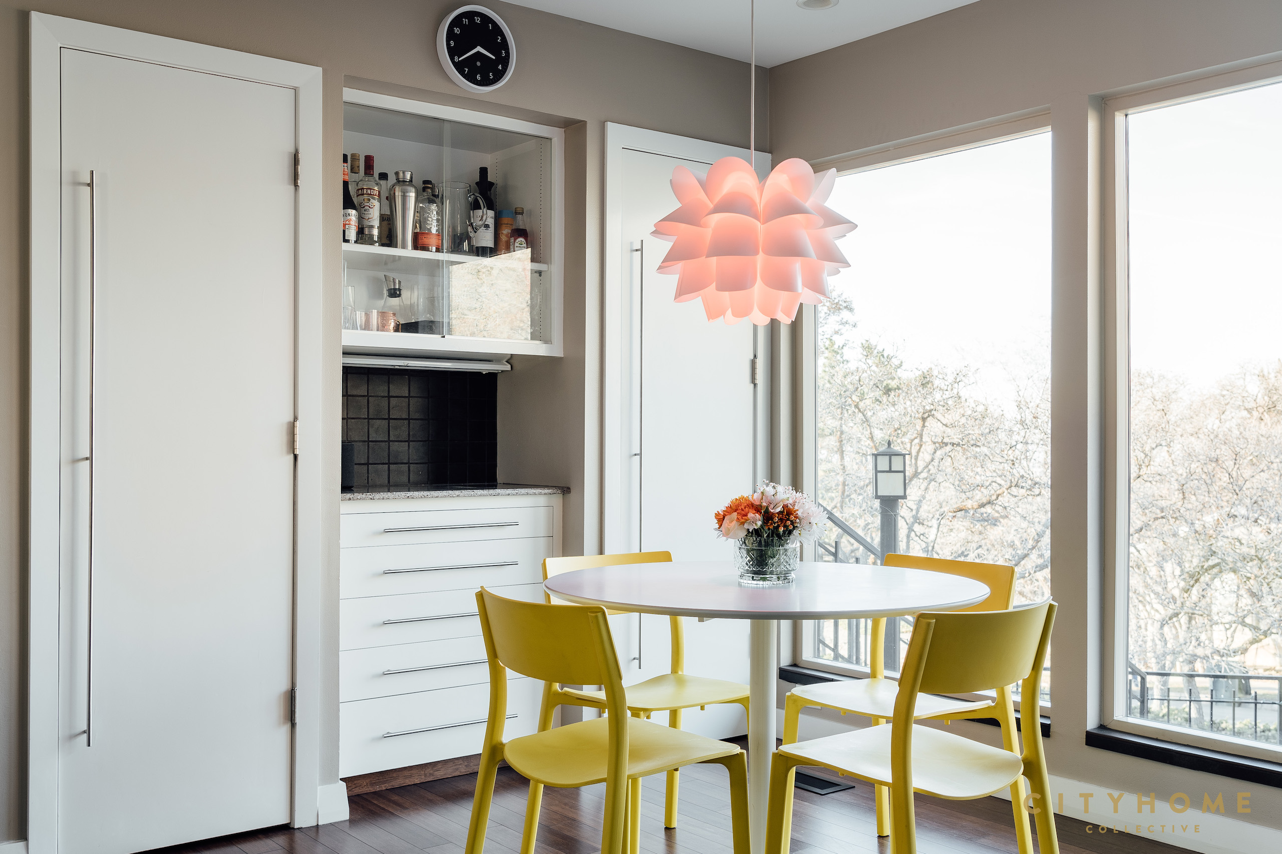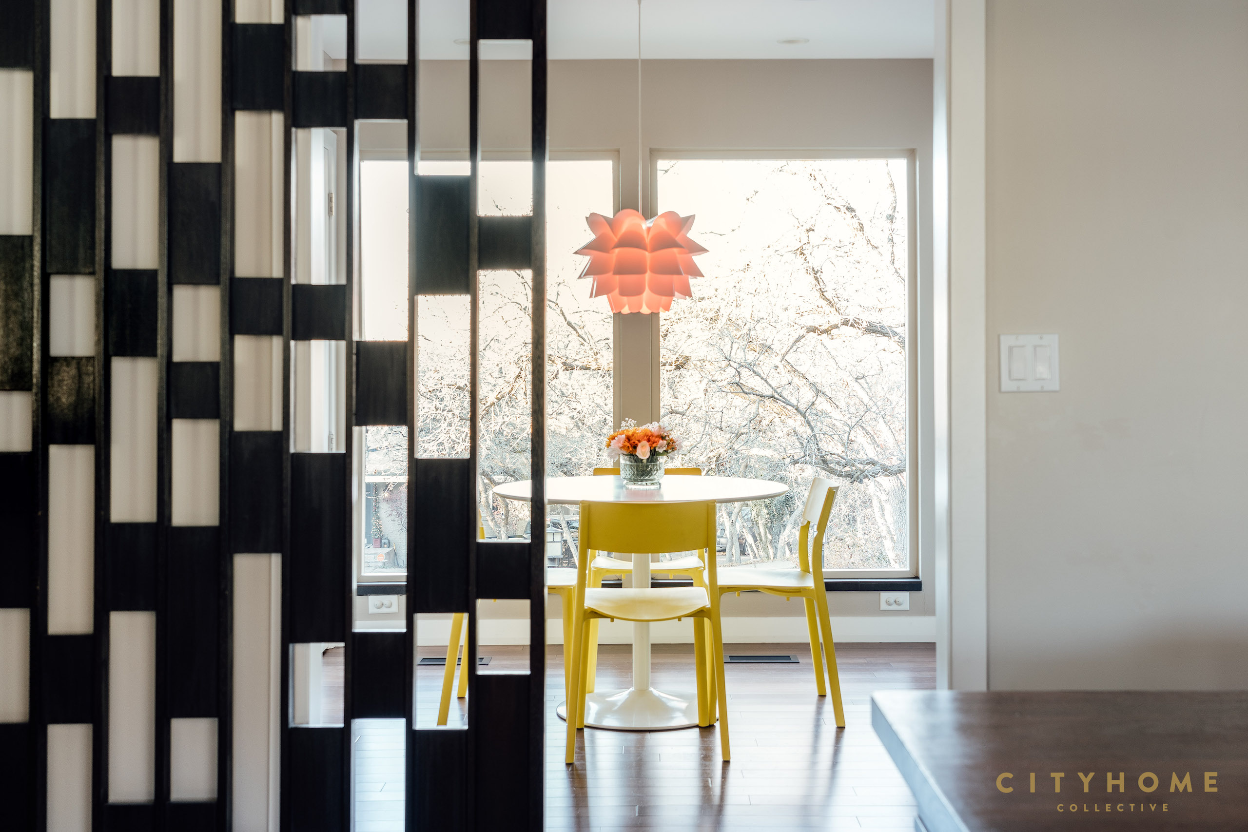 The screen partitions were relocated from living room to dining room-- a great repurpose of a very cool detail.