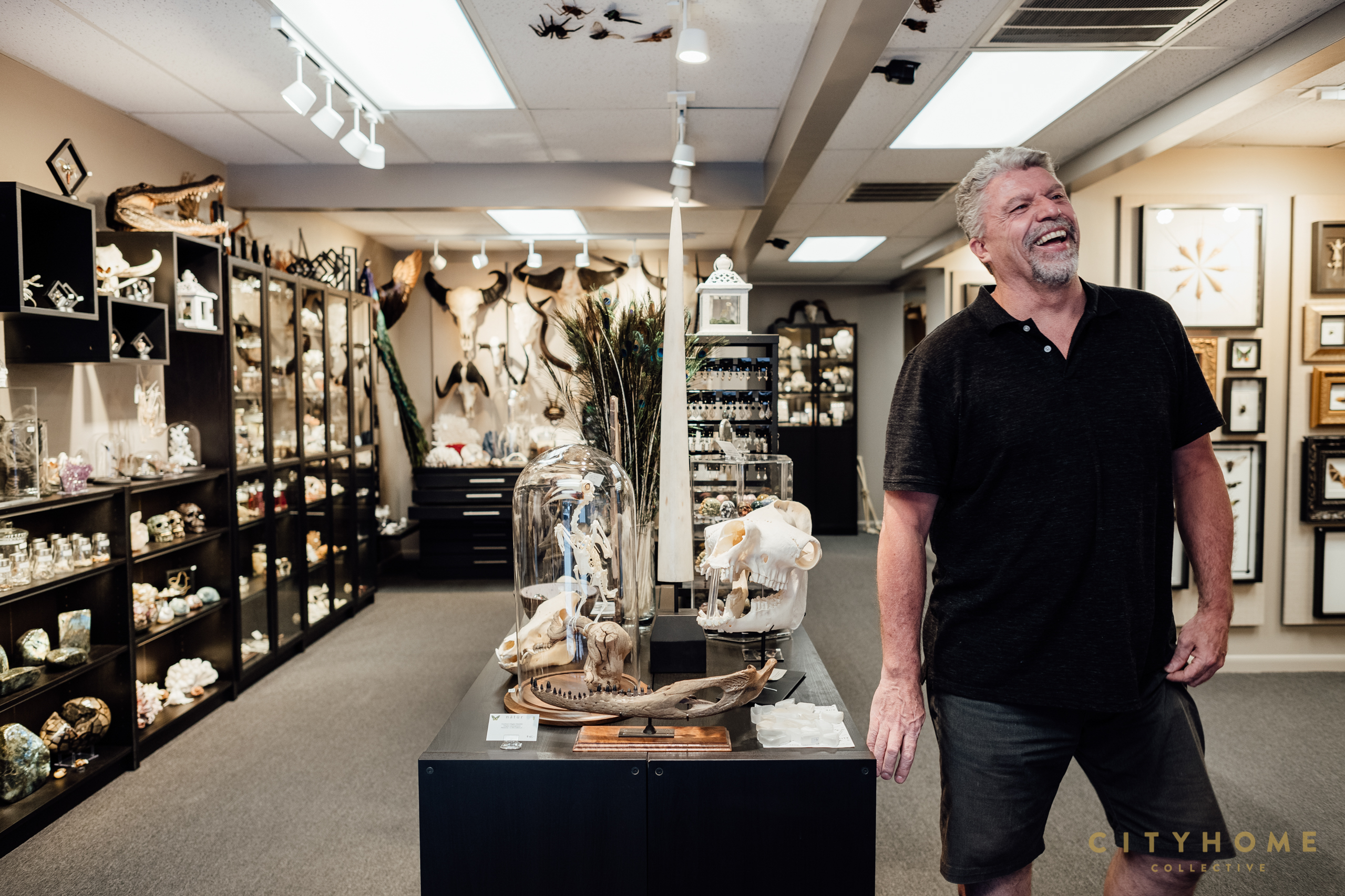 For Jean-Michelle, nature has always been alluring in its complexity. His passion started with insects—beetles, specifically—and throughout the years has expanded to encompass all corners of the natural world. Yet, it was not until the pair decided to move on from their longstanding custom furniture business that Jean-Michelle was able to bring his passion for pinning bugs and collecting specimens to the masses. Despite Clara’s initial skepticism about opening a small store that sold framed insects, nātür opened in May of 2013, and, much like the species in which it specializes, has substantially evolved since. Shortly after opening, Jean-Michelle decided that nātür should encompass the entirety of the natural world and, consequently, the store’s product line has since expanded beyond just insects to include a large variety of skulls, skeletons, minerals, wet specimens, fossils, sea life, and jewelry.
