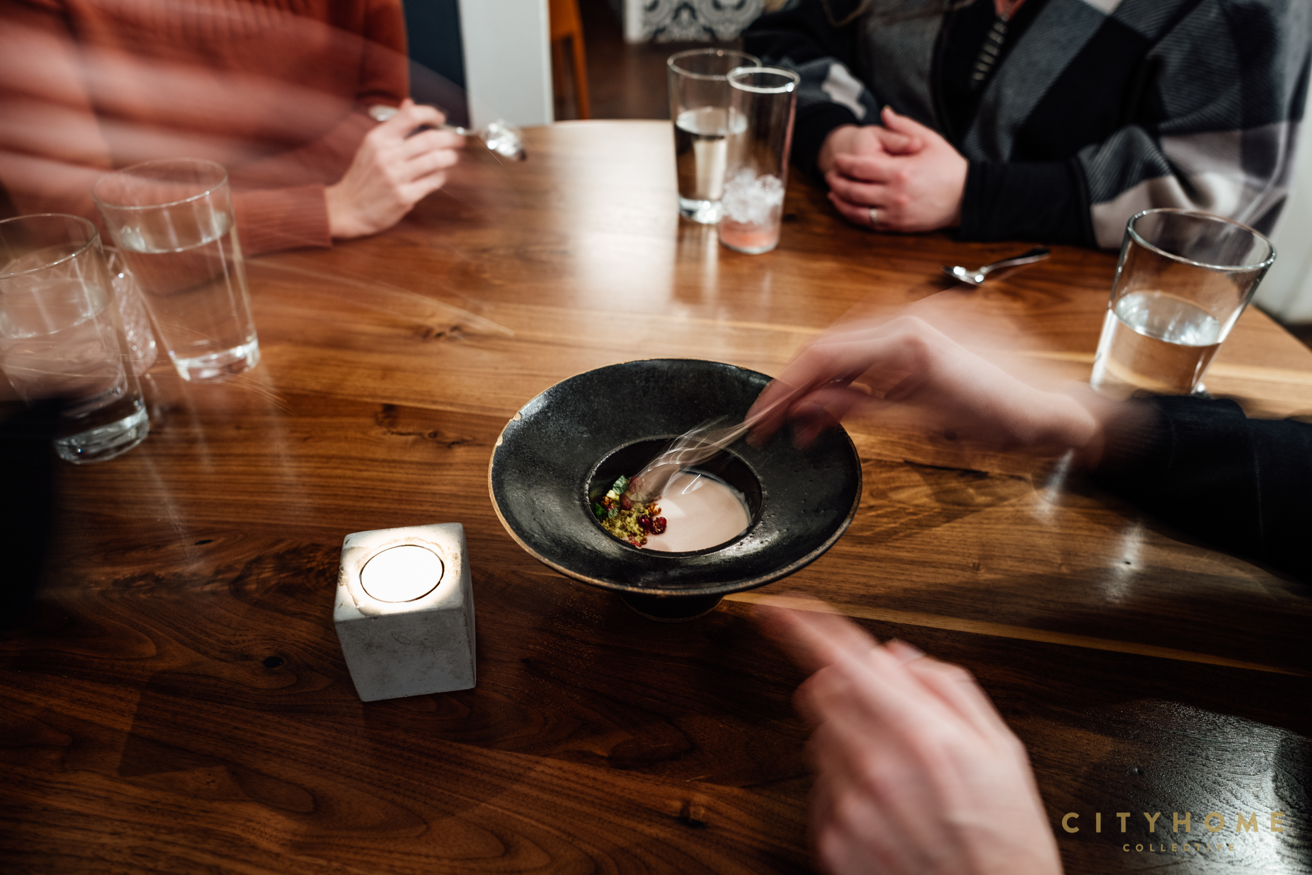 Chef Drew confidently commands a small but mighty-talented kitchen crew, and, when a chef with this legend-level care for veggies is at the helm, we make it a point to order selections like griddled hearty greens, kale and rye risotto, and milk-braised potatoes (served table-side with a warm whey vinaigrette pour-over—if you feel the way we do about these, you’ll probably end up ordering two). The menu changes with the seasons, but we hope Oquirrh never, ever does away with the comforting confit chicken pot pie, and the same goes for any iteration of their house-made pasta (in particular the butter-poached lobster in delicate celery sauce). And though the dishes served here are consistent with some of the best fine dining in the region, neither the preparation nor presentation are fussy here.