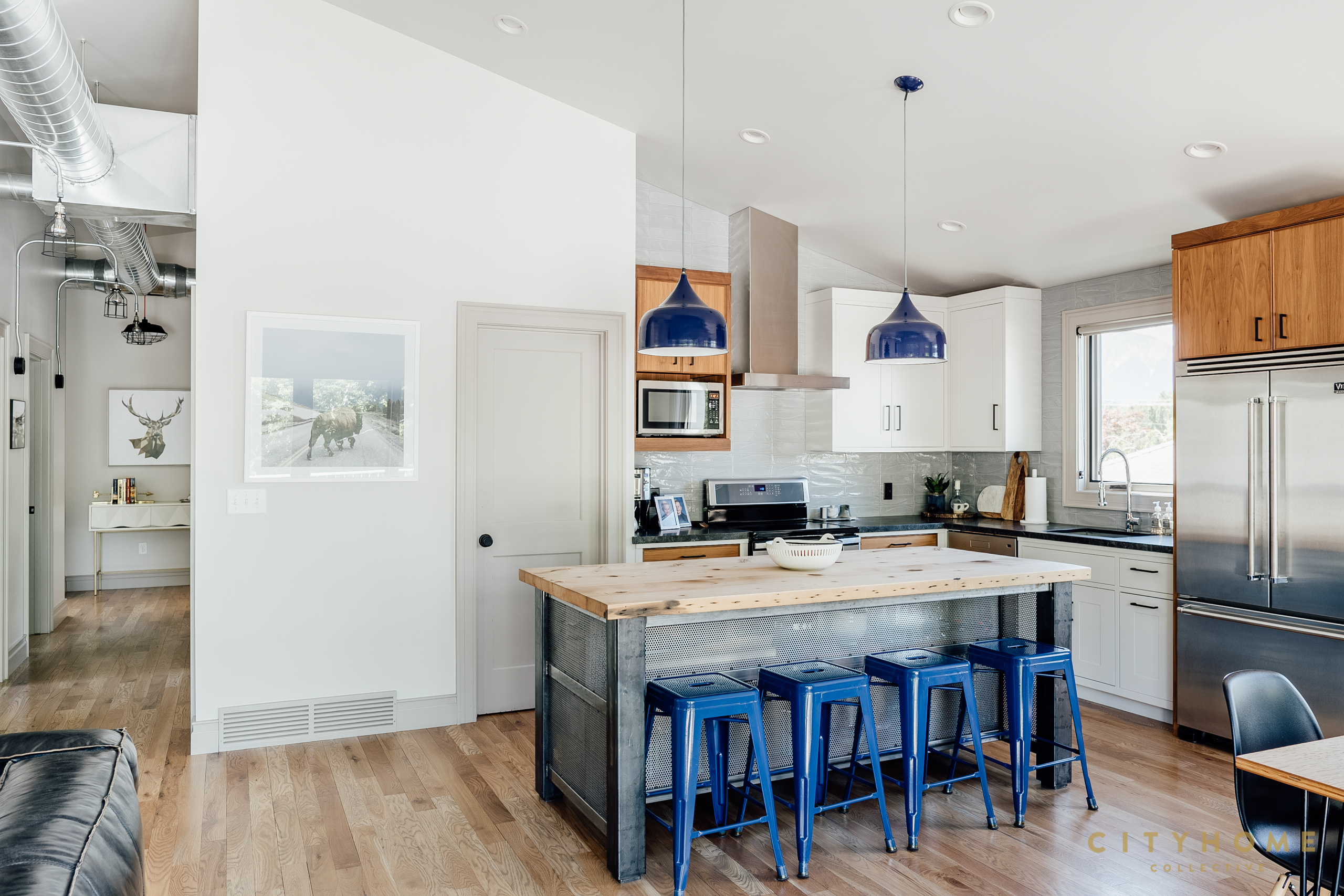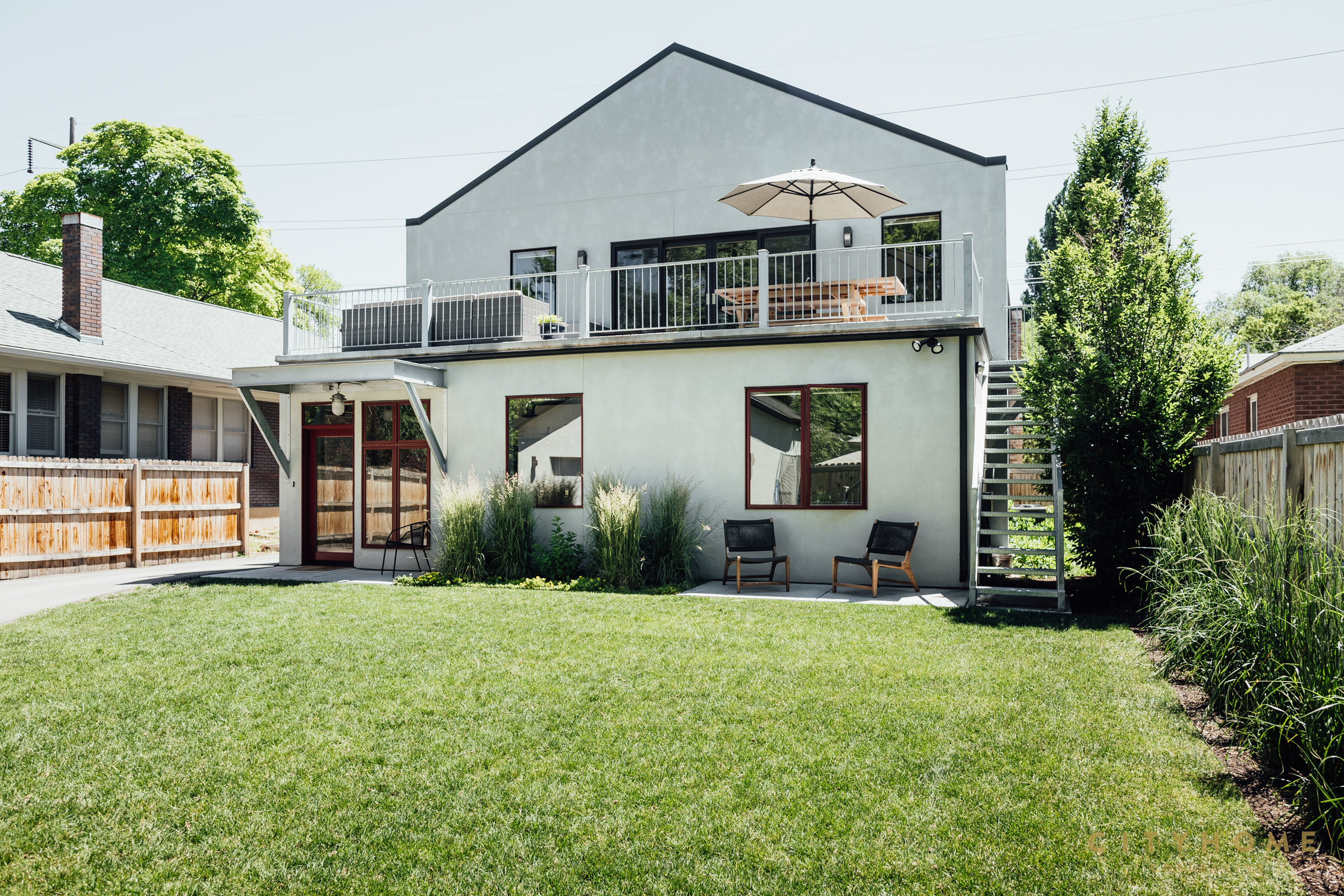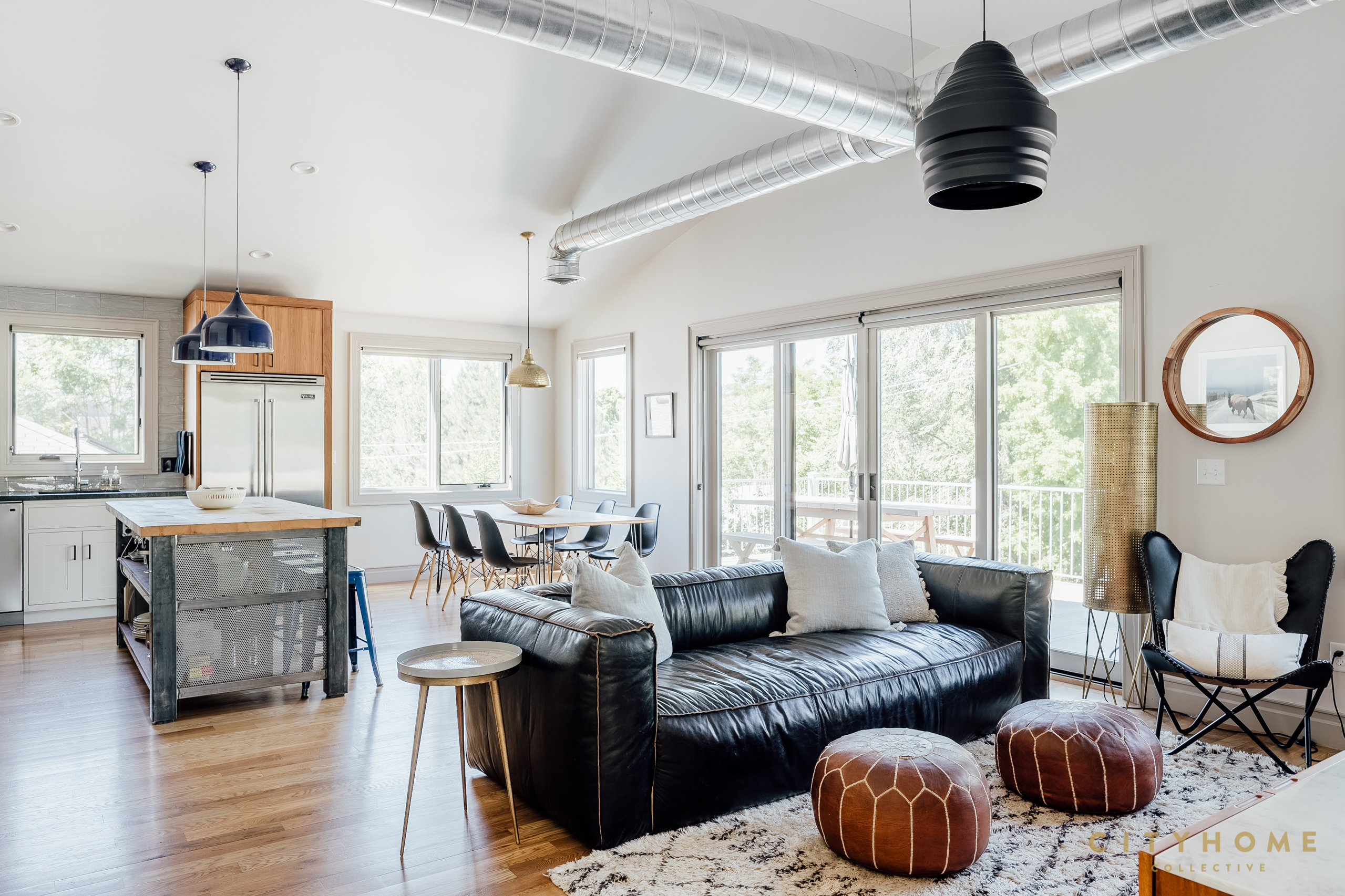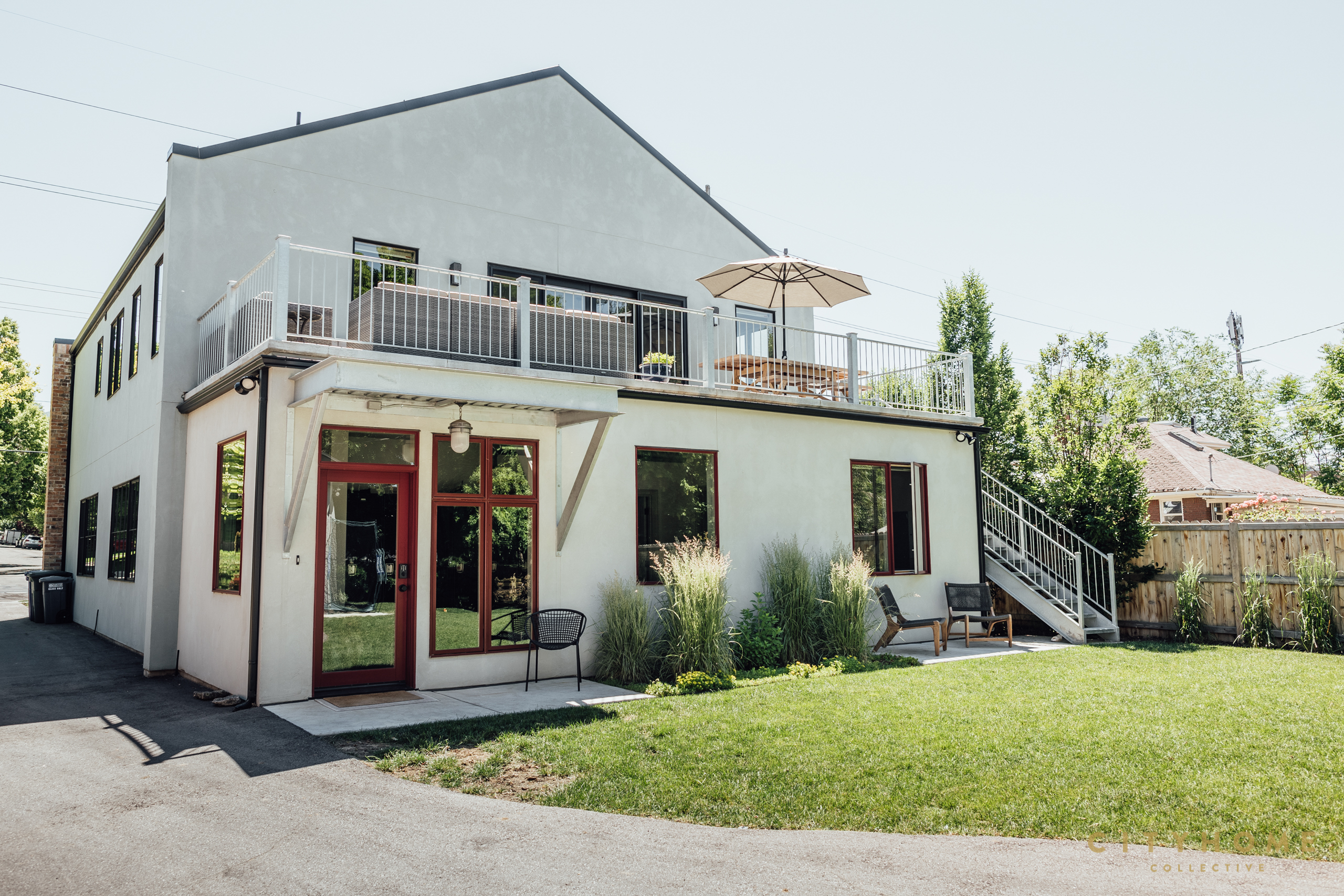 In true live/work fashion, the front door opens to an office space used by John and his employees which comprises the majority of the ground floor. Towards the rear of the house is a separate entrance with a set of stairs to the family’s living areas on the second floor. And, despite, clocking in at around just 1600 square feet, the upper-level spaces have been carefully worked as to feel perfectly abundant. A couple of minor adjustments to the open kitchen, living, and dining area, for instance, and suddenly there’s enough room to seat a whole host of relatives over Thanksgiving. Other well-thought-out choices like the sizable—and altogether sublime—back deck and the lofty main suite closet also speak to the scrupulousness with which every inch of the home was designed. And, while the second story is more than sufficient for the family, after downstairs business dealings wrap for the day, that space becomes fair game. During hours of operation, the office’s custom conference/ping pong table hybrid, foosball table, and sprawling sectional promote laid back workplace vibes, but also can, and often do, become the main attractions of a well-equipped rec room. In fact, the layout of the home was so meticulously whipped up it even offers a contingency plan should the family wish to relocate without fully letting go of the spot. More specifically, a couple of easy tweaks are enough to transform these digs into two separate—and highly rentable—apartments.