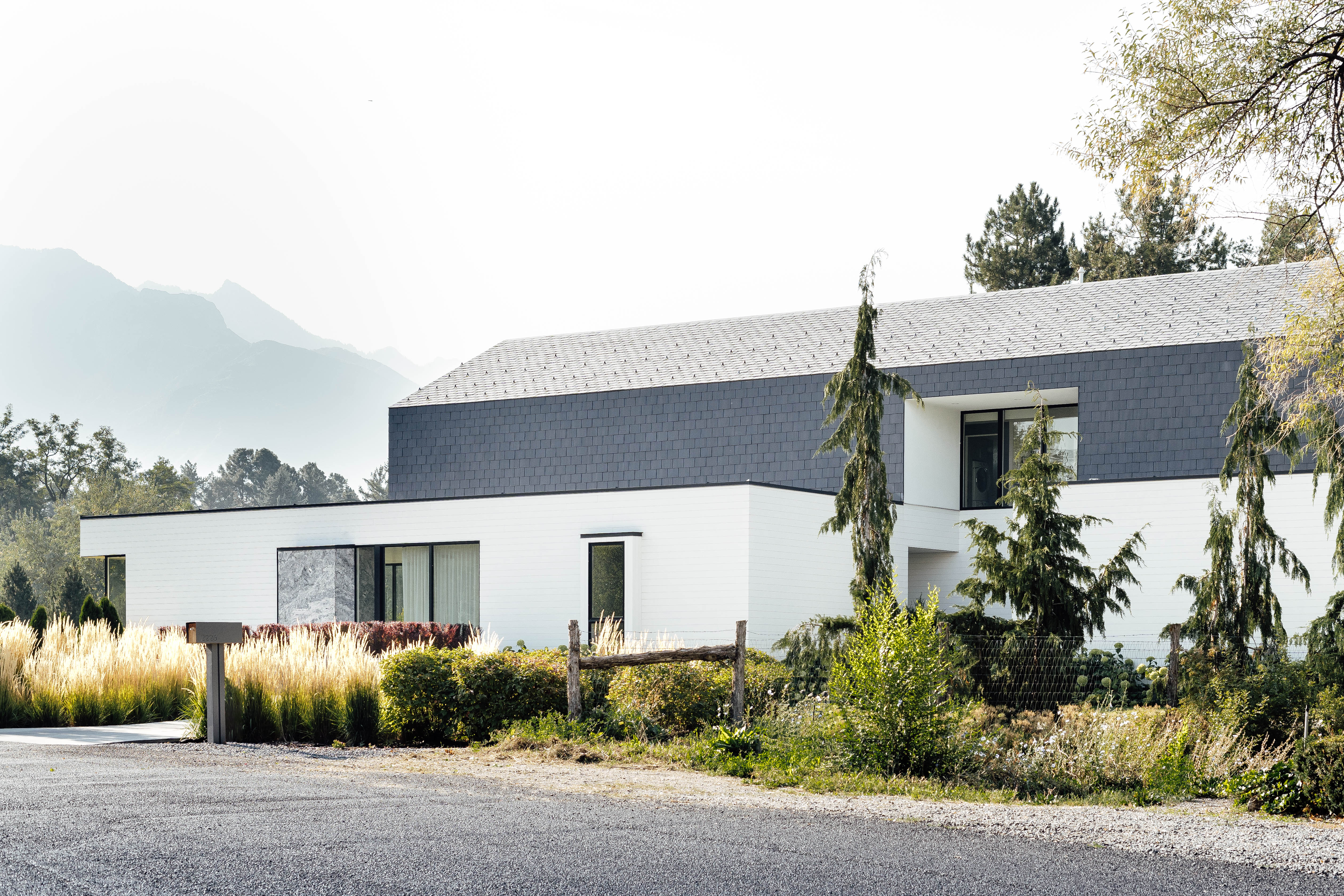 NM: I'm from New York City and had lived in apartments my whole life, and so we were looking for land to build a home. This plot was the last bit of a family farm smack in the middle of Holladay. The first time we saw it, there were horses grazing. And with Mount Olympus right above, we knew this was the spot. The structure of the home is technically a modern farmhouse, but it is actually two masses that are levered. The bottom mass is white, and it is the public space. The top mass is grey, like granite, and it contains the private spaces upstairs. Anne and John were particularly excited to wrap the whole top mass in slate, instead of just the roof, so it looks like a single wrapped mass.