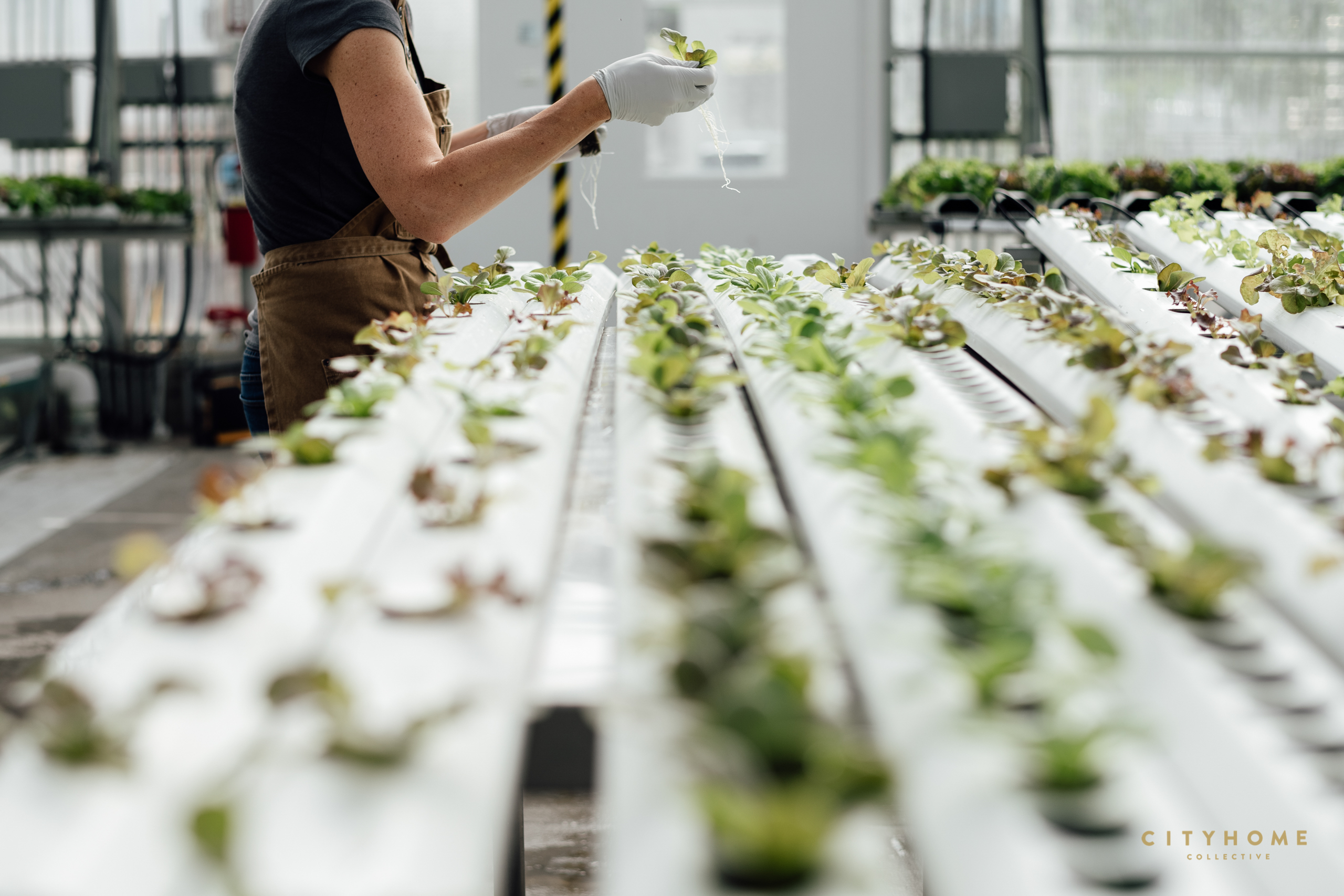 The greenhouse behind the barn is itself a work of art and houses the lion’s share of the farm’s production. The hydroponic method makes the best use of the farm’s limited acreage while saving about 90% of the standard water usage. A 4,000-gallon tank sits underneath the greenhouse and holds all the nutrients necessary for plant growth. These nutrients soak with recycled water into sponges surrounding each sprout. The idea, according to Page, is to “give everything the space it needs when it needs it.” When the sprout outgrows its space? It’s transplanted to one that suits it better. (The metaphors write themselves, at this point.)