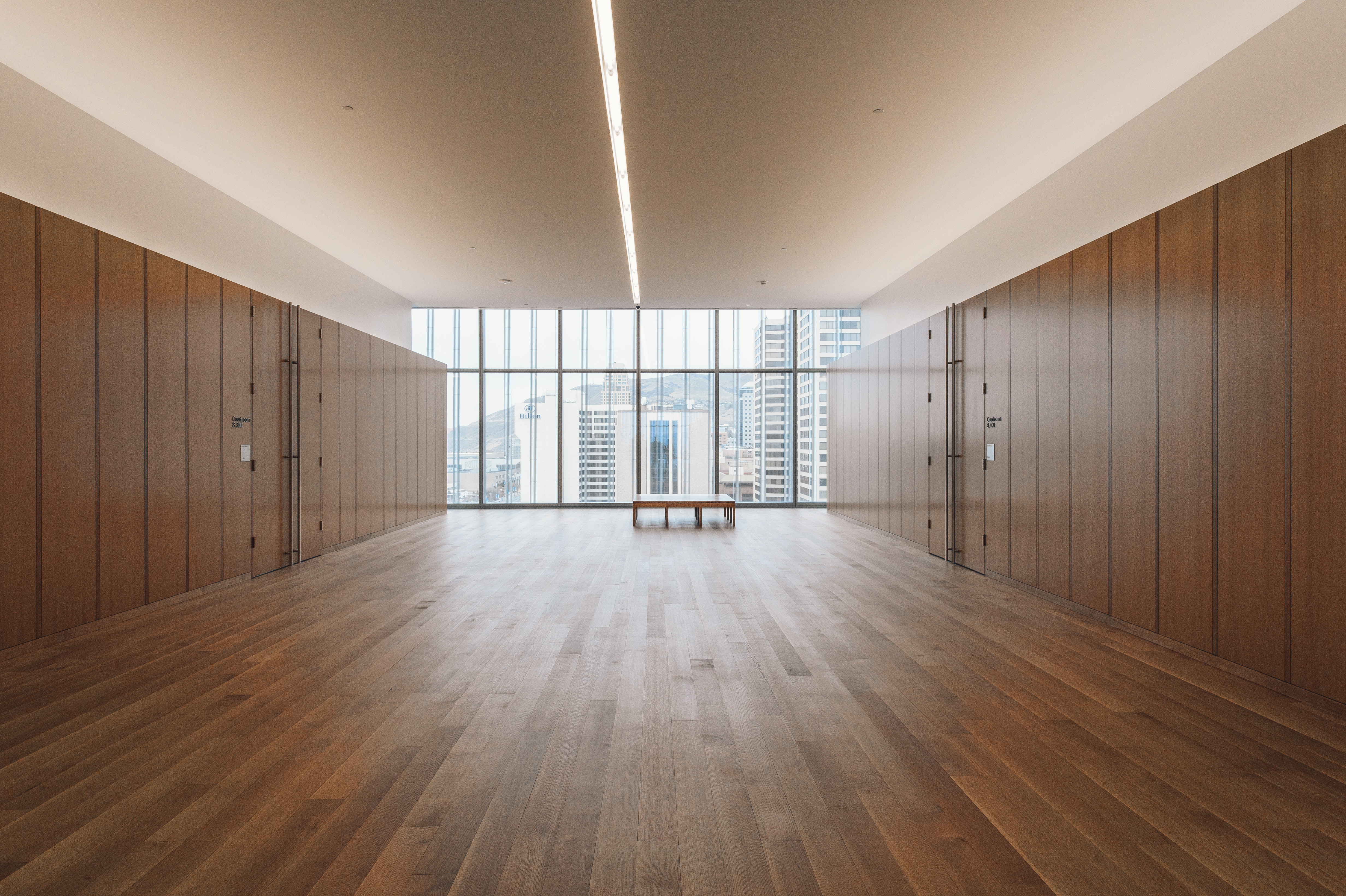 With its atypical layout, awe-striking suspended staircase [which allows for shifting in the event of an earthquake], and multi-layer glass running between north and south ends of the building, it’s a total one-off and absolutely breathtaking.