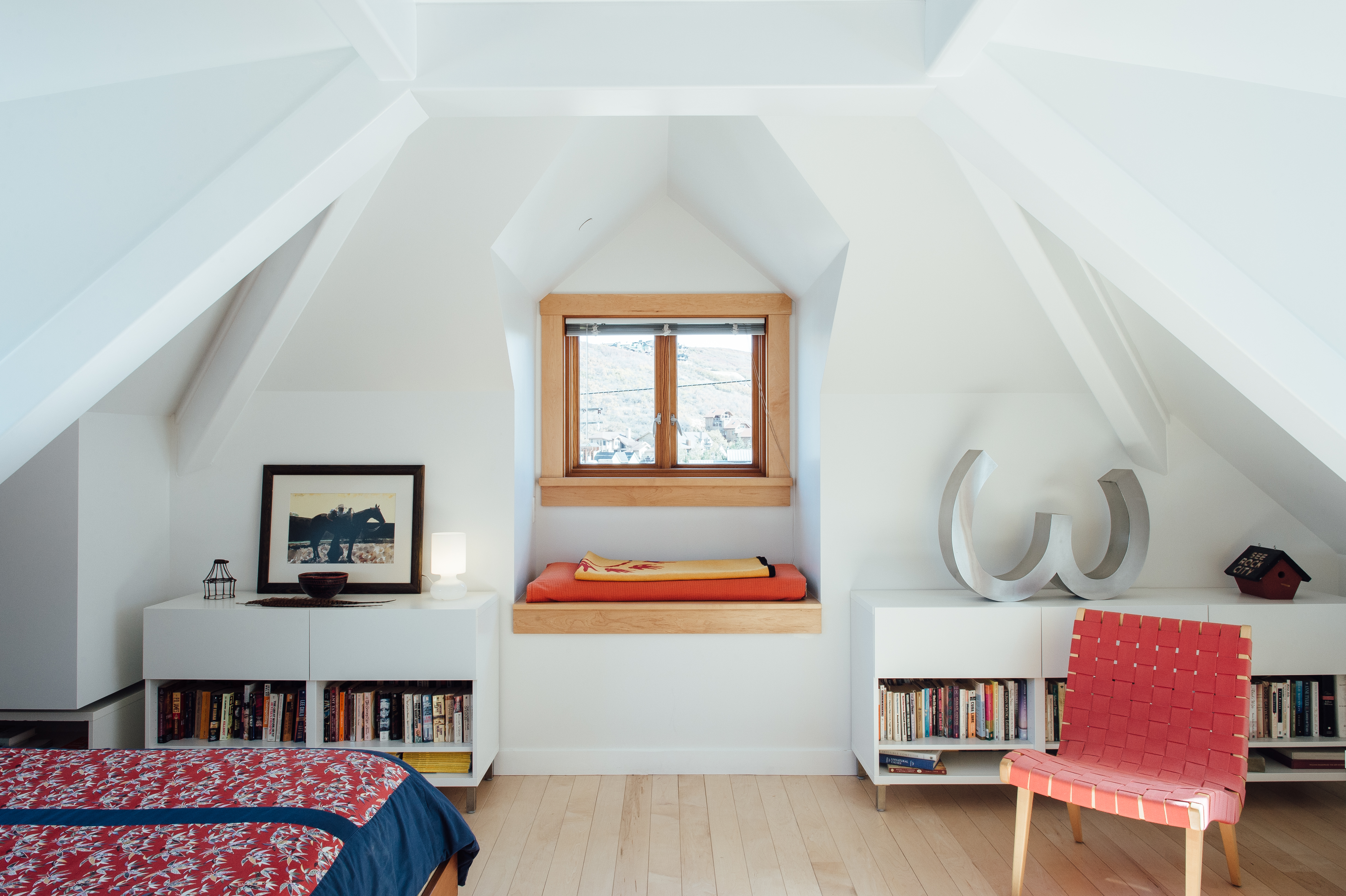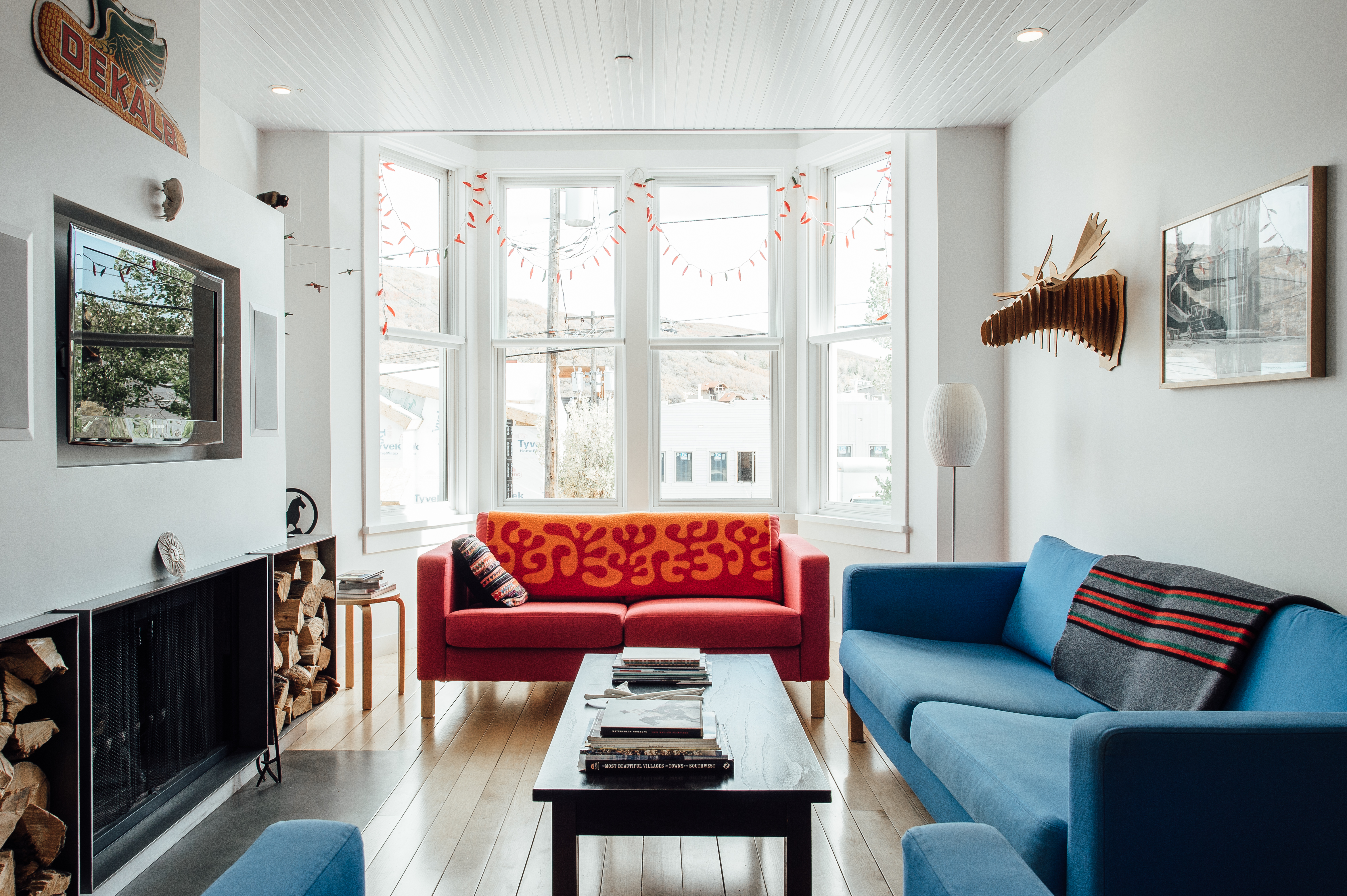 What was your inspiration or creative process behind selecting these unique color palettes? On exteriors: In 1991 the Park City Historic District Design Guidelines had a "recommended color chart" that looked like it came from Nantucket Island. As a result the whole town looked very drab, in ‘tasteful’ grays and browns. We thought this was both historically inaccurate and boring, and that these small, wood, Victorian shacks could feel much more cheerful by using bright color. So in '91 we painted the first house ‘blurple’ (right on the cusp between blue and purple). This concerned some folks in town, but in '98, after we painted the second house bright yellow, we began to see other PC homes following suit. Now, after 25 years, the historic district has become much more like the colorful and cheerful place that it probably was in 1900, although there’s still too many "tasteful" beiges and grays. On interiors: The goal with all these small footprints was to create the illusion of larger spaces. It’s hard to beat white walls as a starting point, but then we applied subtle colors to the bead-board ceilings and bright color accents to certain walls. The finishes make a big difference as well. For example, we use glossier ceiling finishes to reflect the light, but avoided hard or shiny, plasticized finishes on the wood floors and walls. Instead, all the wood is oiled and sanded multiple times just like it was traditionally done. This results in wood walls with a velvety feel, and floors that still feel like wood instead of plastic.