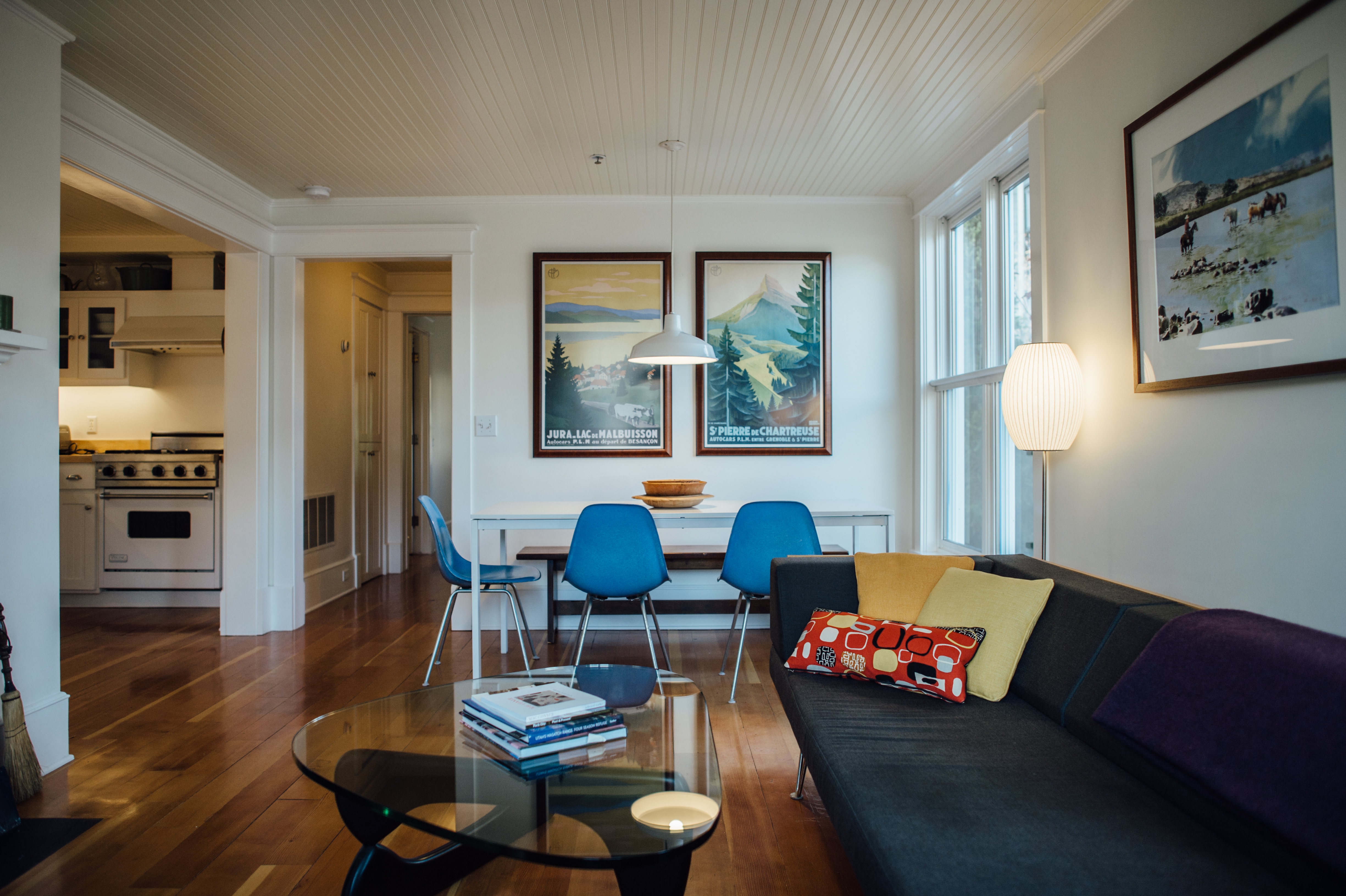 The warm, welcoming feeling in each of the homes is nearly palpable. The bright and open spaces brim with natural sunlight, and they're designed to lead those within from the kitchen to dining area to the backdoor, and out to a cozy backyard space, which is privatized by Asian-style partitions. It's apparent that John and Barbara's brilliance lies in designing for small spaces. There is most certainly a zen-like flow to their designs, and the spaces all seem to connect and relate holistically. Small, custom details, such as using the same type of glass throughout one of the houses, carries the light from room to room effortlessly and fluidly. Each area in each of the homes has a purposes--there is no wasted space here (for example, the bedrooms are more compact and functional, while the common spaces are larger and more open to accommodate gatherings). The square footage may have been minimal to work with, but the duo has expanded the former Victorian-era, mining town interiors into modern, open spaces, and the impact of the existing spaces is supremely larger. And, of course, the relationship between the clean aesthetic of the interiors and the rich, historic facade is flawless and natural. Neither too new nor too old. They're timeless yet visionary, and absolutely worthy of worship. See bits and pieces of three of the four homes below...we think you'll be inclined to agree.