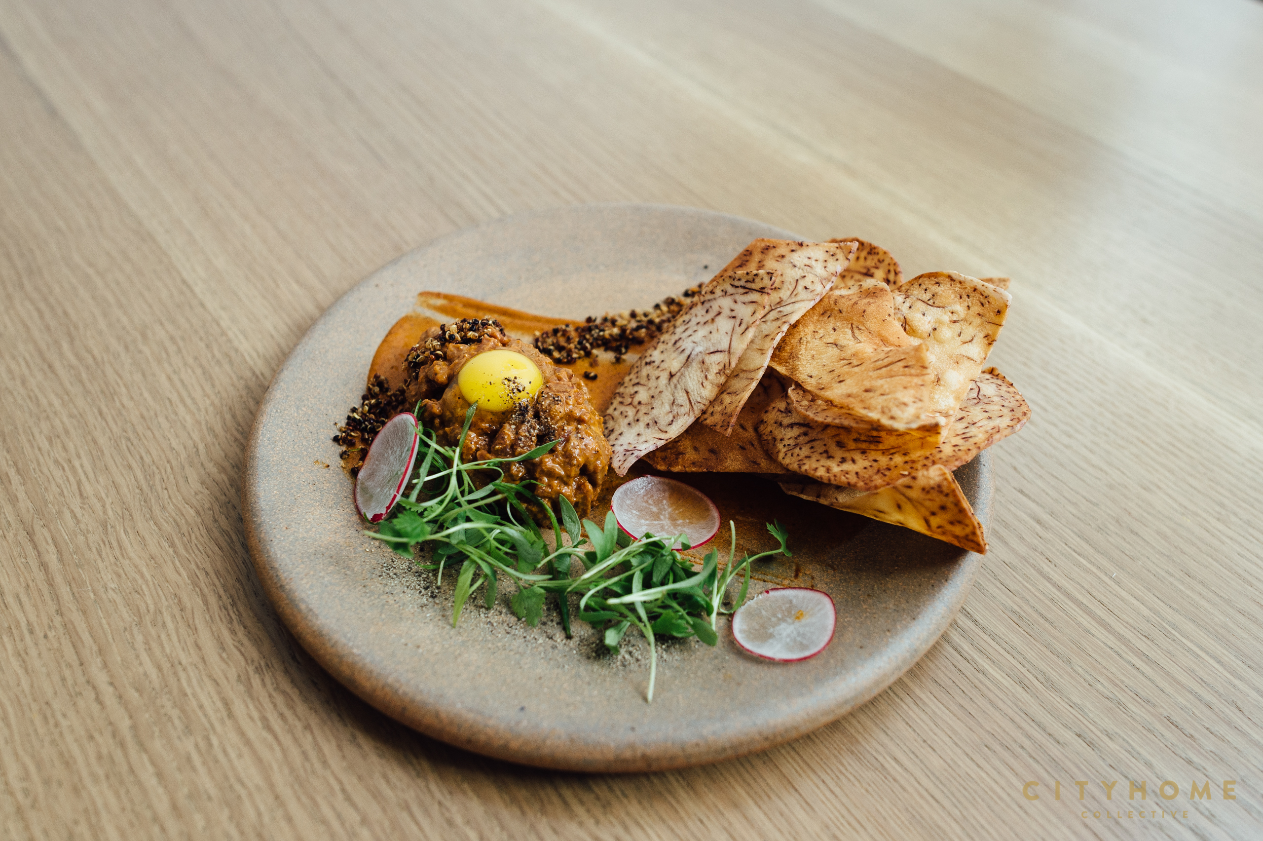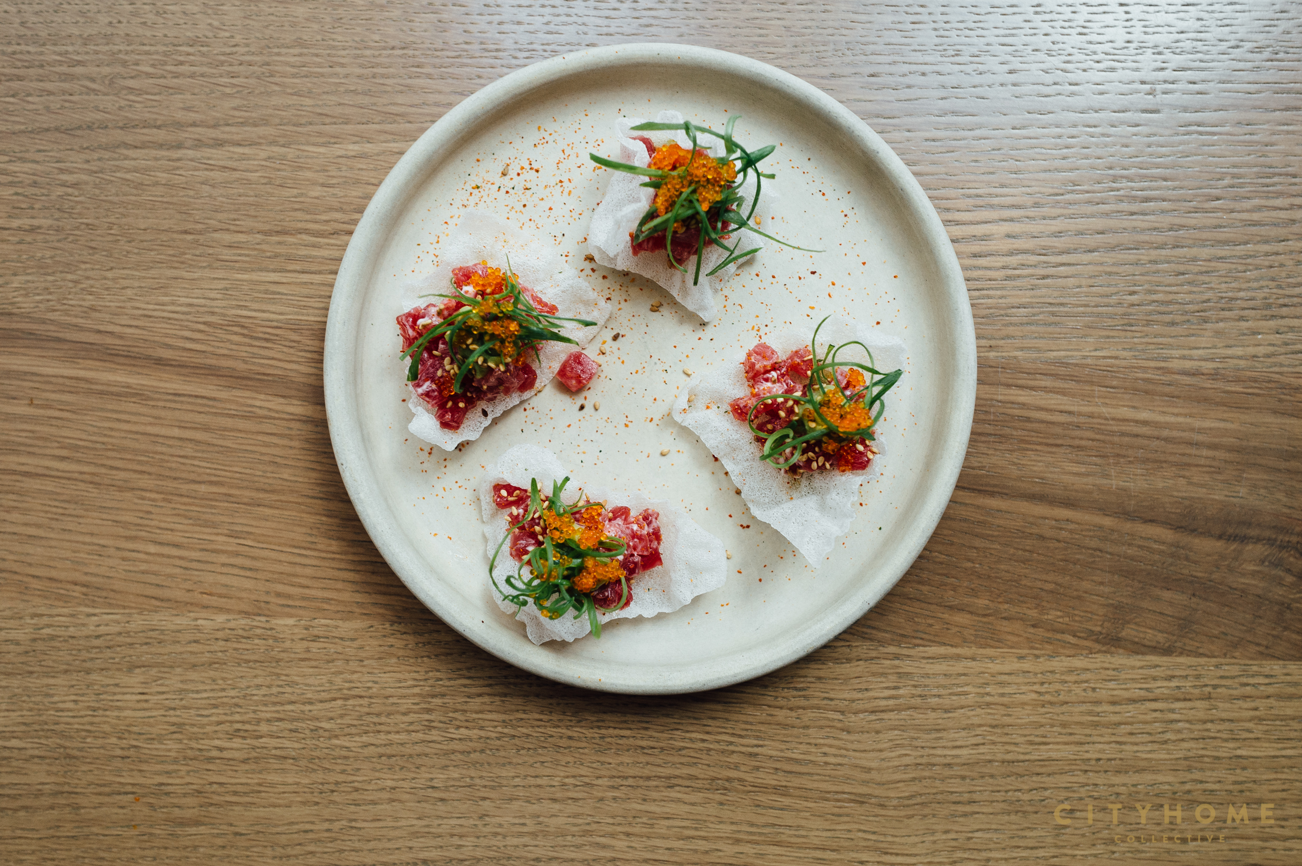 True story: on a visit to the new spot, we munched our way through nearly the entire menu of hot and cold sharable plates, and we loved them all. With seafood a cornerstone of both Japanese and Peruvian cuisines, Nguyen pays homage to the category with several items, like a hamachi ceviche with Peruvian leche de tigre and aji amarillo sauce, smoked tea salmon mousse to scoop up with addictive house-made veggie crisps, and a clever “California roll” stuffed with king crab and served up slider style.
