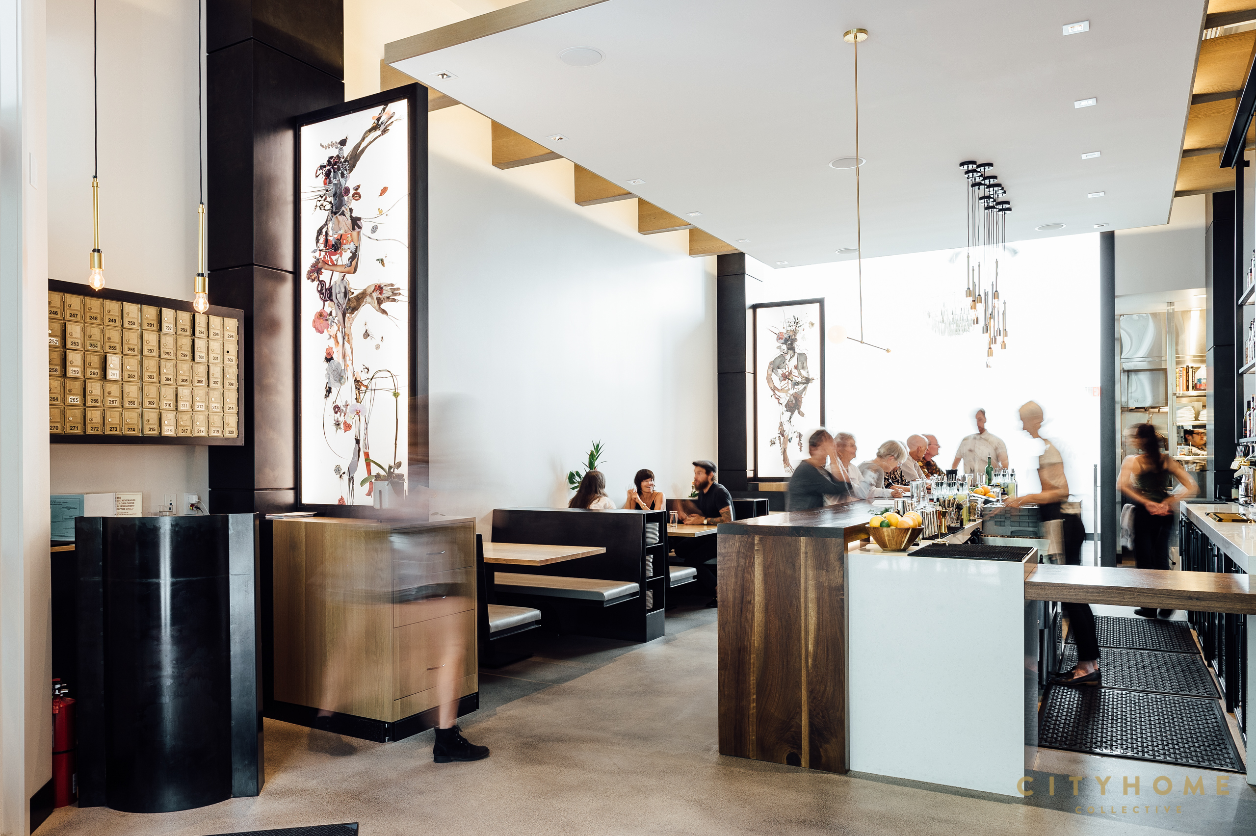 Named after the site of the city's original post office across the street...Romney says that they wanted to imbue the new venture with a community spirit reminiscent of times past, when everyone went to the post office at some point: “Cultures from all around the world interacted at the post office. People would meet and share news; it was a gathering place.” Even the gorgeous tri-folded menu (designed by Souk Mounsena) has the nostalgic feel of snail mail correspondence.