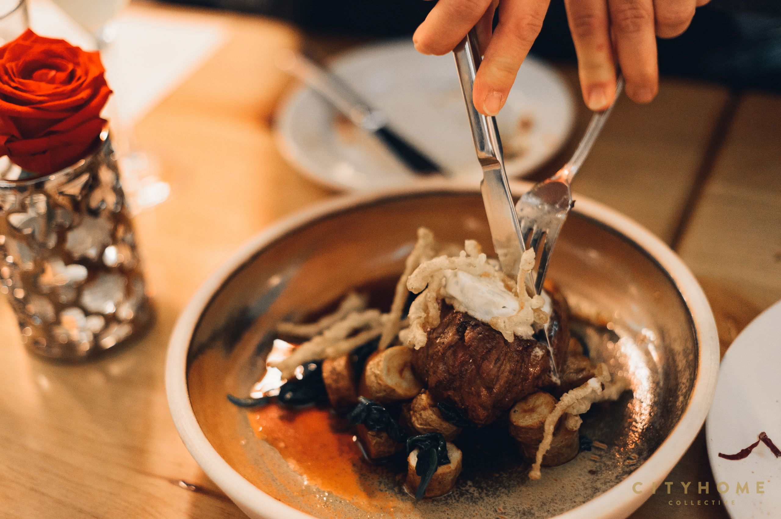 And don’t even get us started on the mains and the heartier small plates, ‘cause for those we will COLLECTIVELY ring rhapsodic for days. Since the menu changes on the regular [like, a couple of times a month], we’ll just give a quick shout out to the tower of fan-fecking-tastic beef tenderloin—no, really, it’s a tower!—over wood roasted fingerling potatoes delicately resting on top of a soy-garlic jus—and to gild that fantabulous lily, topped with blue-cheese butter and tempura enoki [those long skinny rather phallic mushrooms]. Then there are those plates you can’t get just anywhere in the SLC, and thank goodness Stokes is taking the time to make ‘em ready for our greedy paws: perfect oysters, crispy pigs head torchon, wood roasted bone marrow with, have mercy, red onion marmalade. The ever-underrated rabbit, in this case paired perfectly and generously sauced with sage brown butter over house-made tagliarini pasta. The cocktails coming out of their tiny bar space are as lovely for the palate as they are for your peepers. Locals already claim favorites like the Lions Tale and their smoky orange marmalade Old Fashioned. We’re looking forward to seeing bar man Farina’s amazing lemon-dusted Vesper on the menu, soon. Very soon, pretty please.